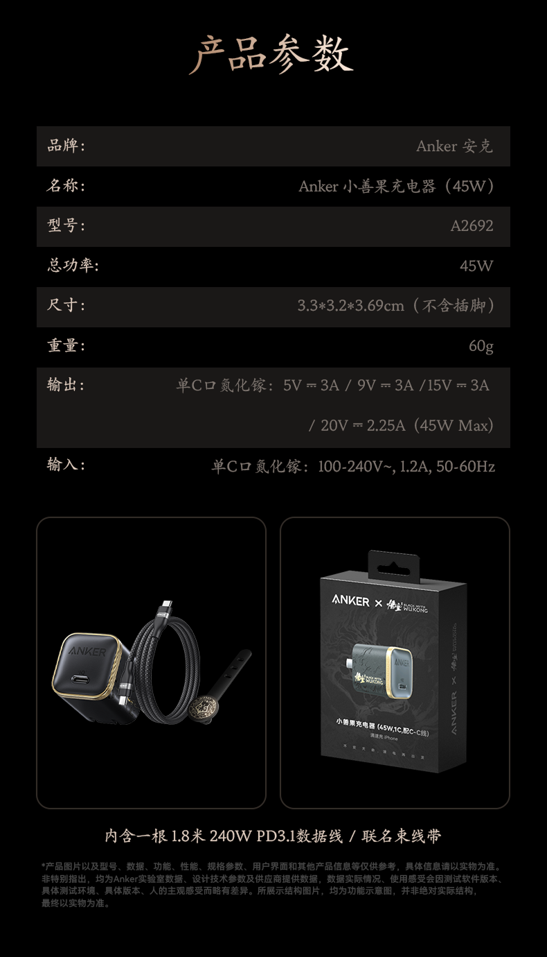 【新品】Anker安克 黑神话悟空联名系列 45W小善果充电器 A2692