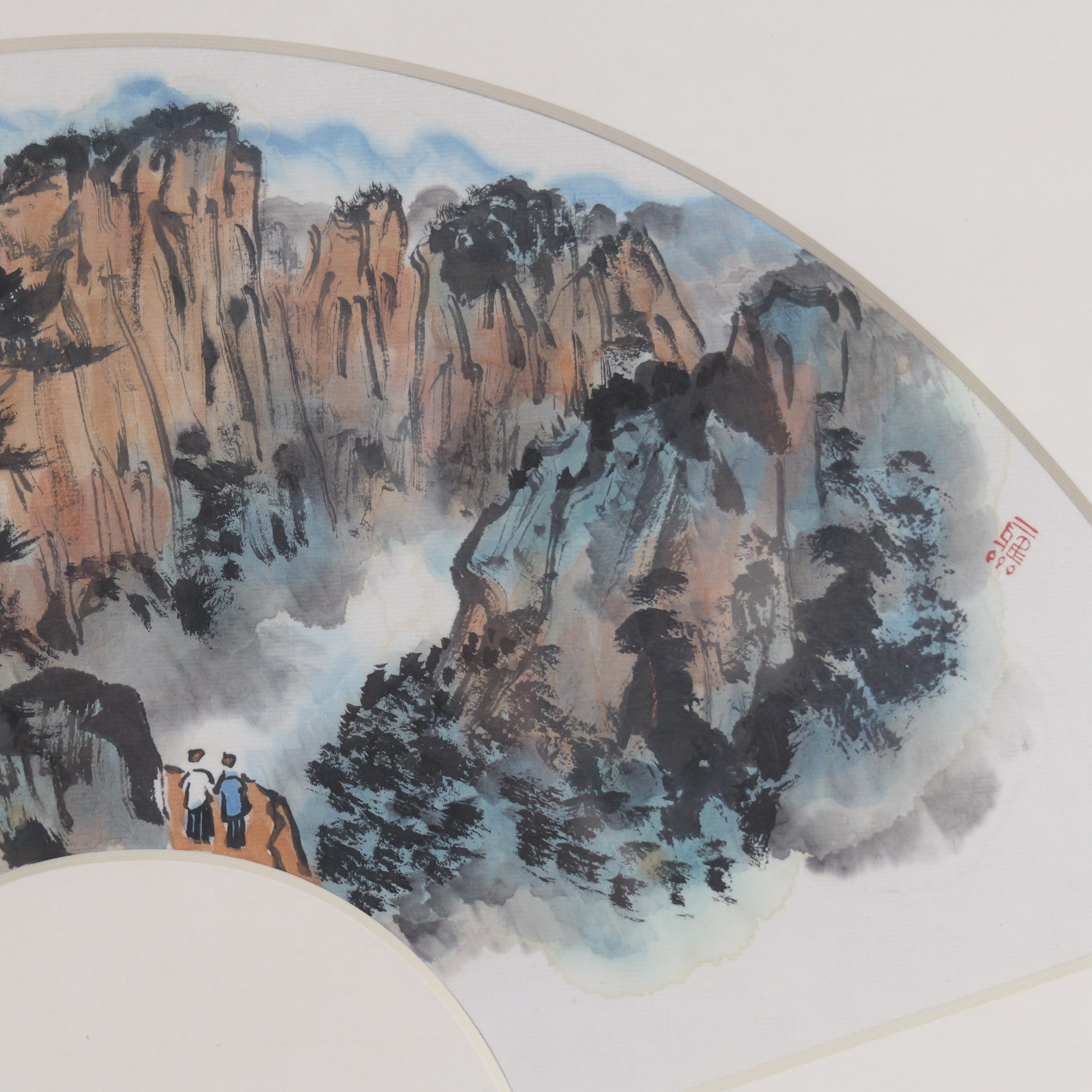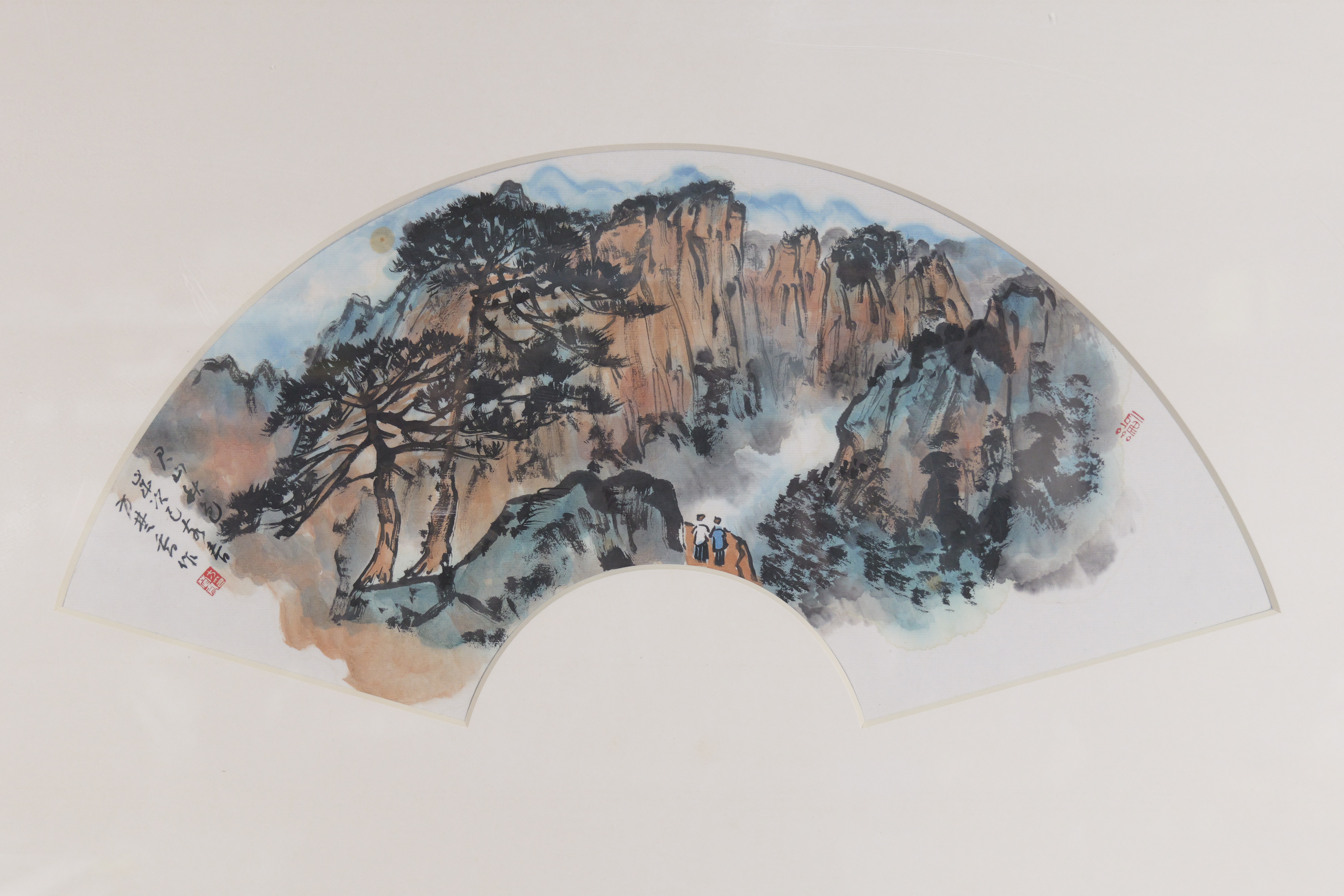 方楚乔《君山秋色》国画原作28CM*53CM 手绘宣纸扇面【含框】
