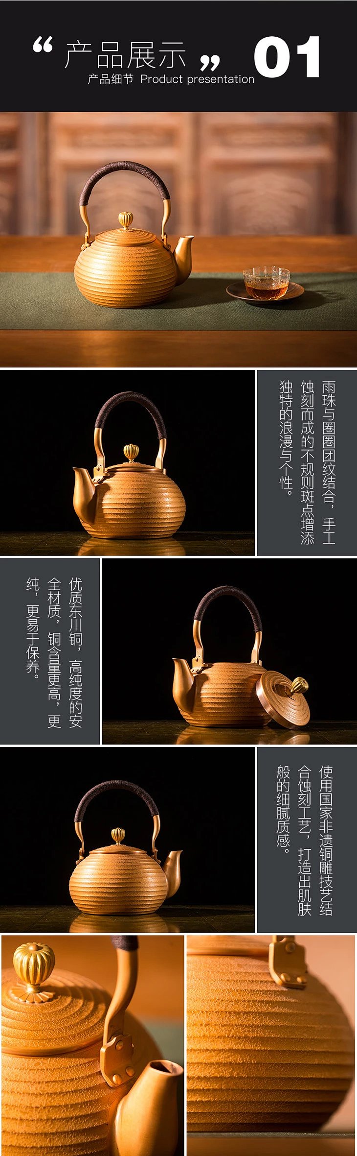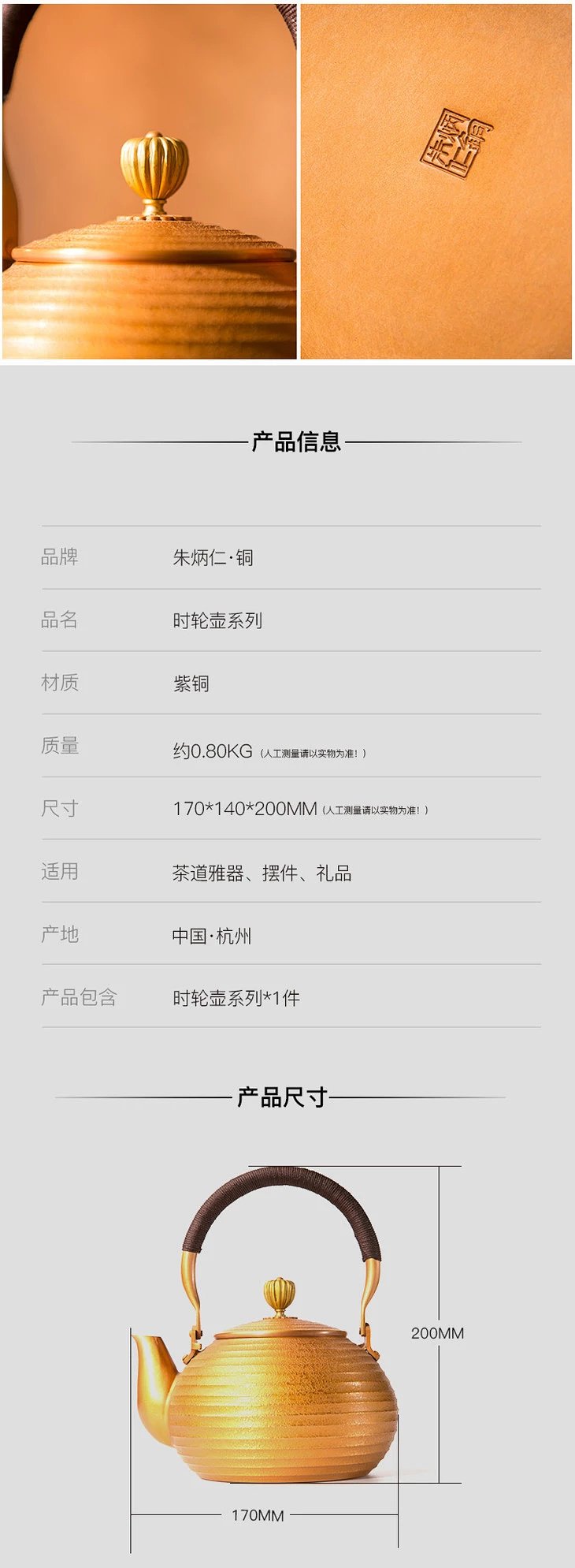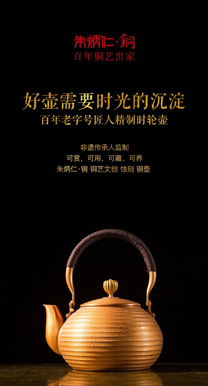 朱炳仁铜 时轮壶系列 紫铜抑菌茶具茶壶铜壶家居装饰摆件 工艺品品牌: 朱炳仁材质: 紫铜规格:170*140*200mm重量:约0.8kg