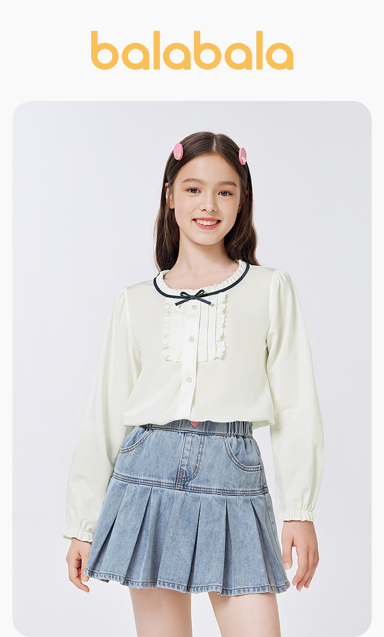 巴拉巴拉女童衬衫儿童长袖2025新款秋装精致时尚柔软甜美凉感抗菌