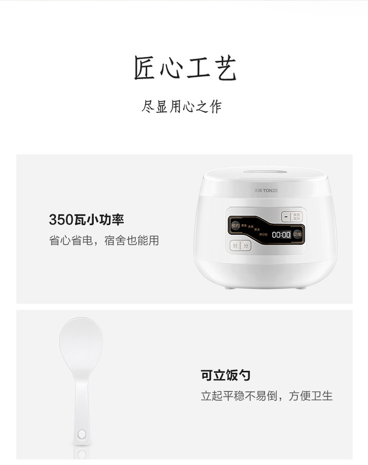 天际(TONZE)电饭煲 2L陶瓷内胆煮粥煮饭煲仔饭煲汤 智能便利 FD20S-W