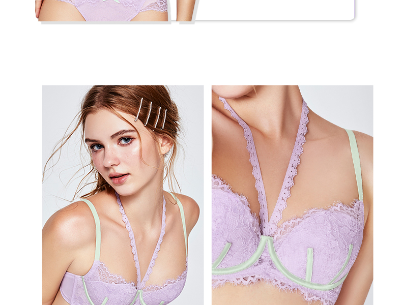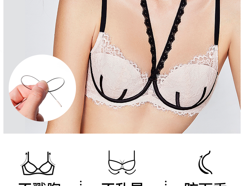好奇蜜斯大胸显小胸内衣女性感夏薄防下垂法式纯欲蕾丝文胸罩套装-Cinna 辛娜