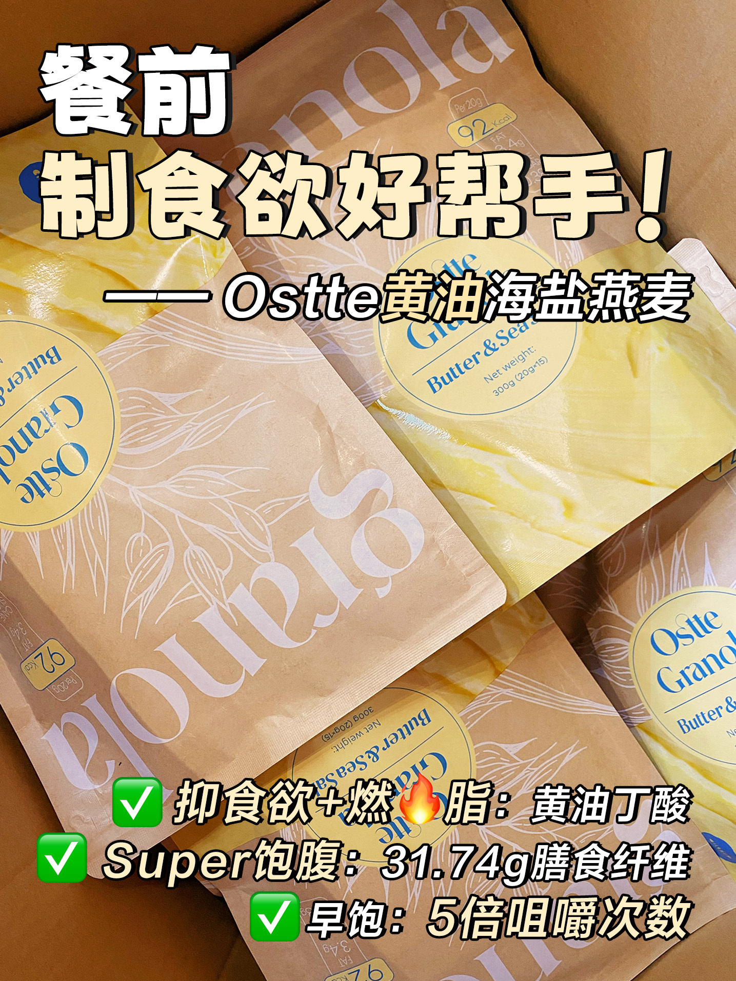年后发!Ostte黄油防暴食燕麦片·好吃不胖!超模减脂期都在吃🏆 非油炸非膨化!解馋无负担❗餐前抑制食欲+阻断+餐中饱腹+营养→助力养成小鸟胃!