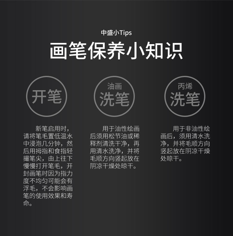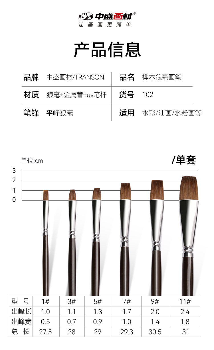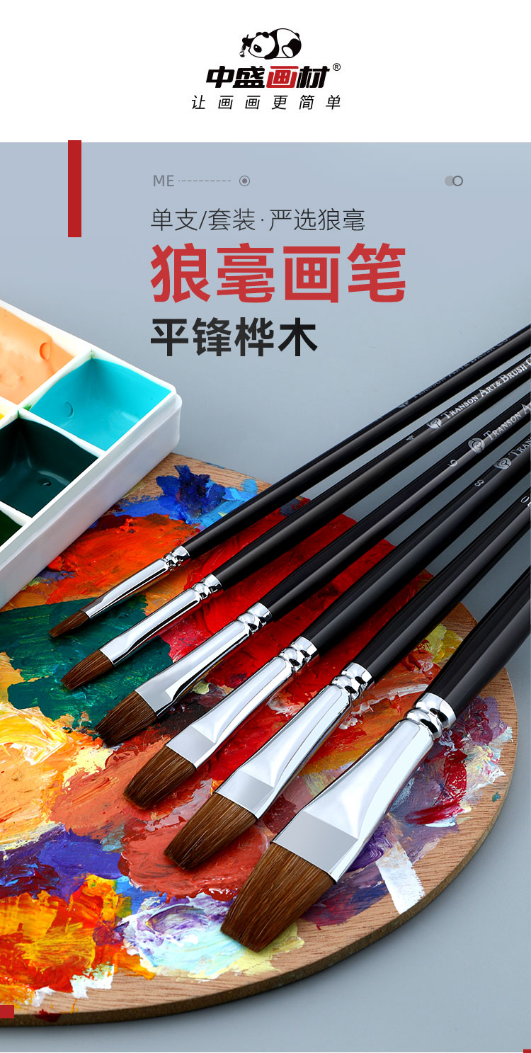中盛画材 狼毫油画笔套装 平峰水粉笔单支 考试用油画笔102