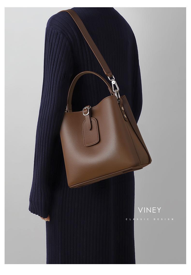 Viney包包女2023新款秋冬水桶包斜挎女包高级感大容量真皮单肩包bags