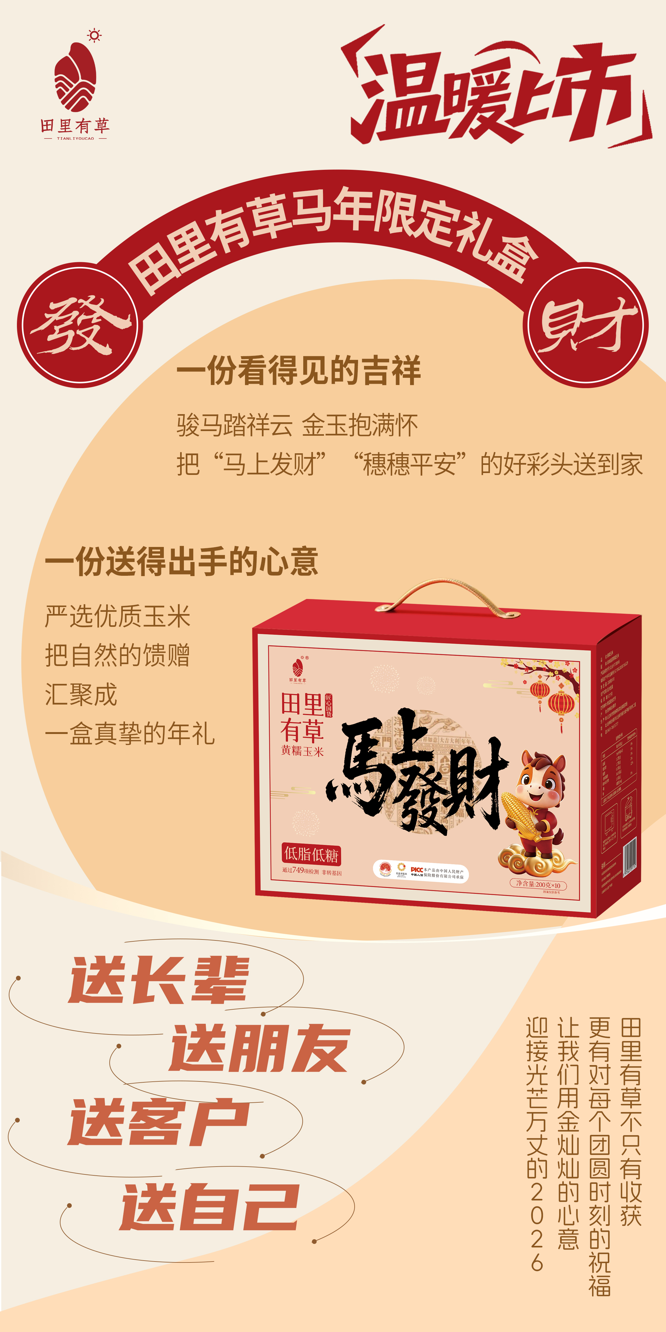 马年开运礼!热销9年的国民玉米品牌放大招啦🥳来自中国玉米之乡吉林公主岭的『田里有草』重磅推出马年限定「马上发财·2026新年限定款」礼盒🎁把黑土地黄金玉米的甜糯与“马上发财”“穗穗平安”的吉祥寓意装箱献上🎉🎉🎉