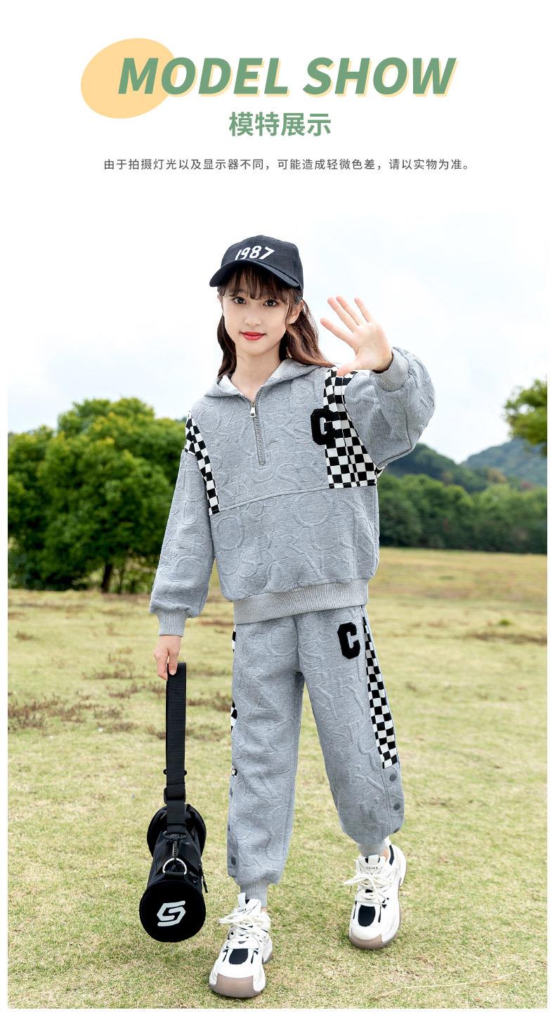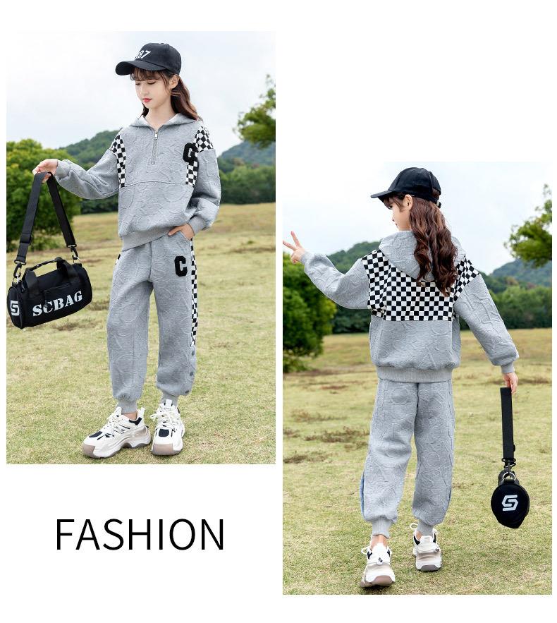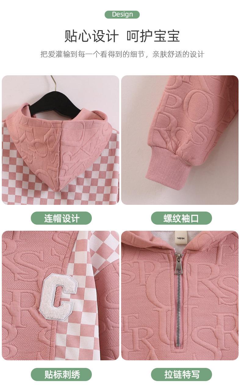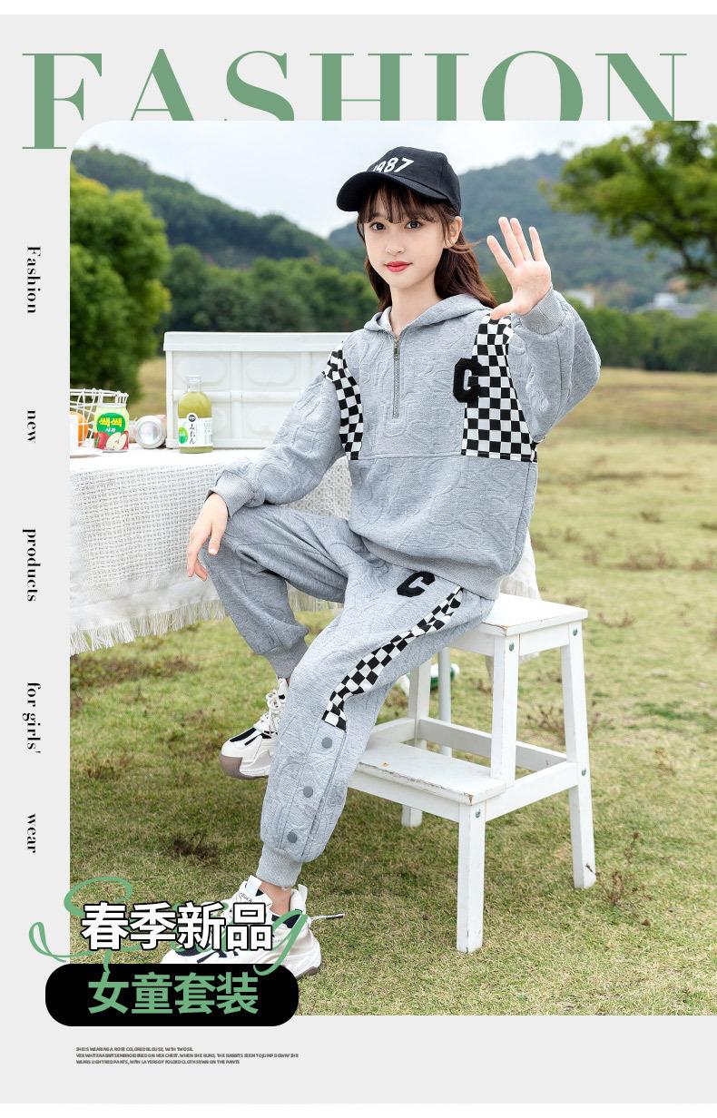 女童春款套装 2024新款洋气中大童儿童春秋女孩棋盘格运动两件套