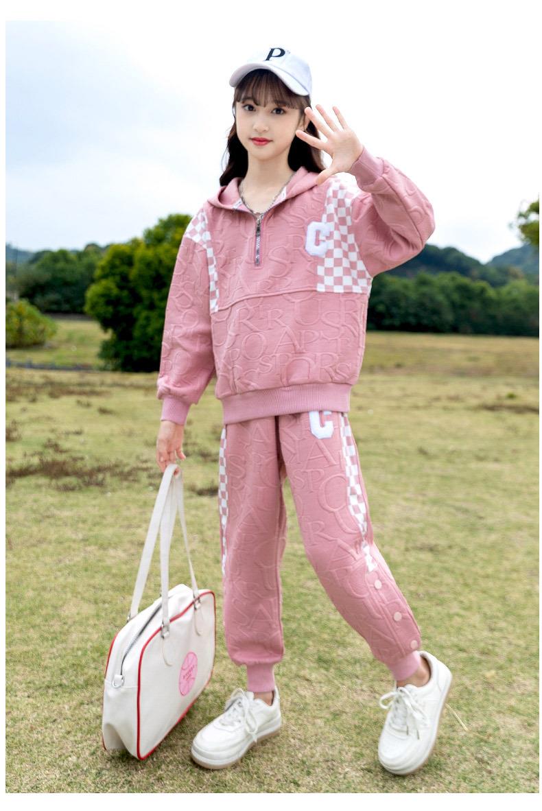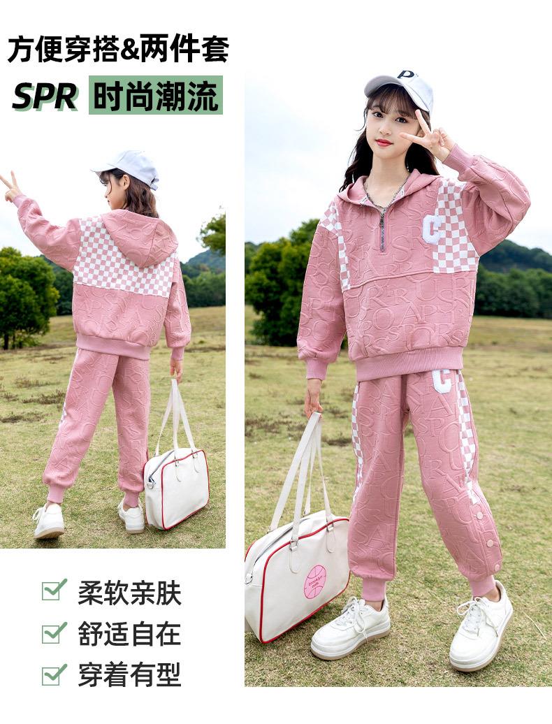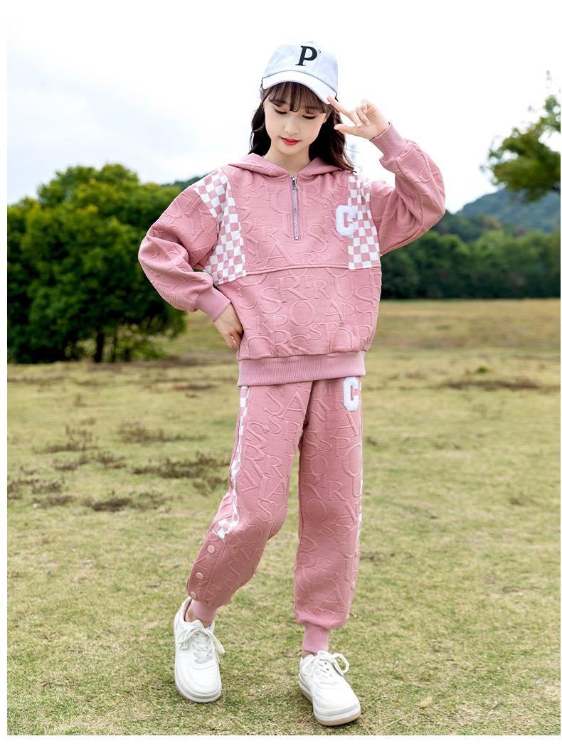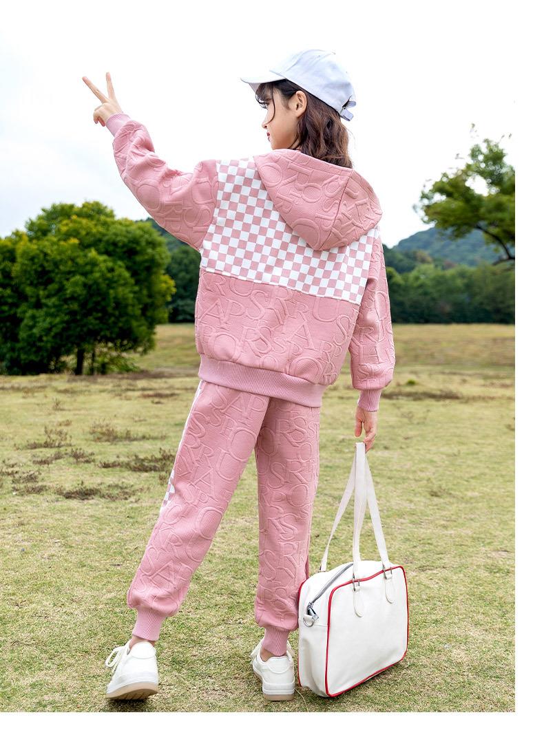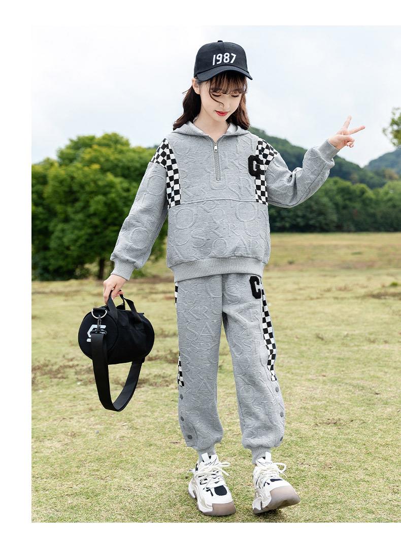 女童春款套装 2024新款洋气中大童儿童春秋女孩棋盘格运动两件套