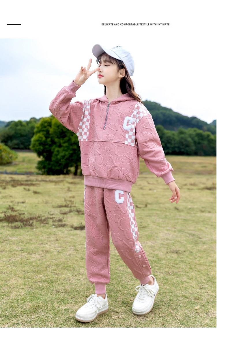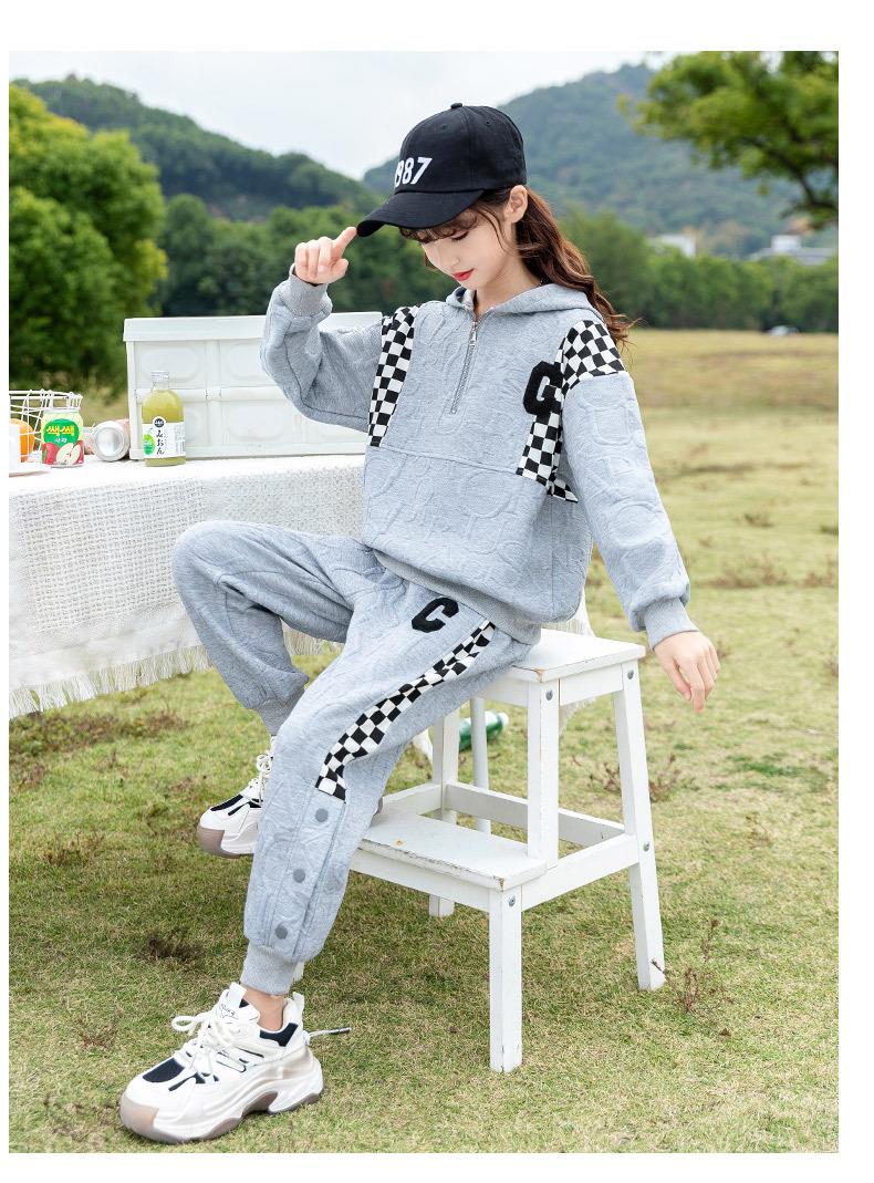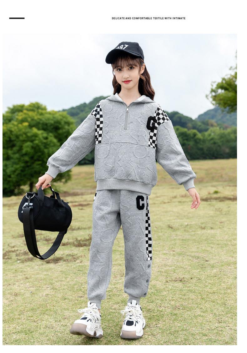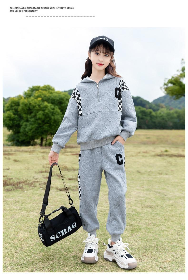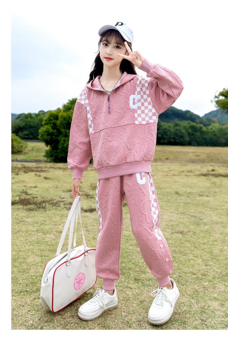 女童春款套装 2024新款洋气中大童儿童春秋女孩棋盘格运动两件套