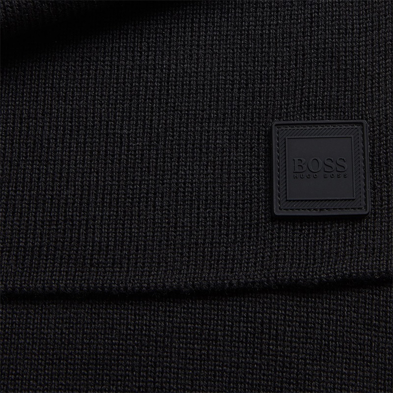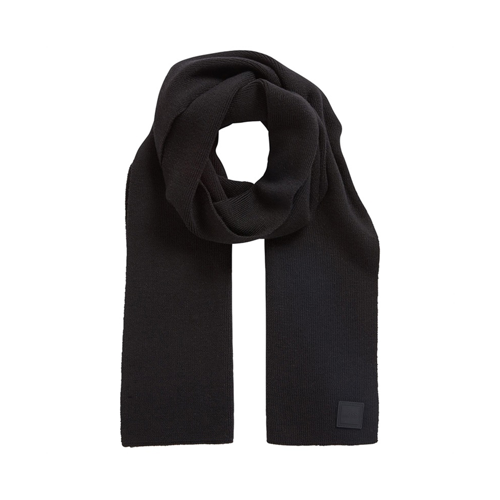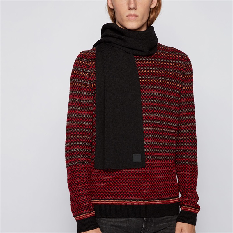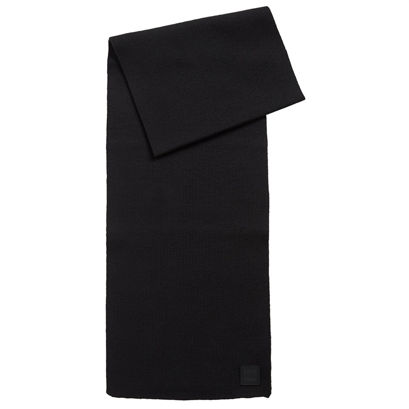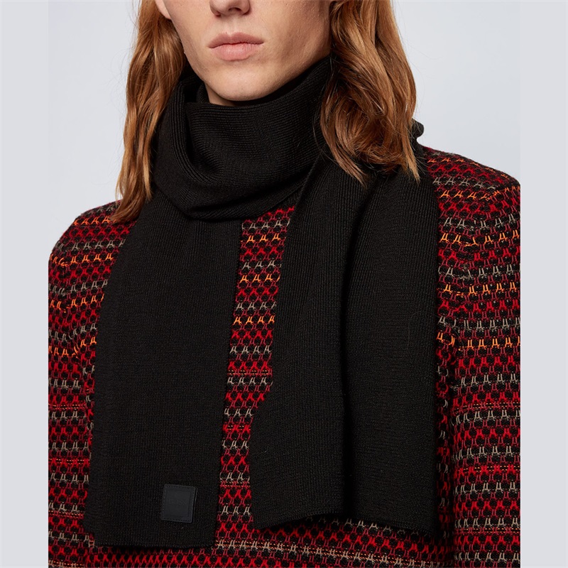 HUGO BOSS 雨果博斯秋冬男女同款黑色标牌羊毛混纺保暖丝巾围巾 50438867-001