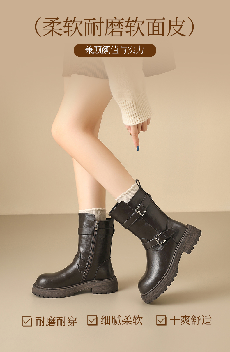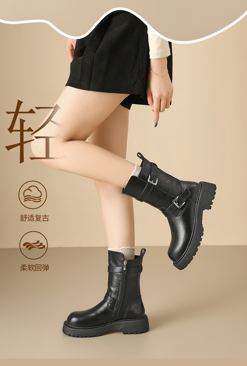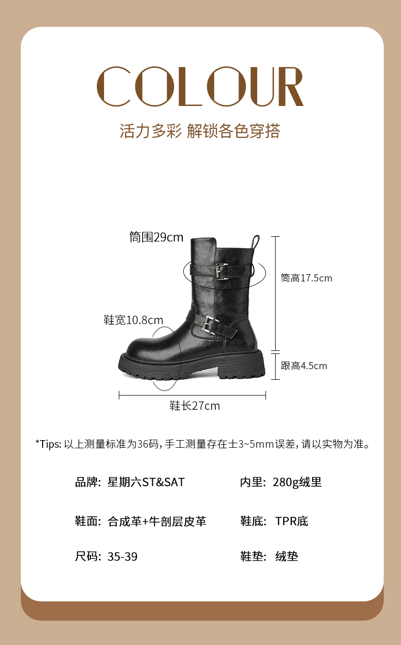 【保暖绒里】星期六英伦风百搭扣带百搭短靴SSD4116T55