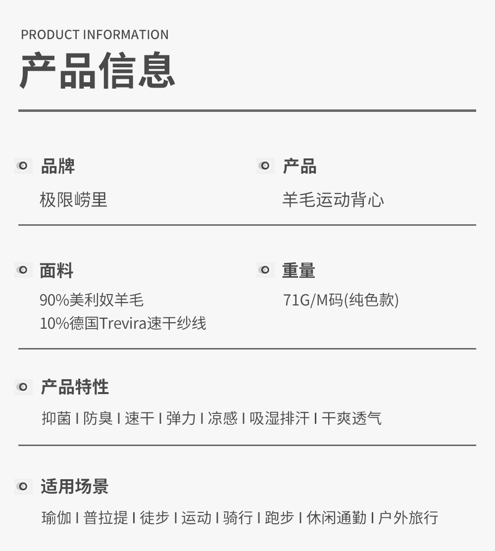 上市公司认证90%美利奴羊毛干爽透气抗菌防异味运动背心女-25TS02