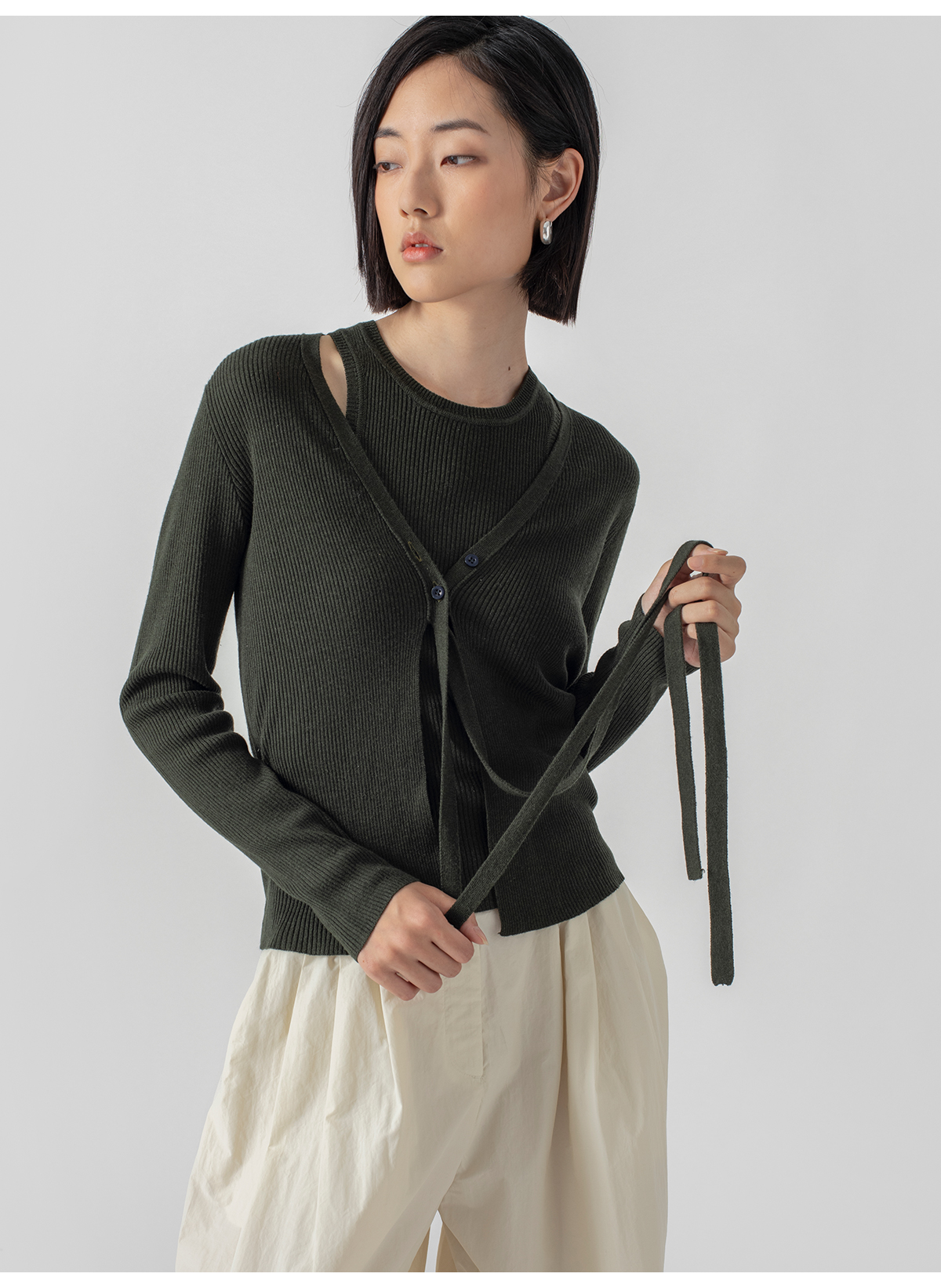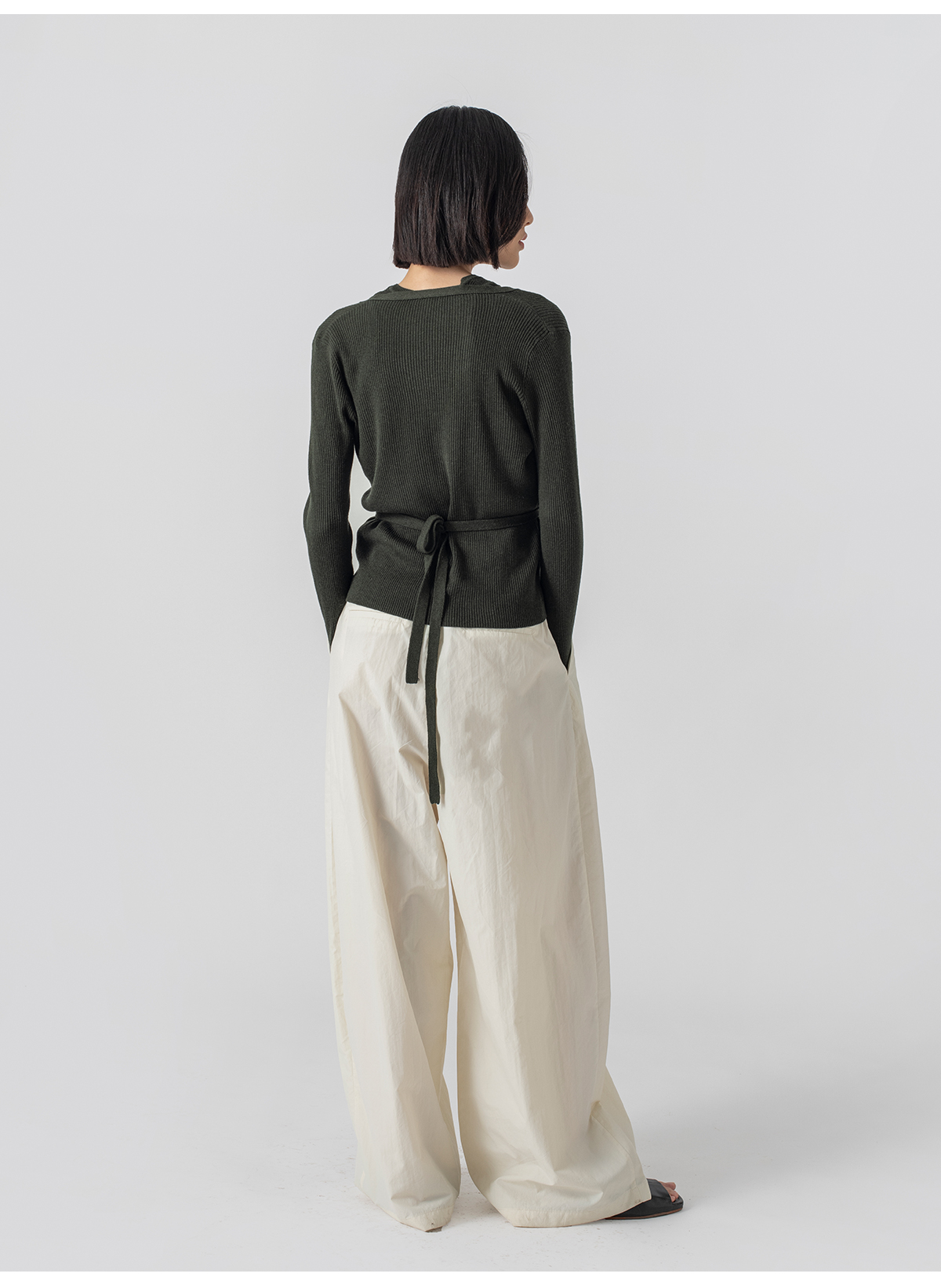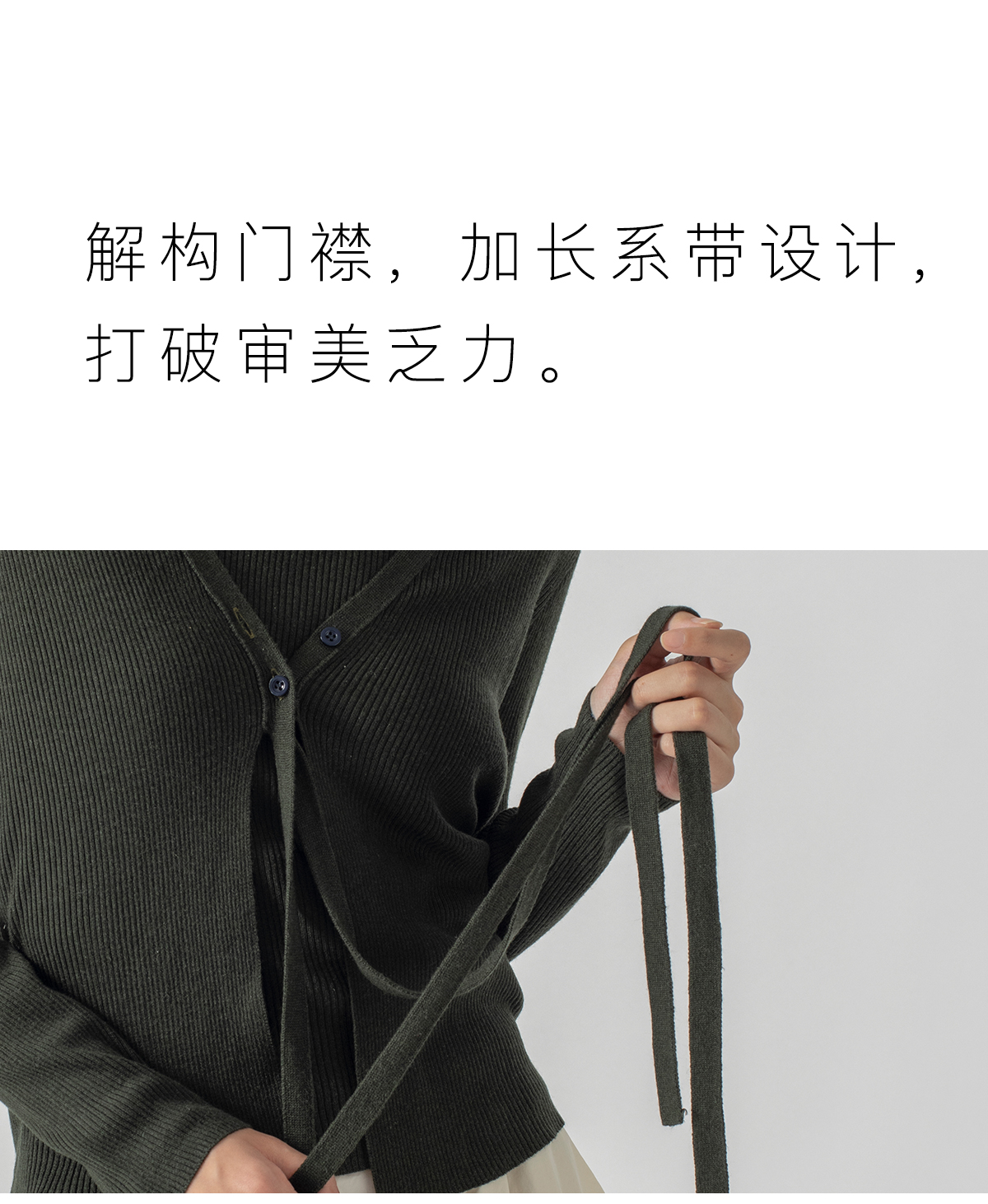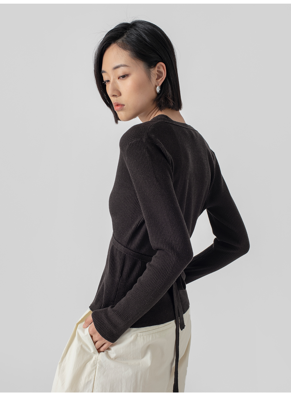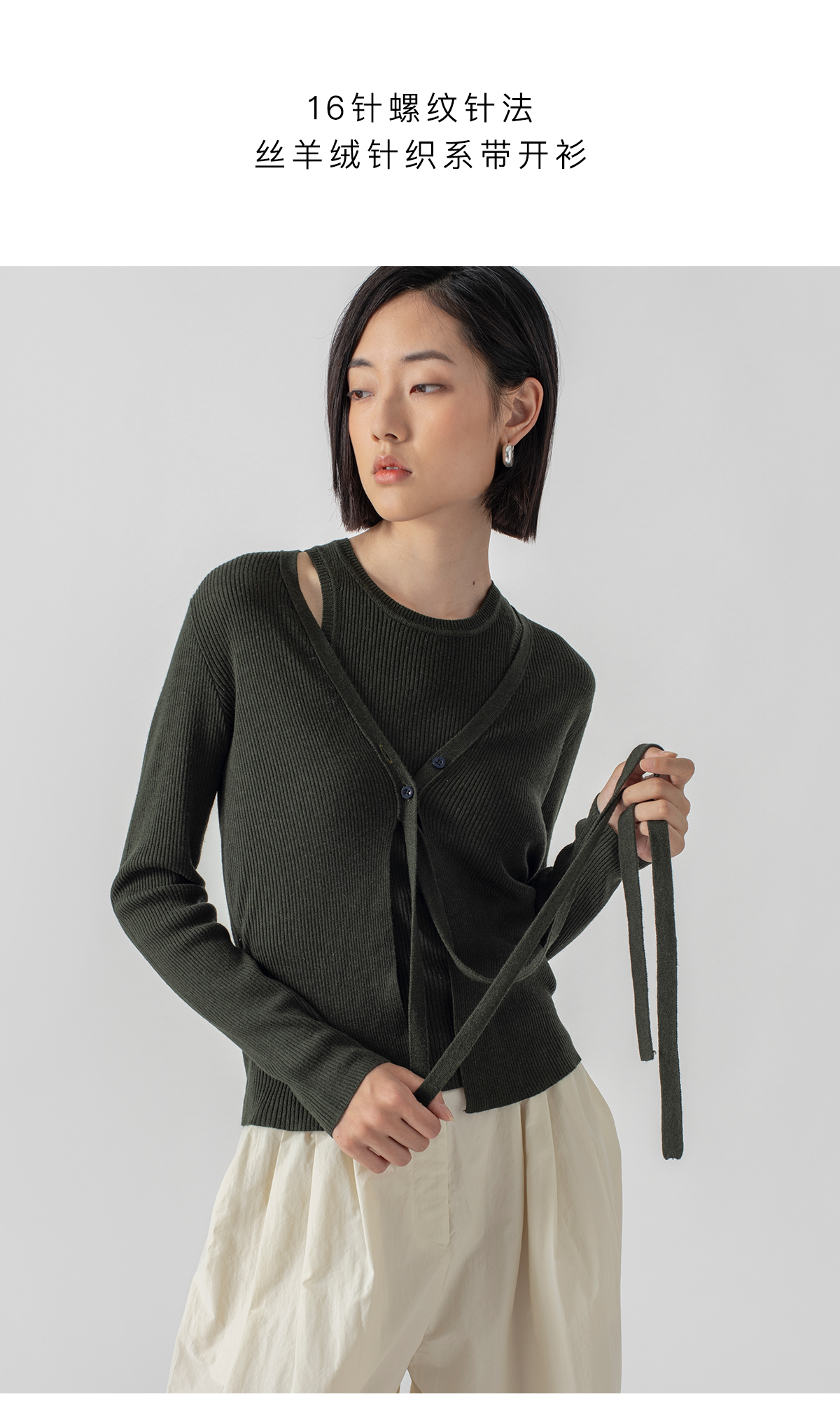 322工房再造经典丝羊绒针织系带开衫2023春夏款长袖修身外套B032