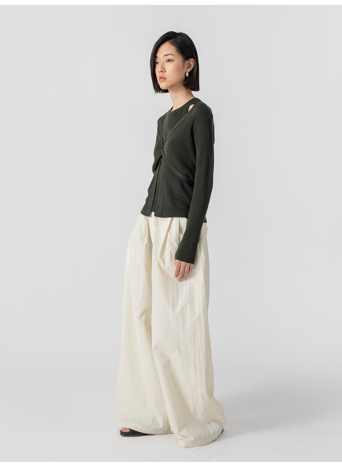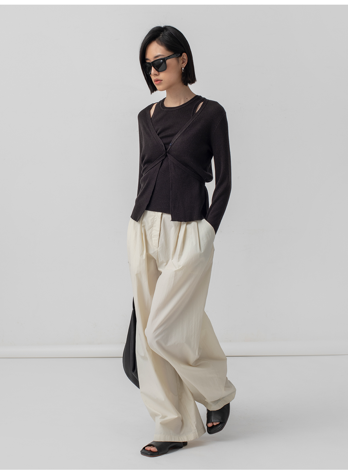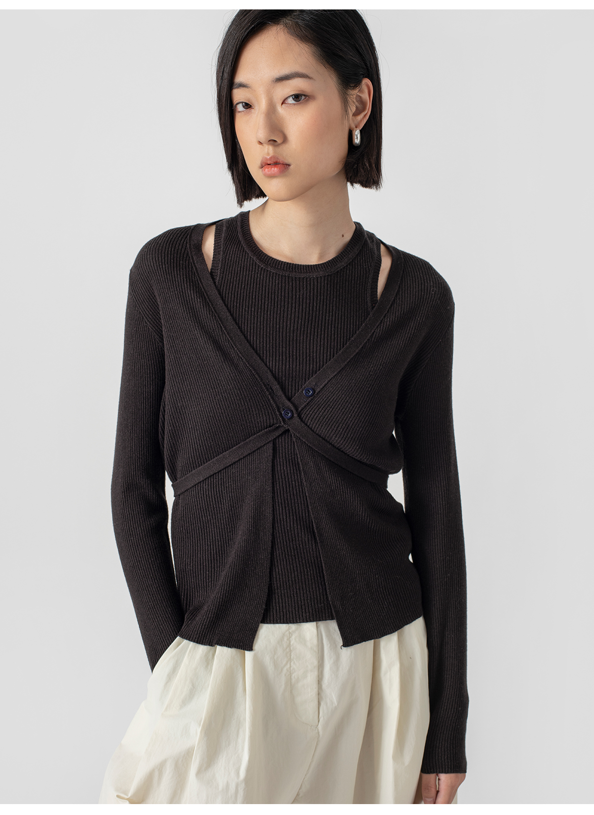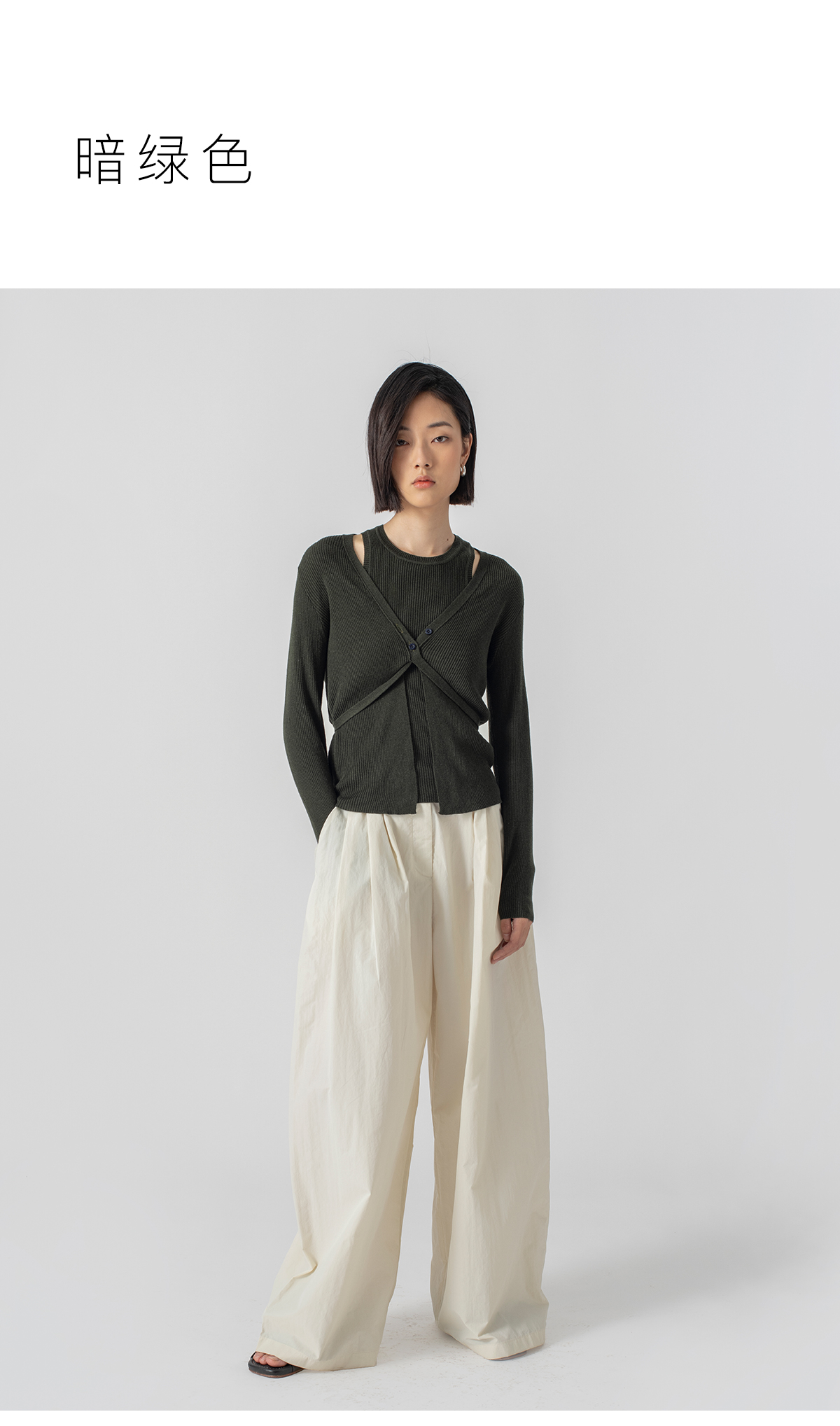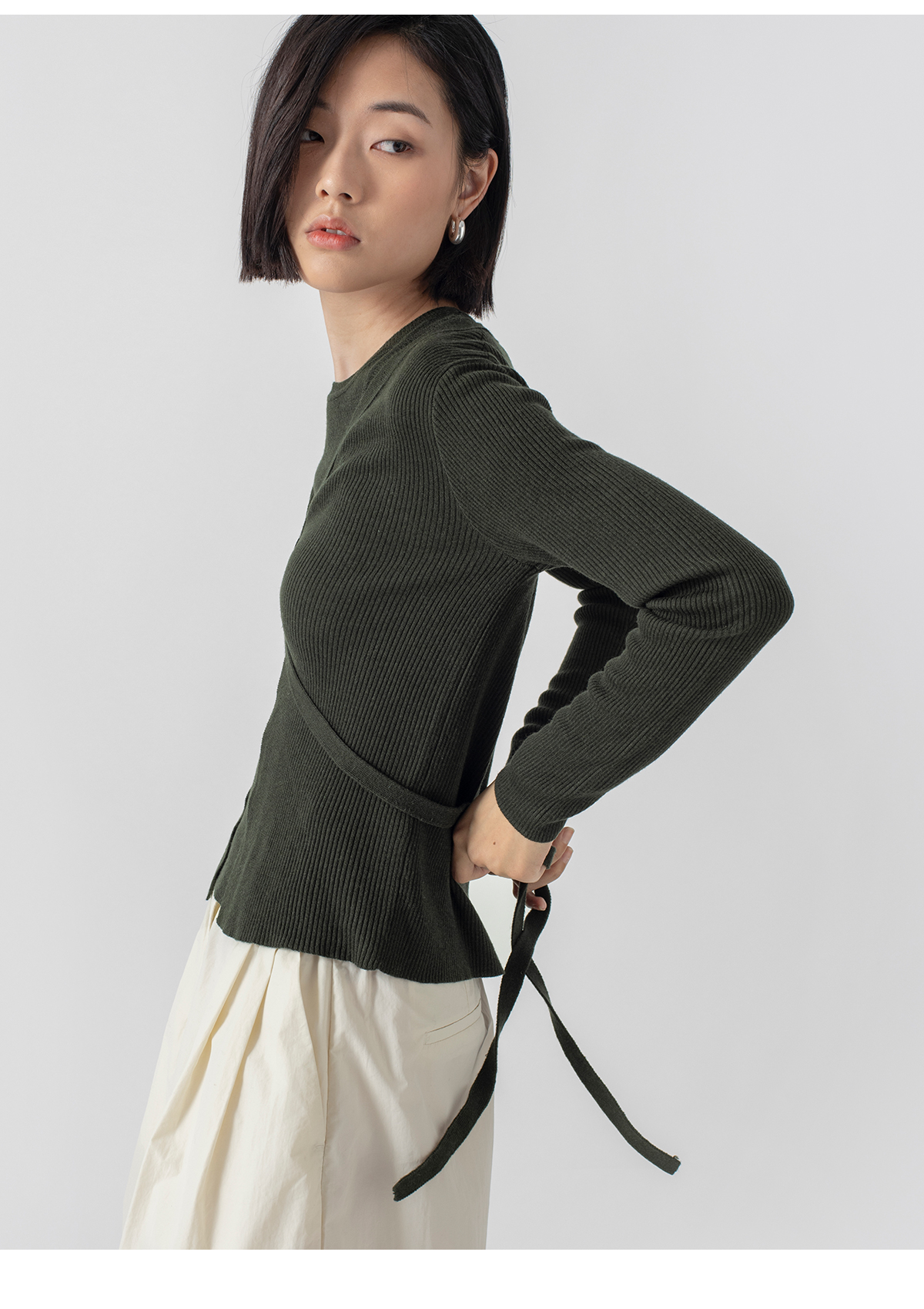322工房再造经典丝羊绒针织系带开衫2023春夏款长袖修身外套B032