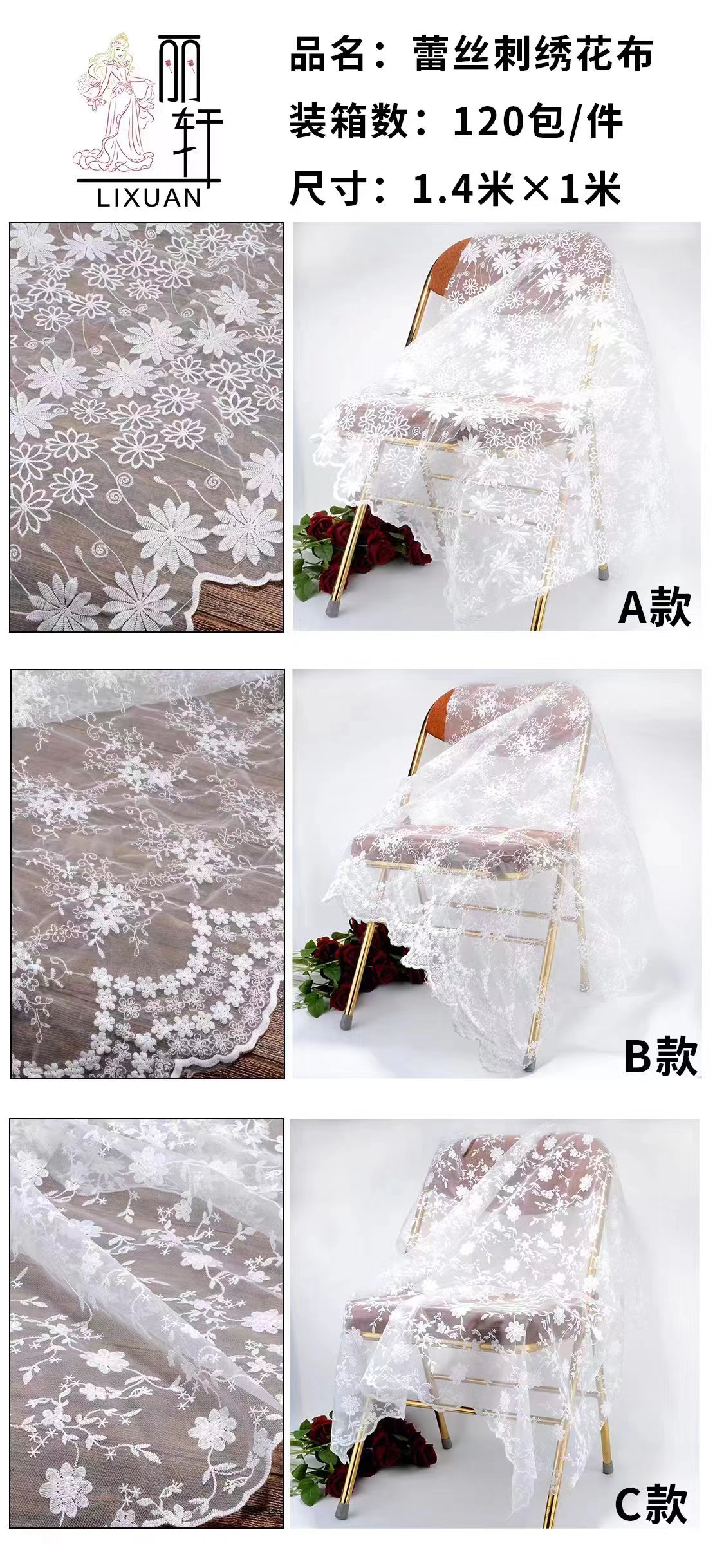 蕾丝刺绣包花布(0.5*1.4m)