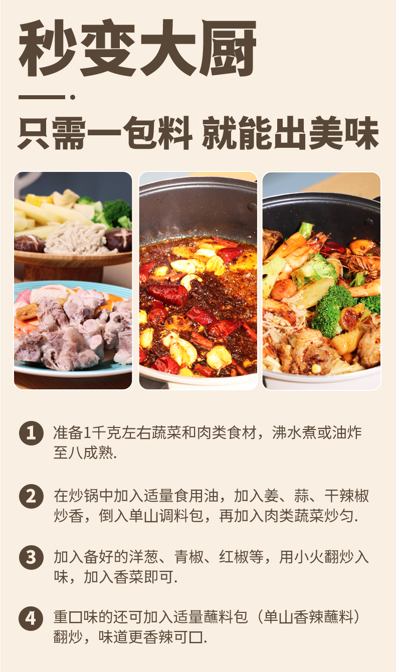 单山170g双料包麻辣香锅干锅 火锅底料炒菜炒龙虾酱料包厨房家用