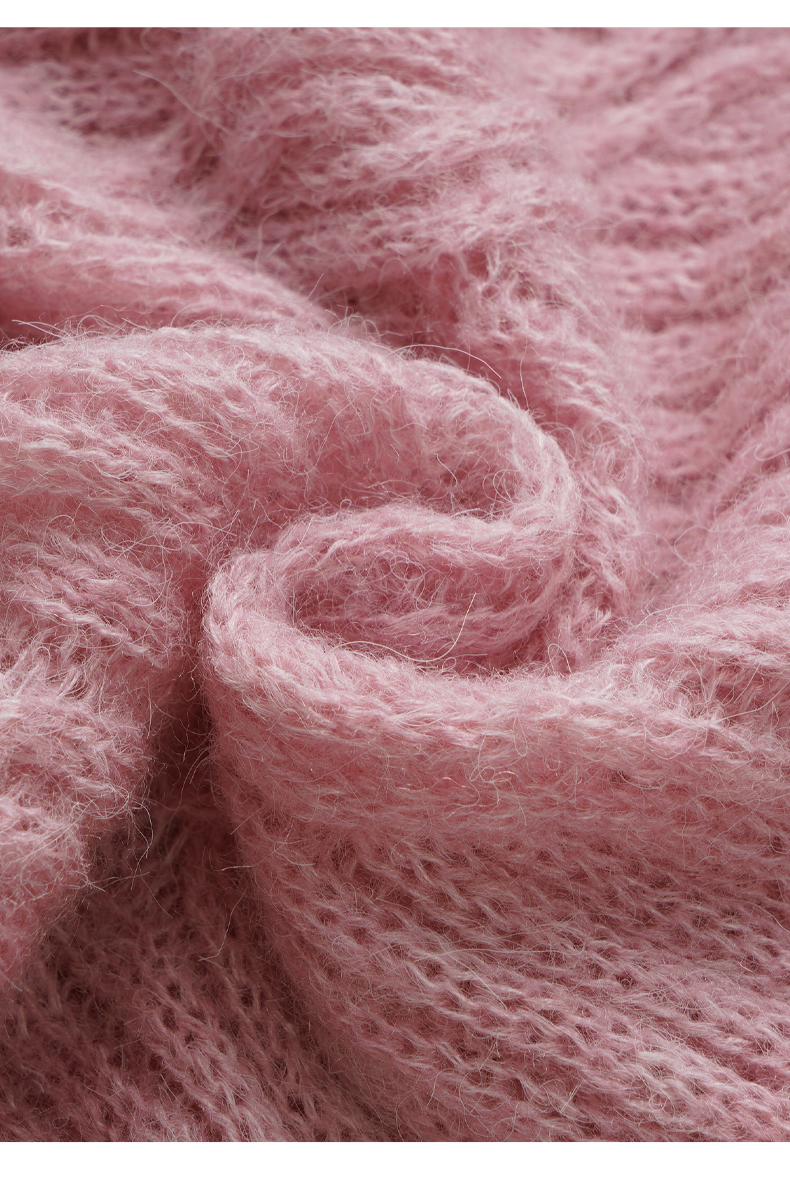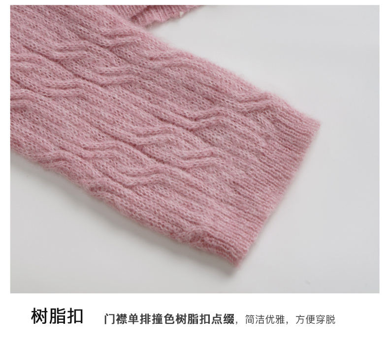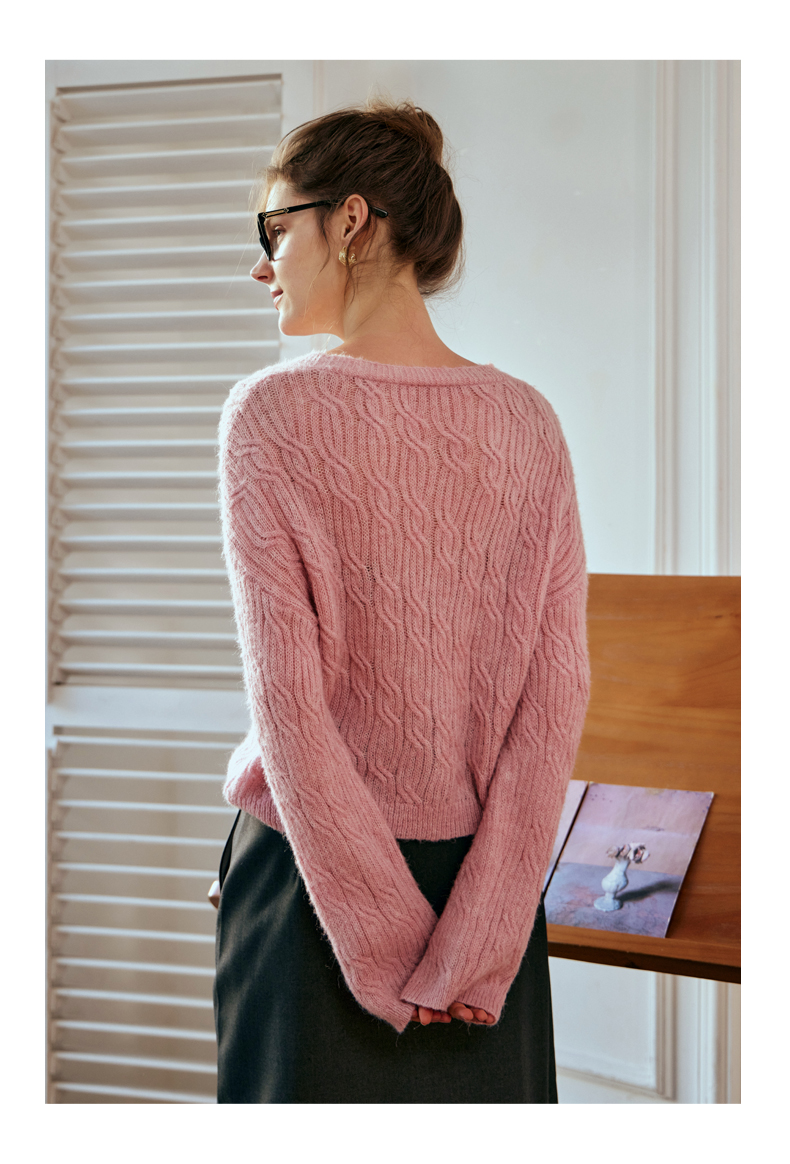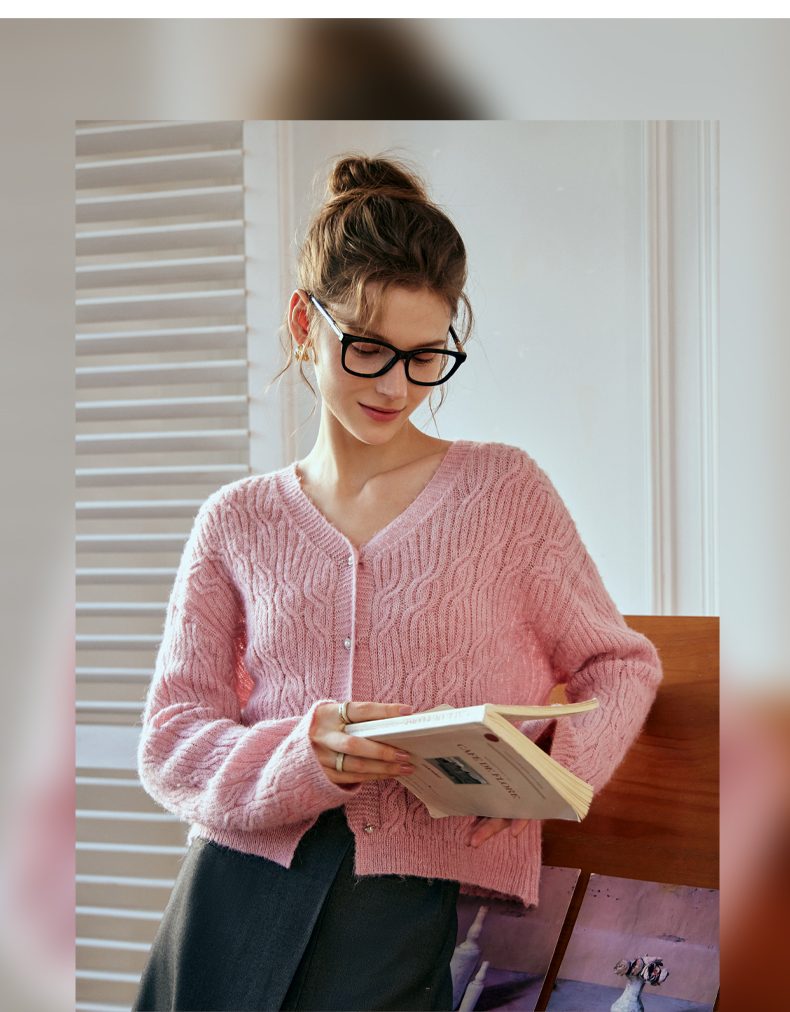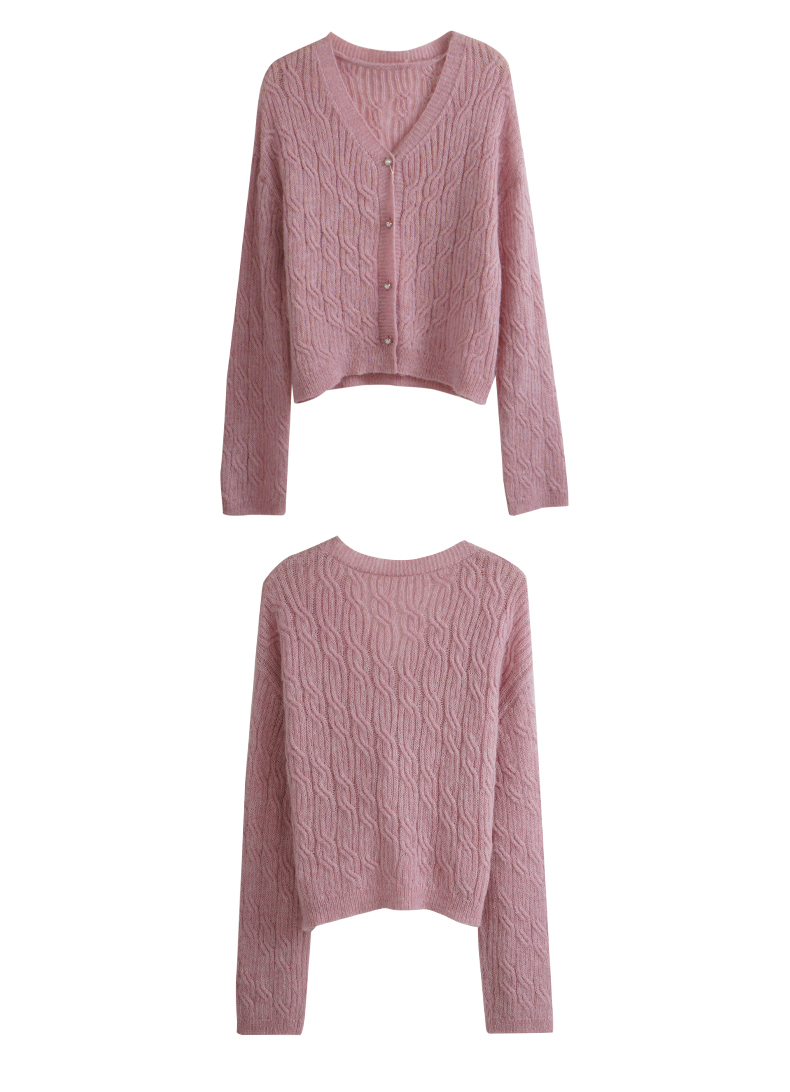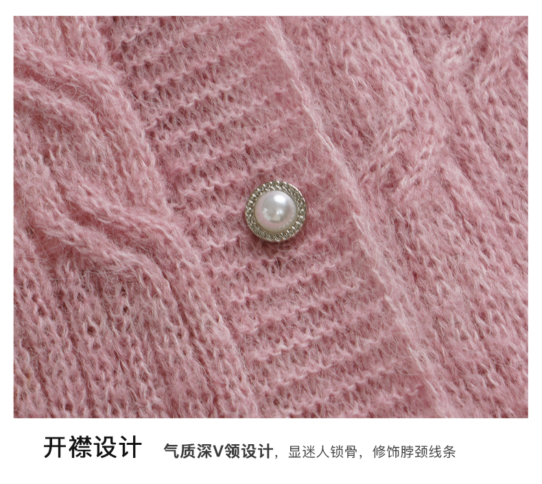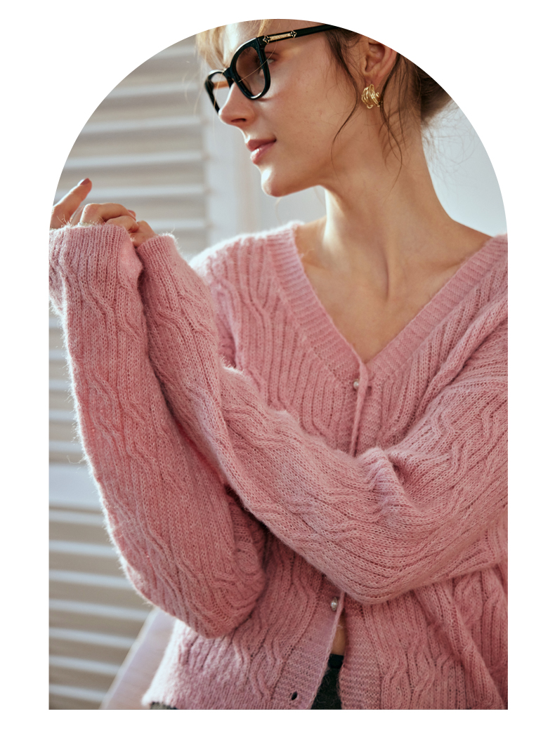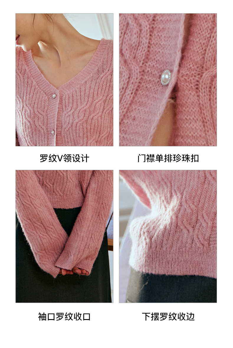 OLrain欧芮儿粉色针织衫女秋冬2023年新款V领绞花薄款开衫外套