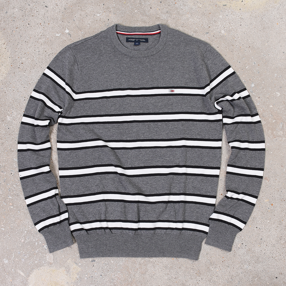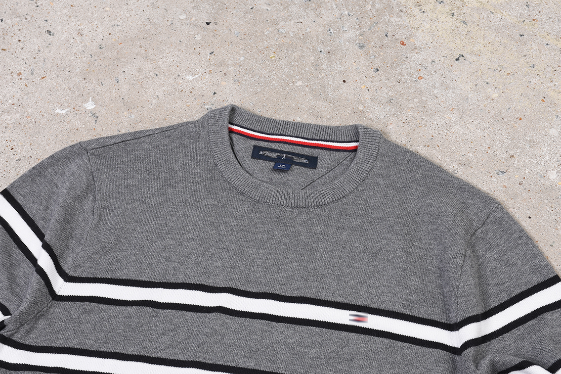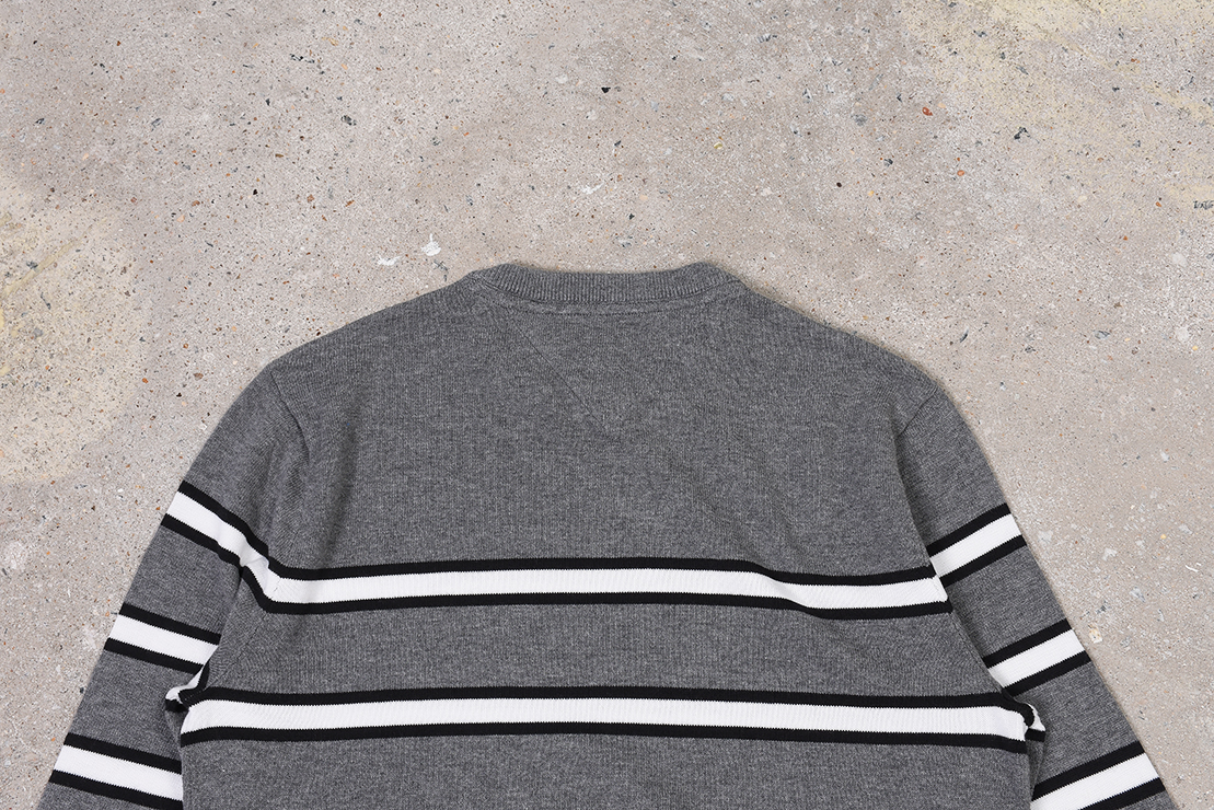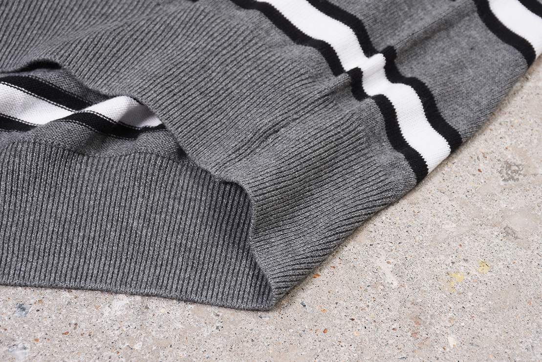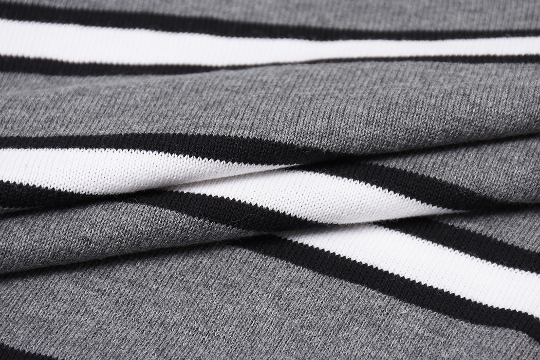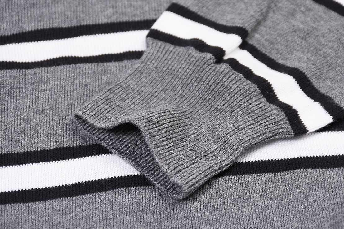 条纹撞色棉质 胸前刺绣 圆领毛衣/针织衫 特惠 T-1086