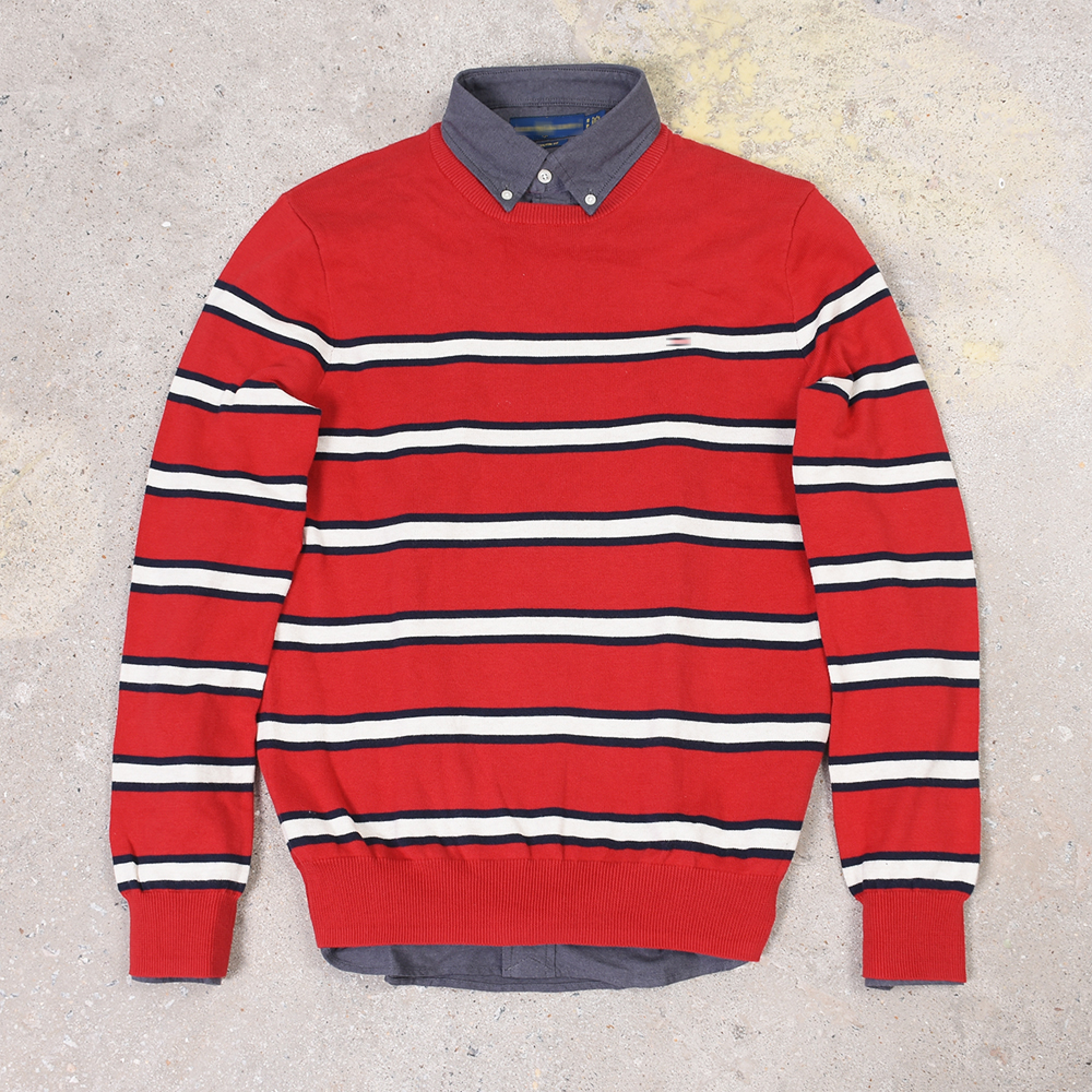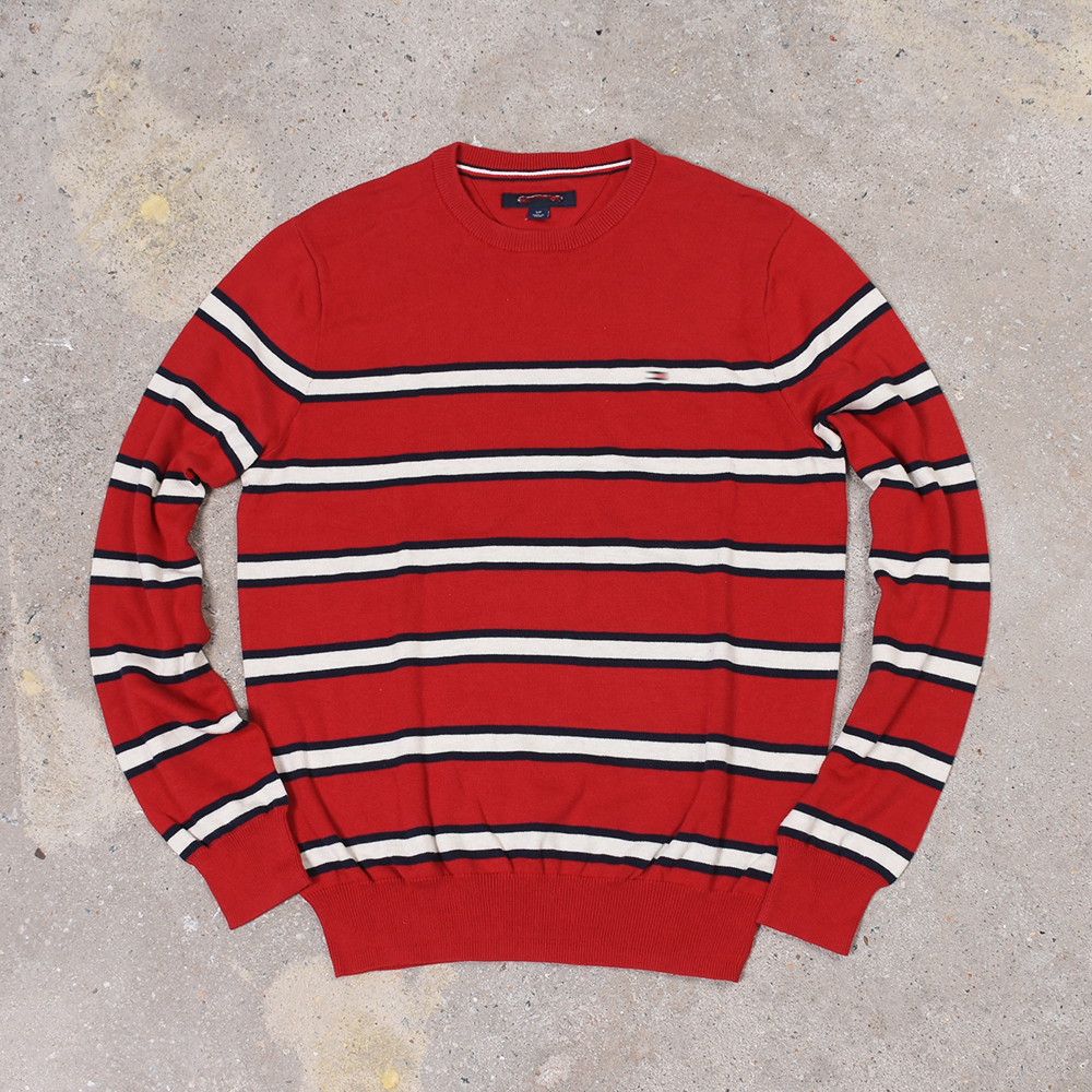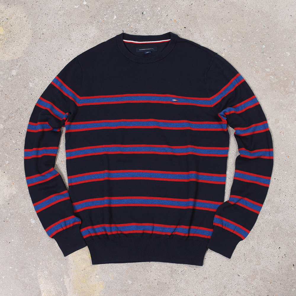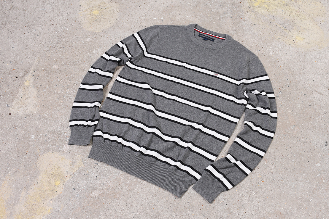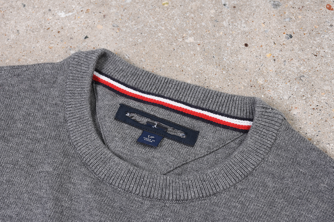 男款条纹撞色圆领毛衣!秋季薄款!部分领标不同,部分码数标错码(按实现尺寸发货),领标剪标或无领标,洗标剪标,棉质面料手感非常舒适!胸前精致刺绣。衬衫百搭!