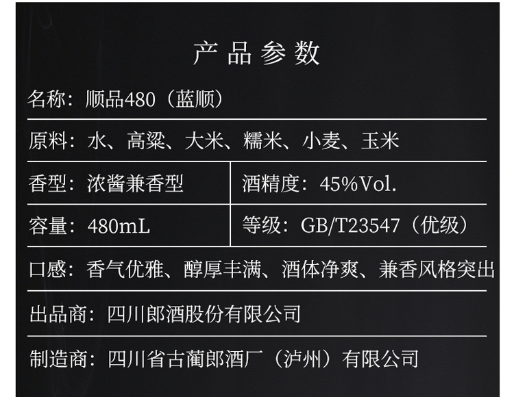 郎酒顺品郎480ml(蓝顺)*3+(红顺)*3