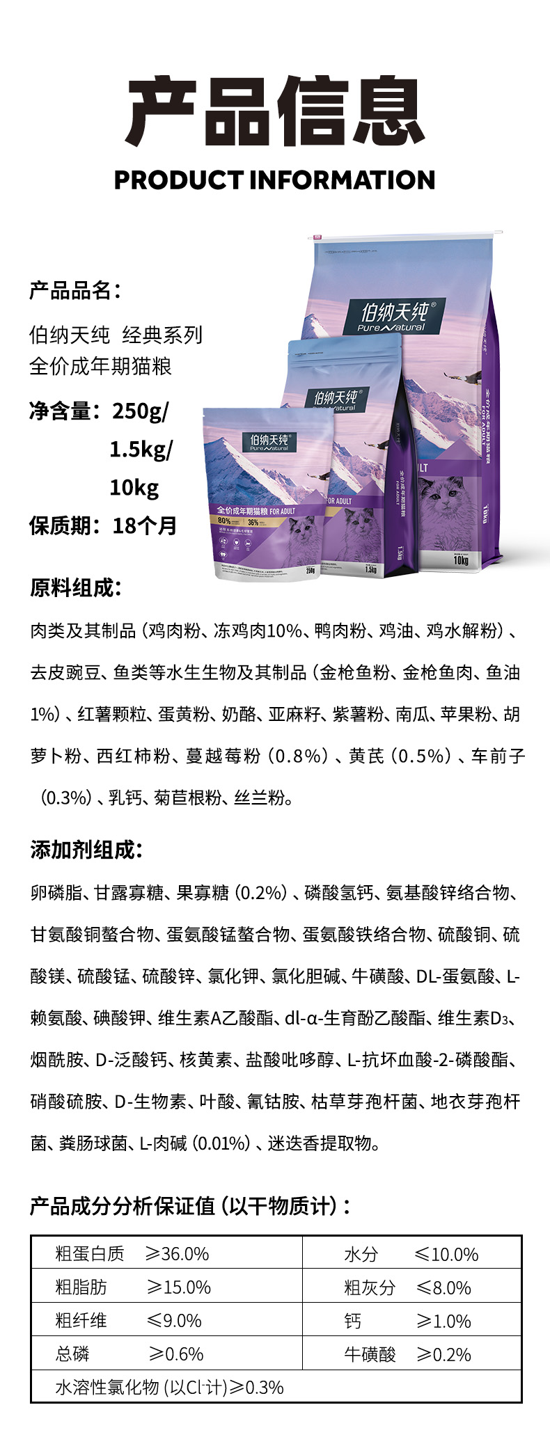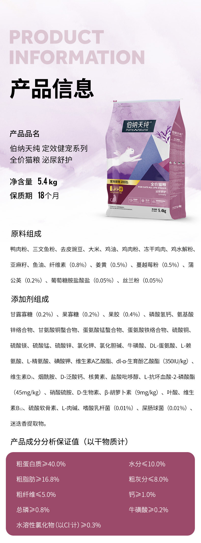 伯纳天纯幼/成猫粮泌尿舒护/体重管理1.5kg/5kg/10kg/5.4kg