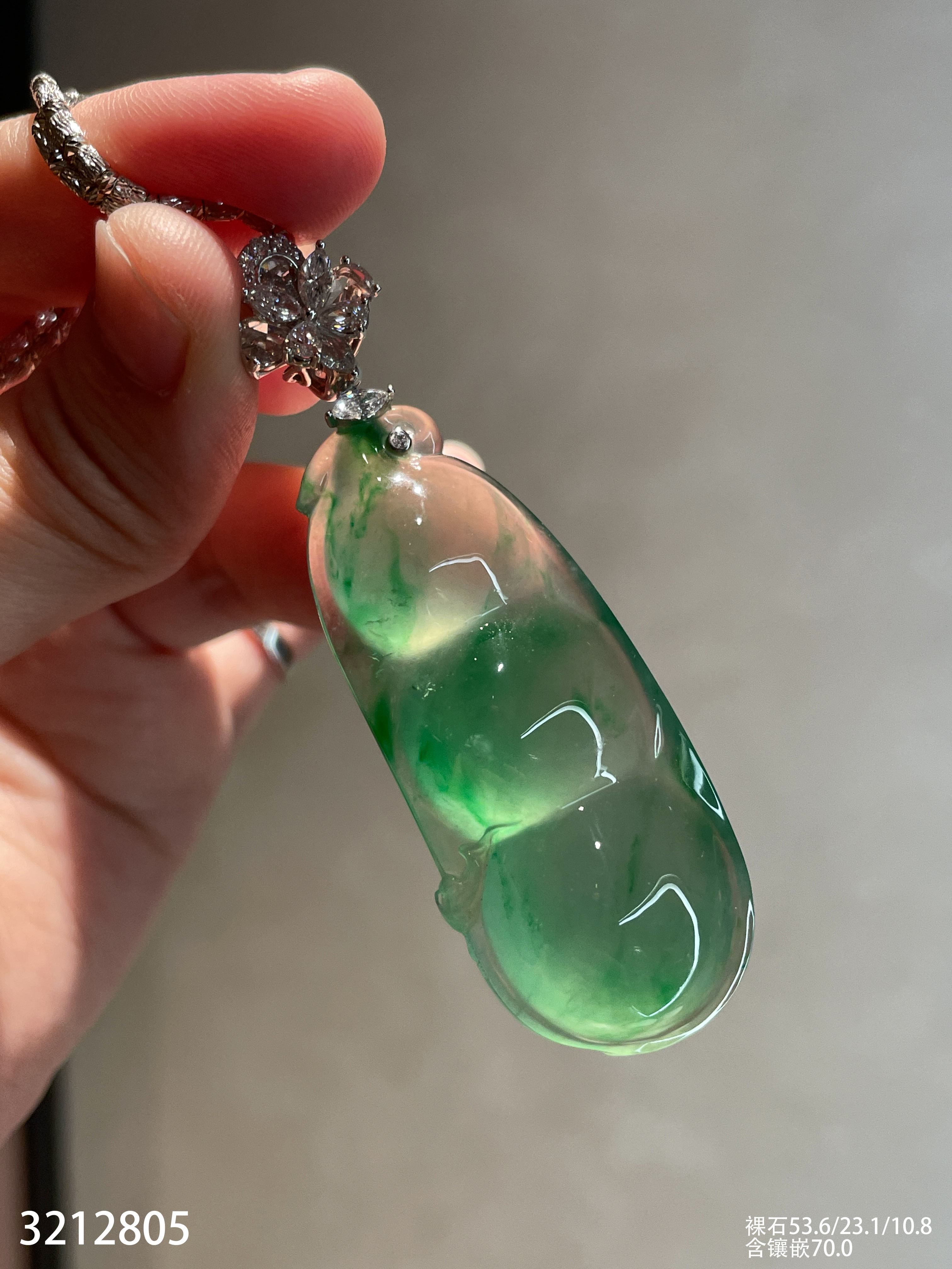 龙石种飘翠福豆吊坠【3212805】具体价格微信咨询