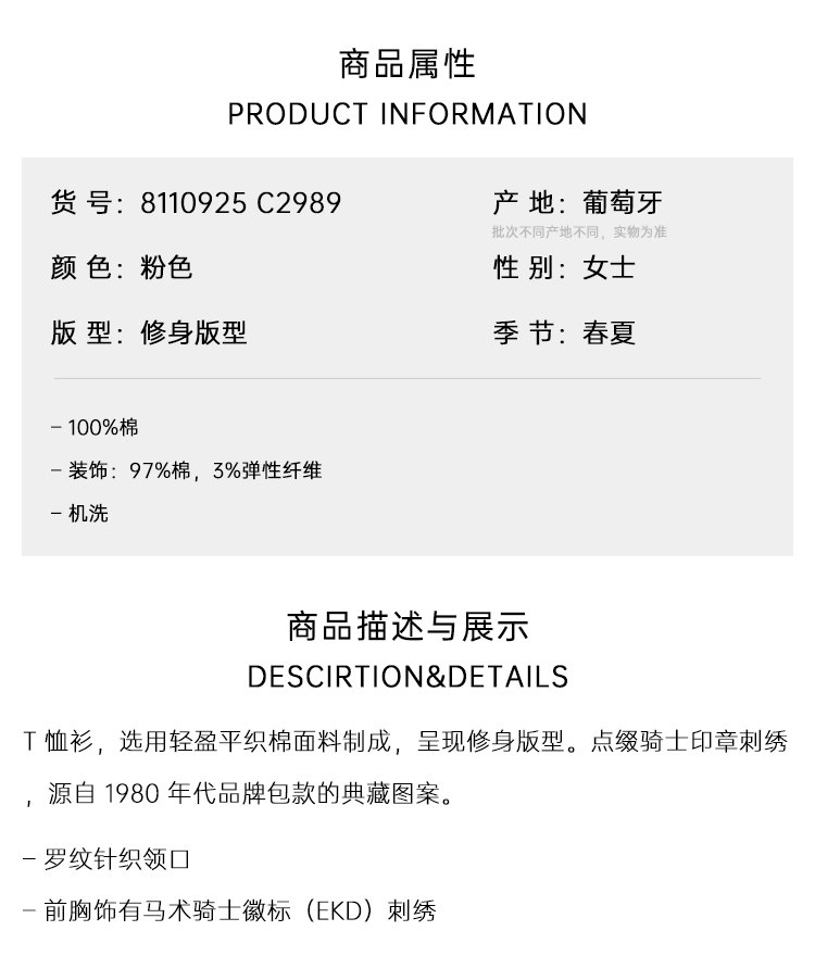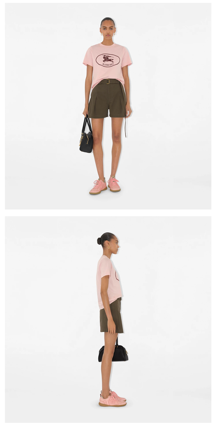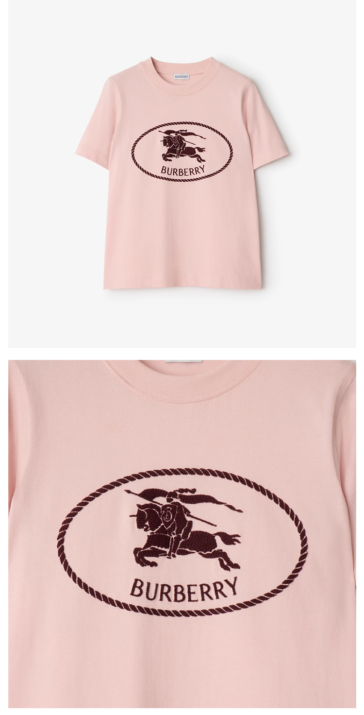 【二】BURBERRY 巴宝莉 女士马术骑士印章棉质圆领短袖T恤 粉色 8110925 C2989
