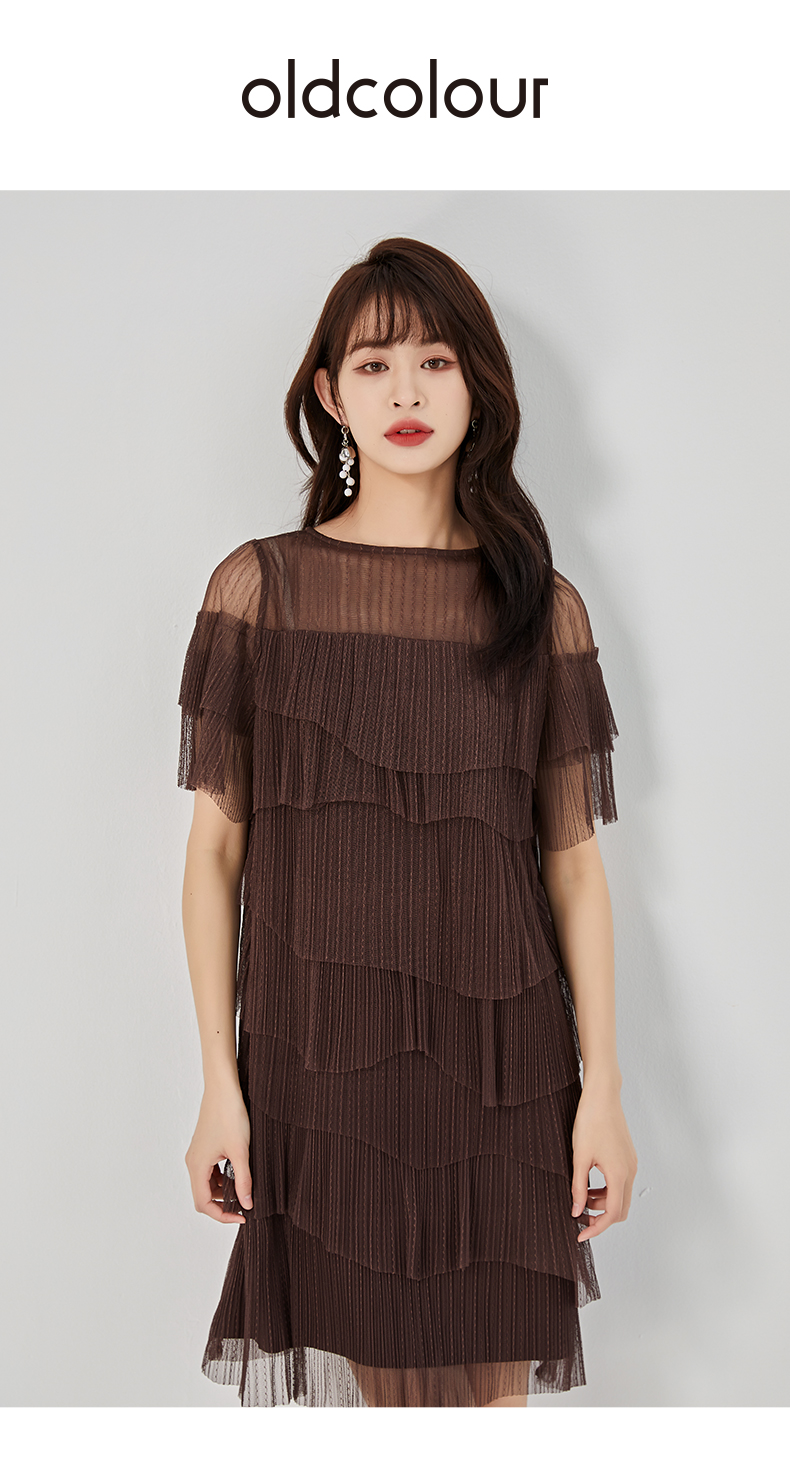 oldcolour夏新款设计感小众气质宽松蕾丝蛋糕连衣裙O21101153
