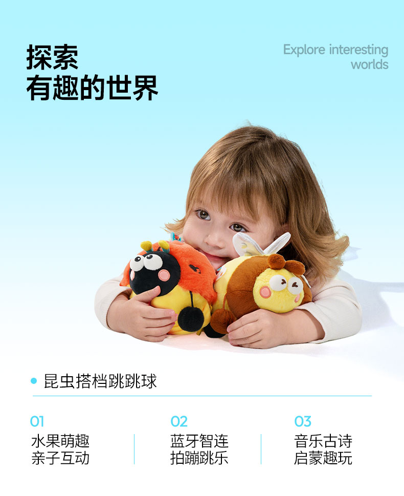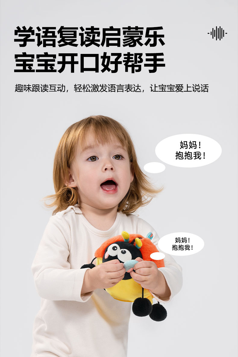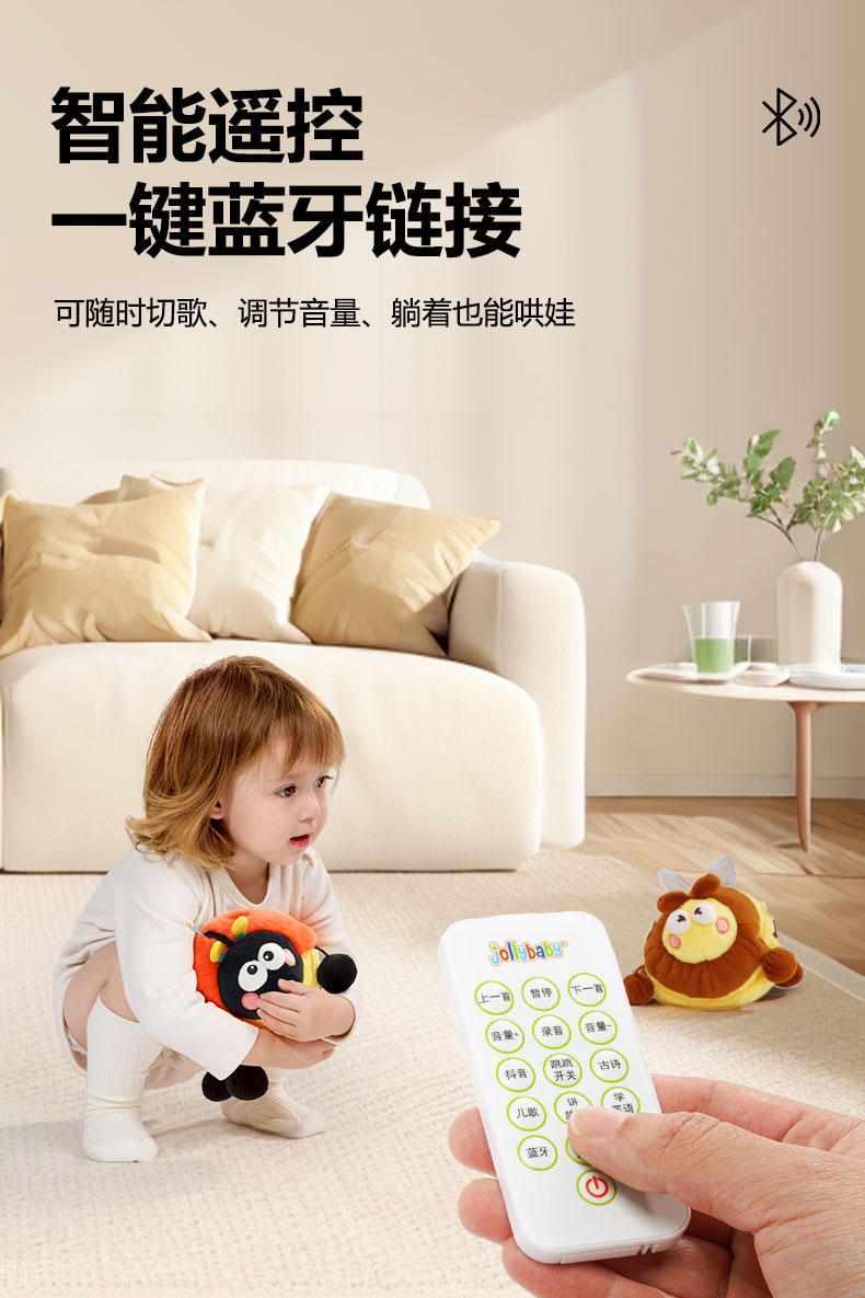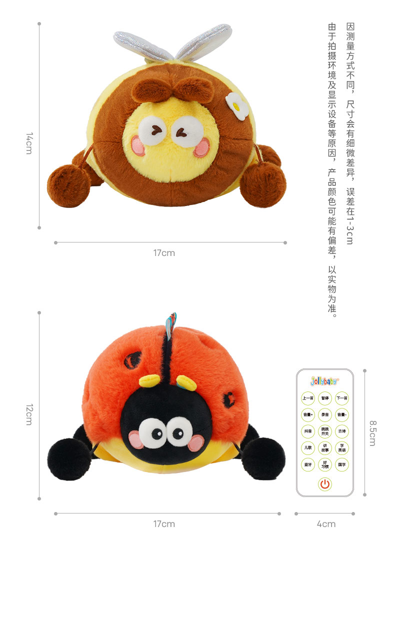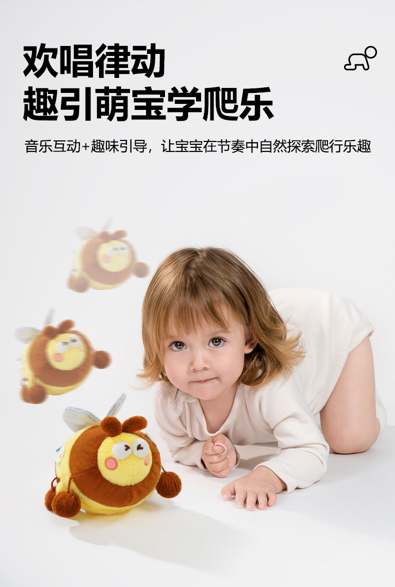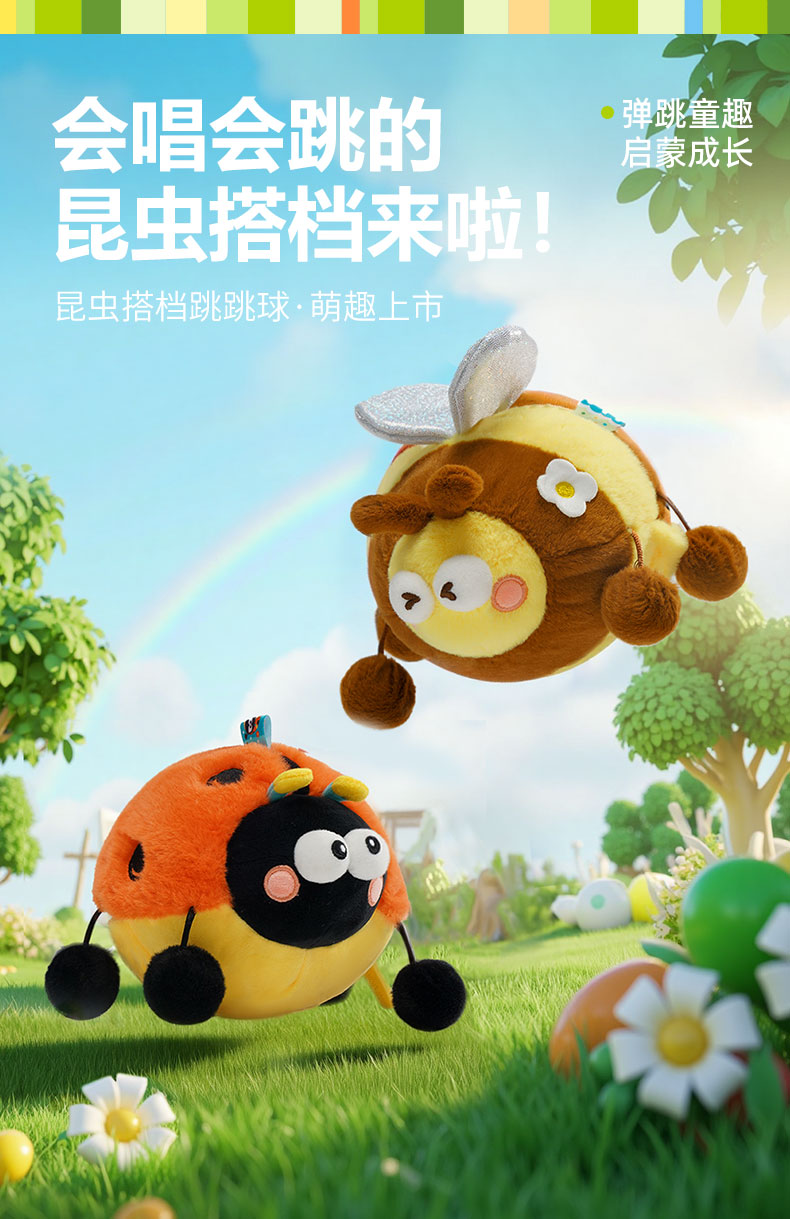 *jollybaby跳跳球 勤劳蜜蜂&快乐瓢虫 婴幼儿学爬声动哄娃神器昆虫毛绒玩偶学说话0-6月