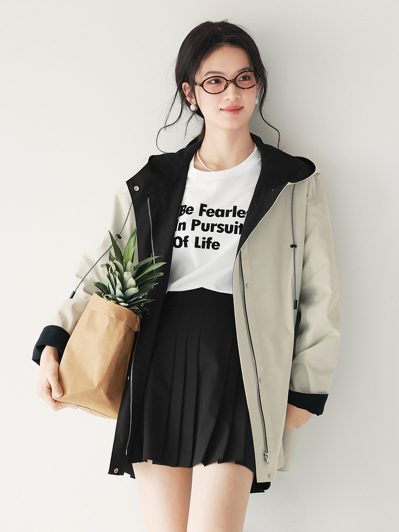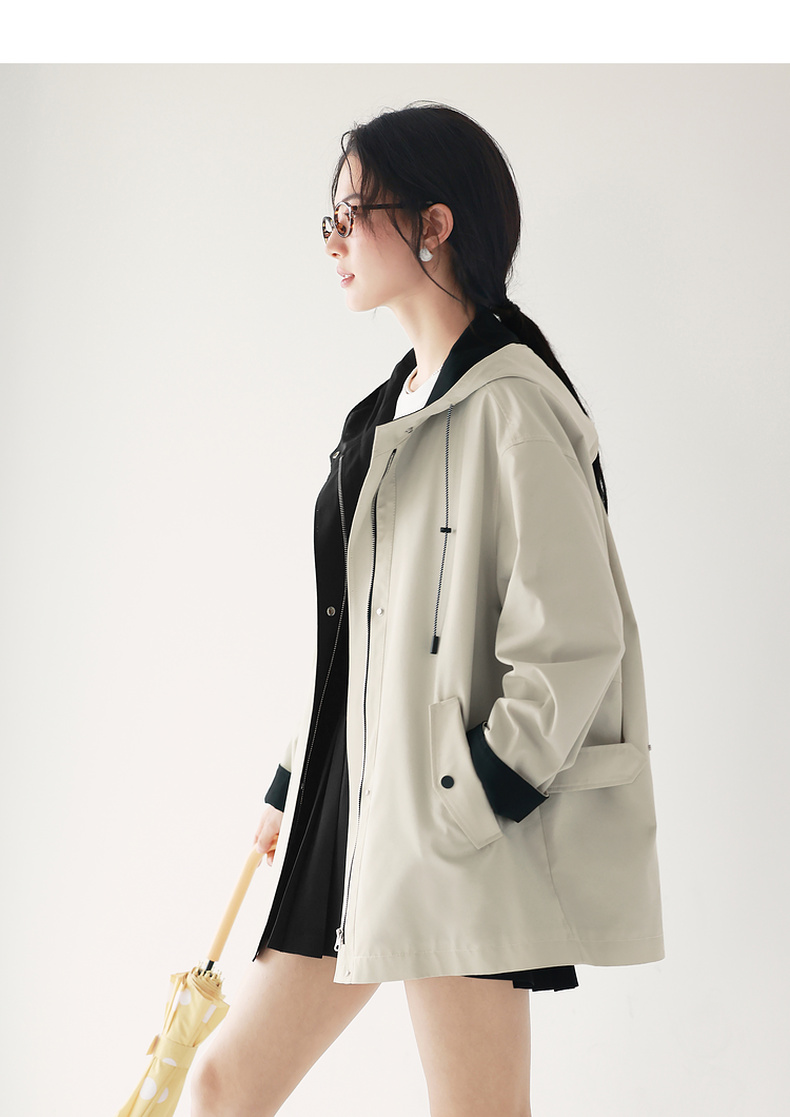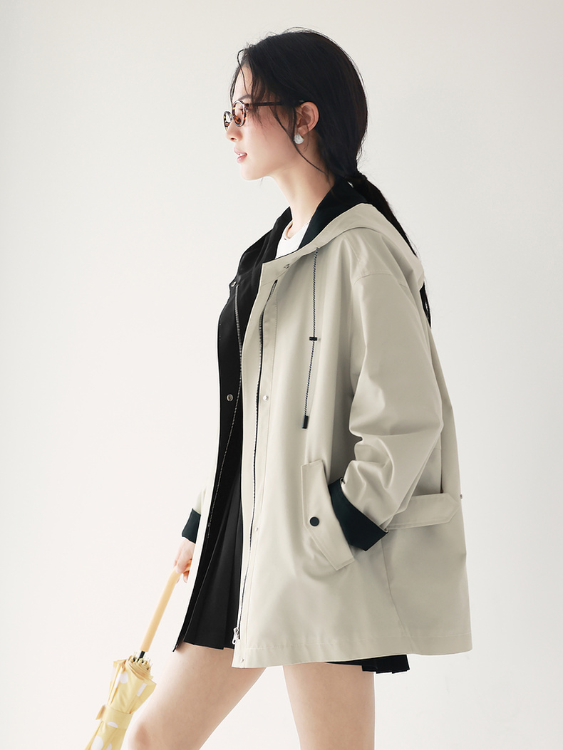 【经典款】【商场同款】伊芙丽春秋撞色连帽派克式风衣1G7860021
