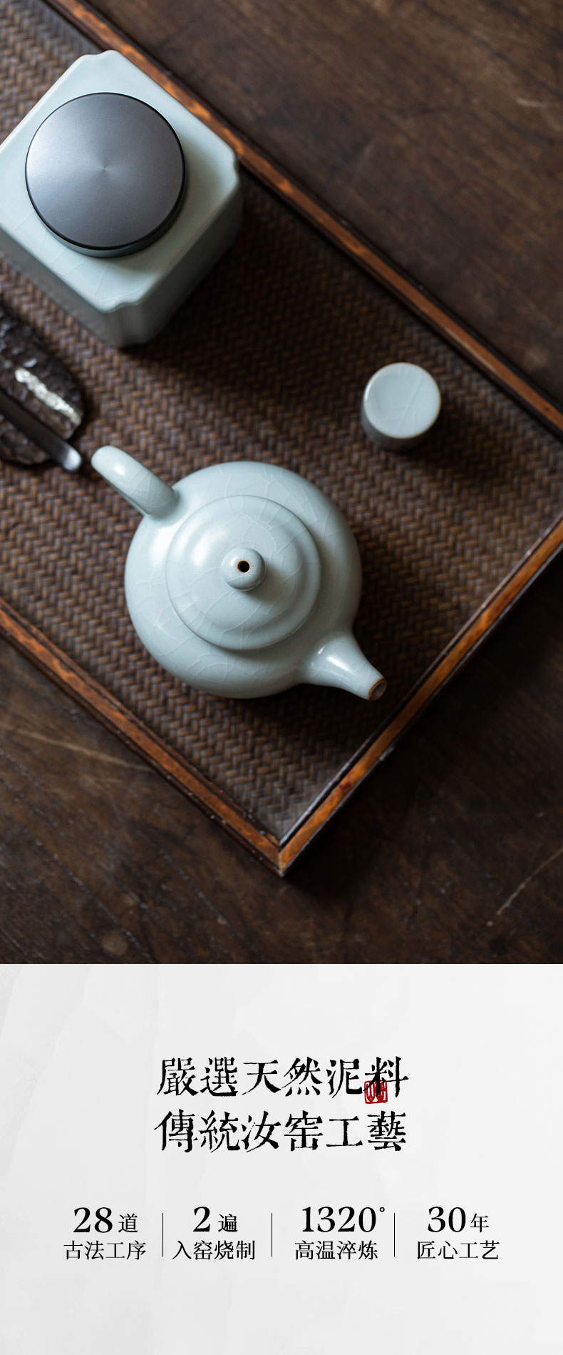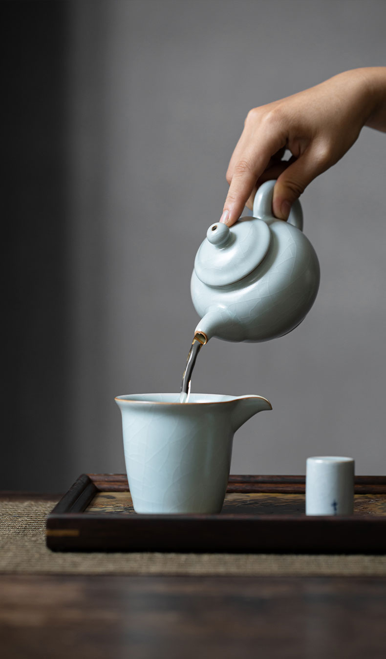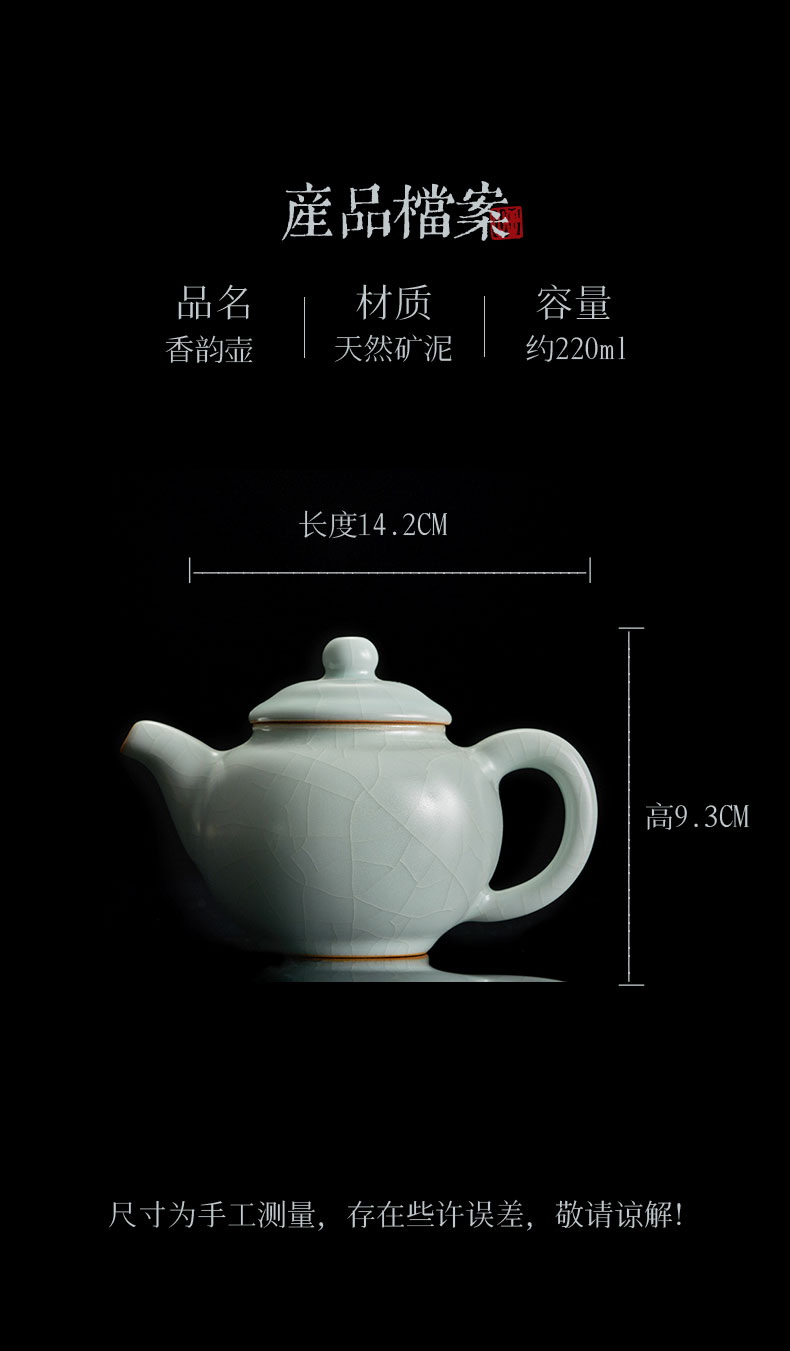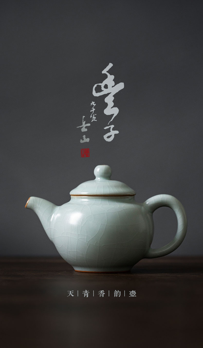 【丰子汝窑】【天青香韵壶】14x9.2cm 210ml 茶壶纯手工开片泡茶壶陶瓷汝瓷天青功夫茶具