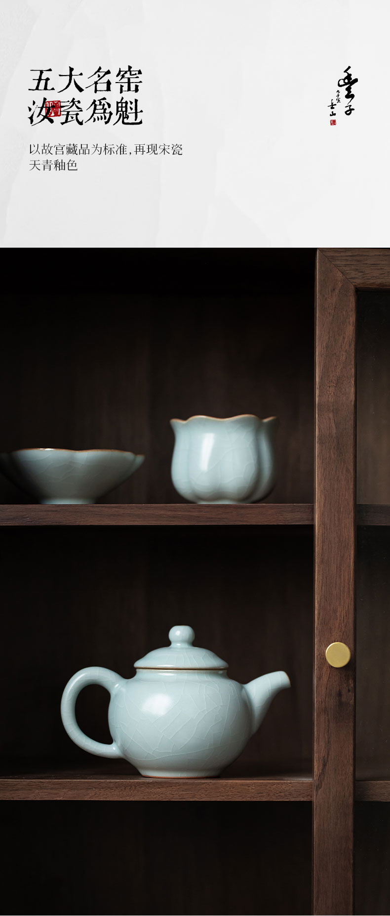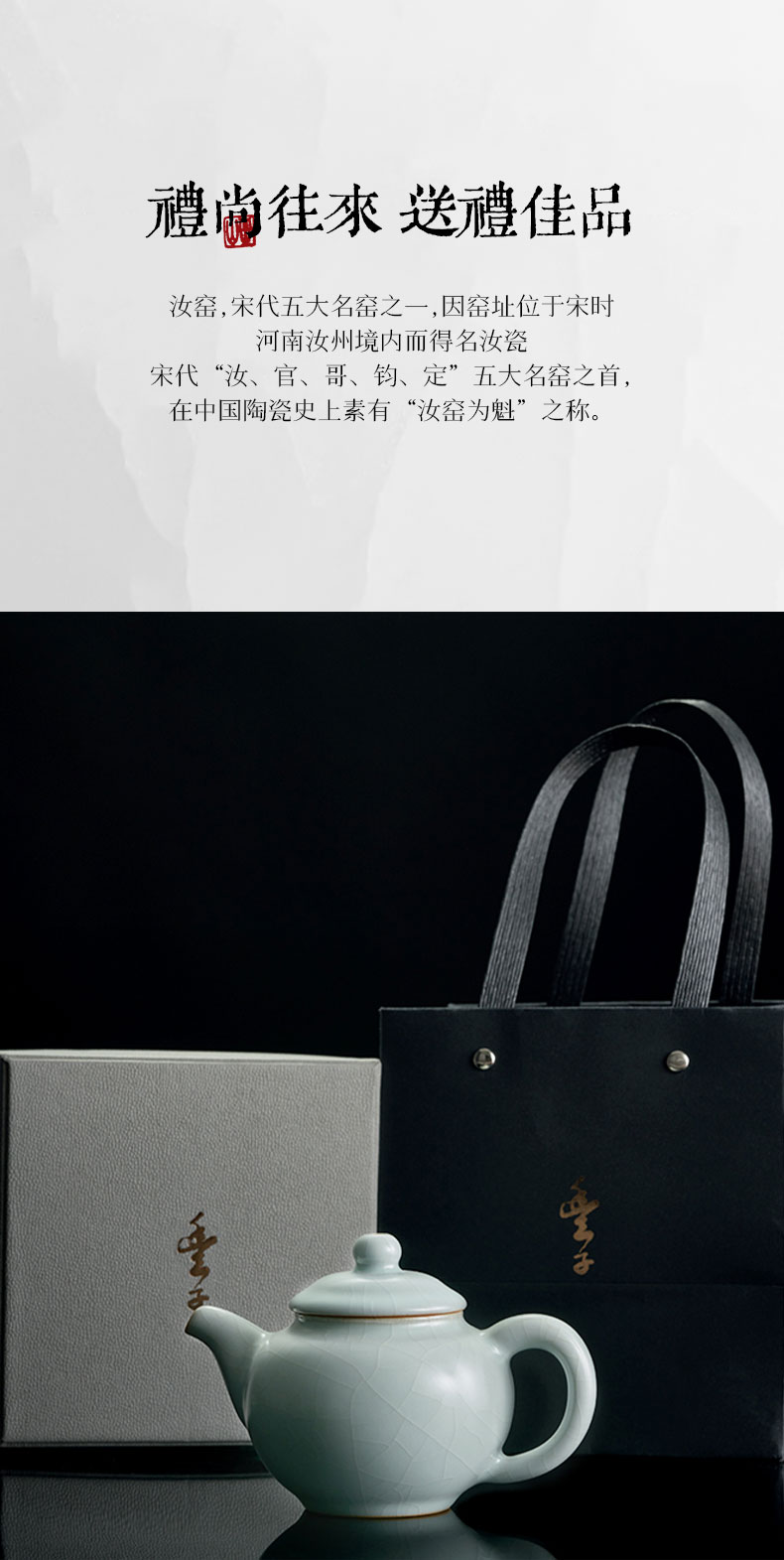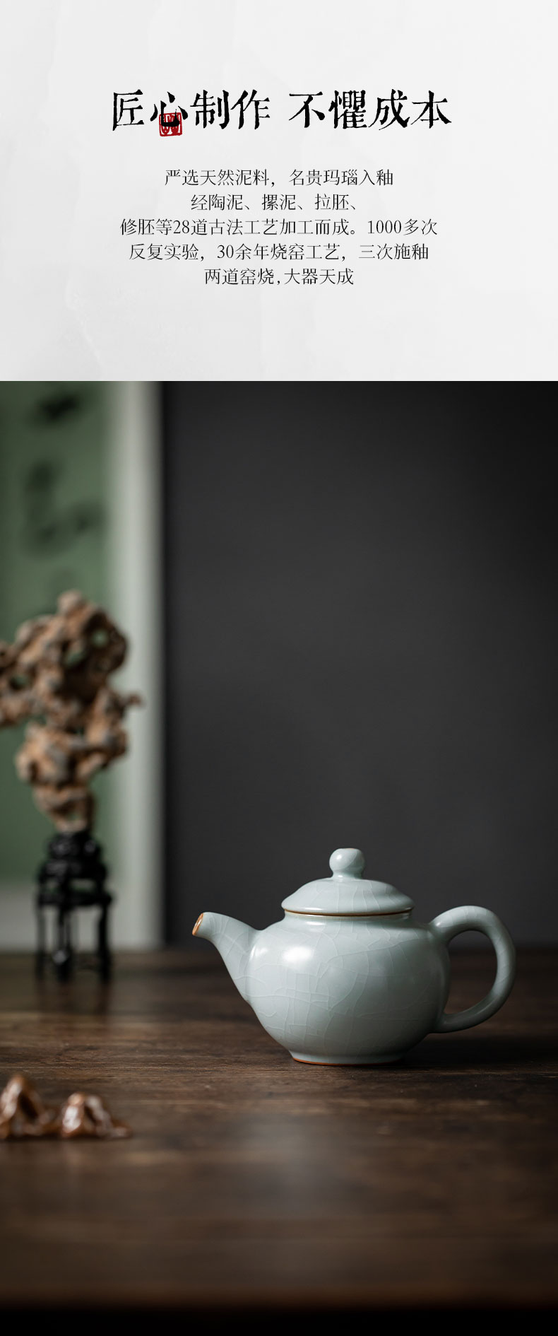 【丰子汝窑】【天青香韵壶】14x9.2cm 210ml 茶壶纯手工开片泡茶壶陶瓷汝瓷天青功夫茶具