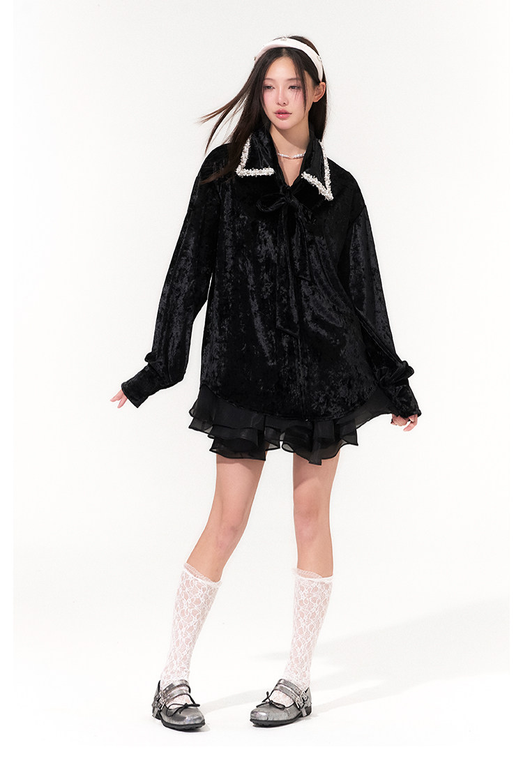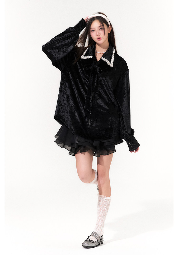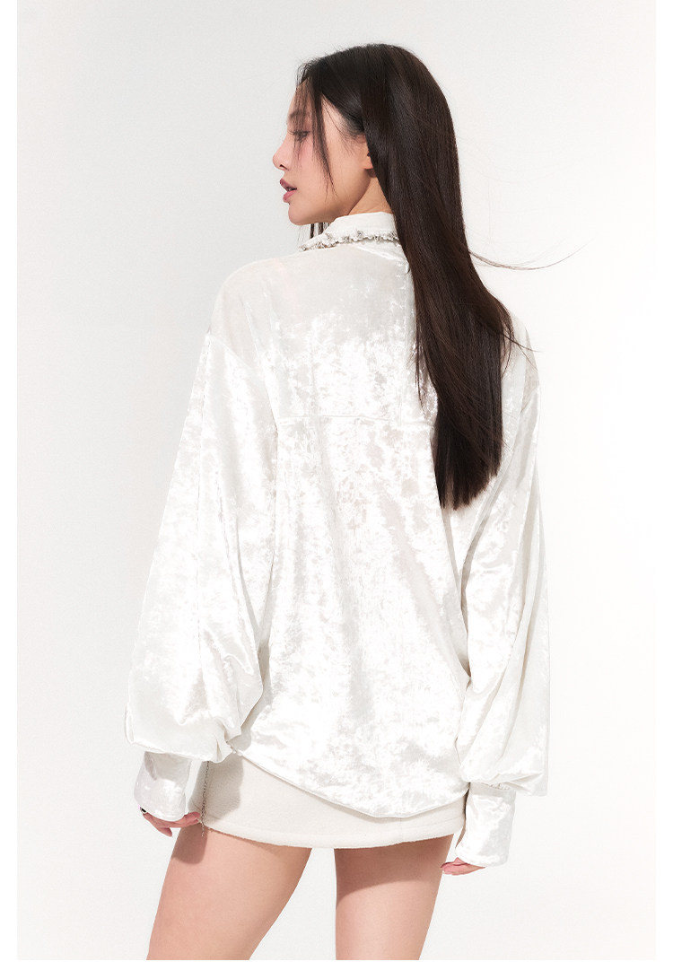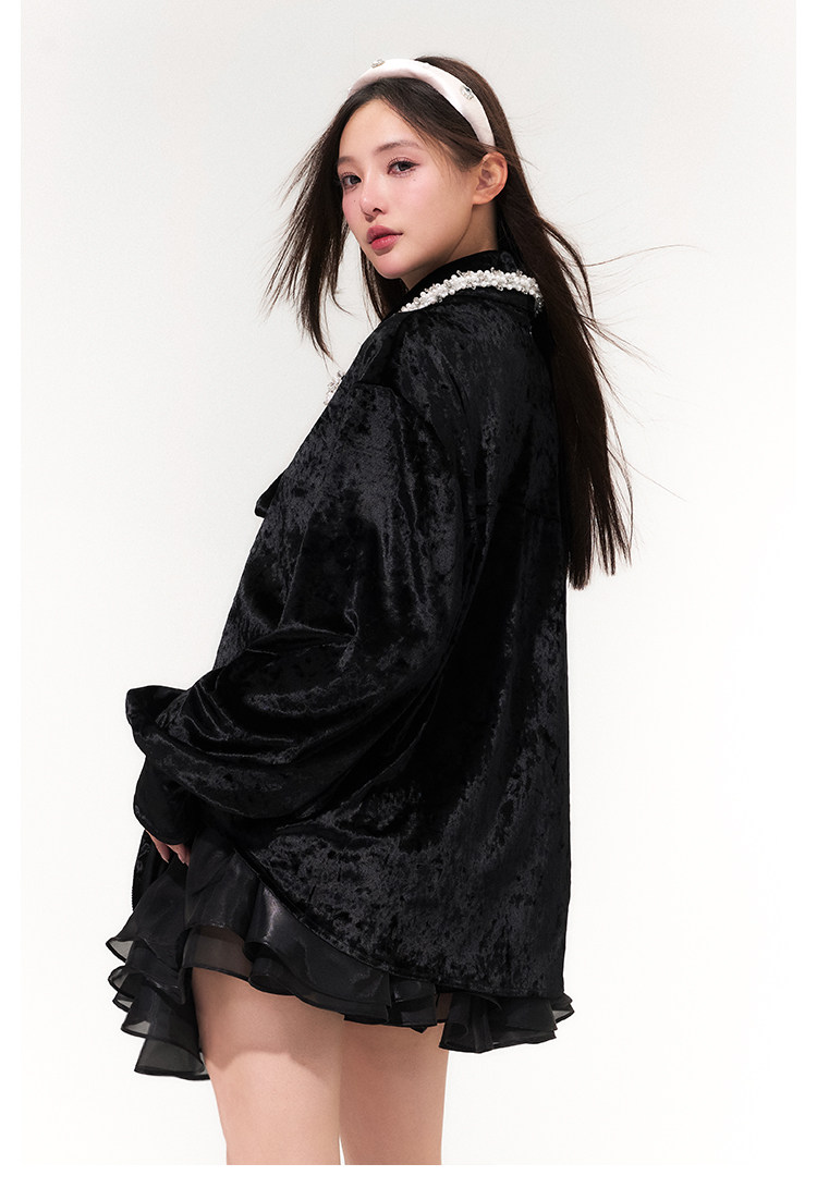 FTT FlyTheTruth『杜乐丽花园』 新中式丝绒衬衫女秋季小香风衬衣