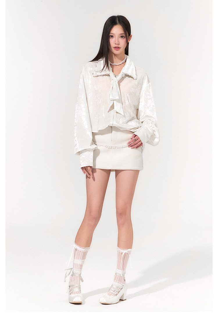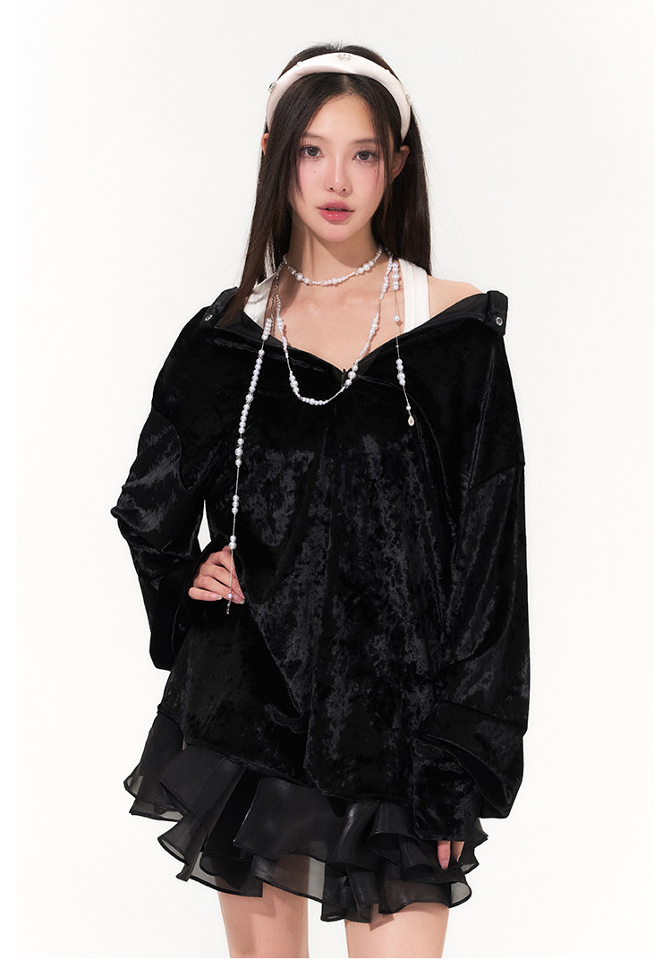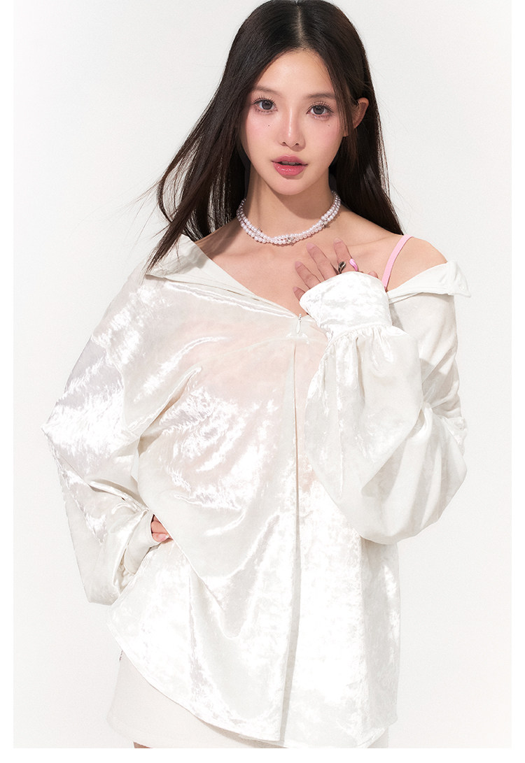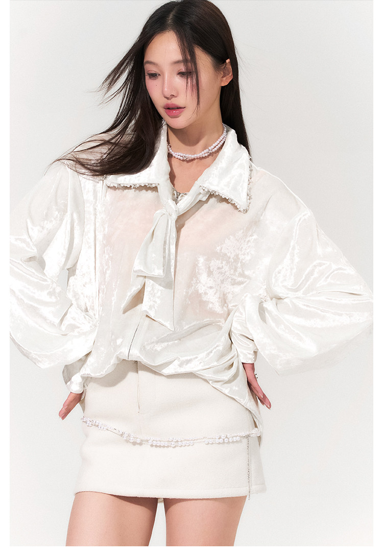 FTT FlyTheTruth『杜乐丽花园』 新中式丝绒衬衫女秋季小香风衬衣