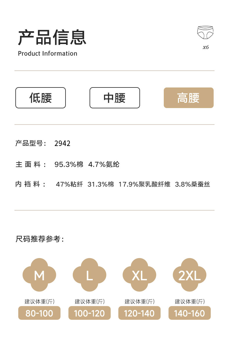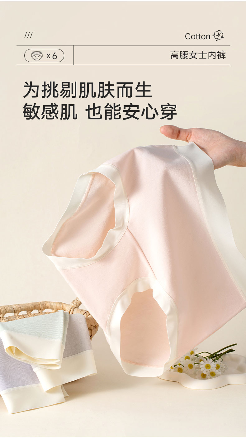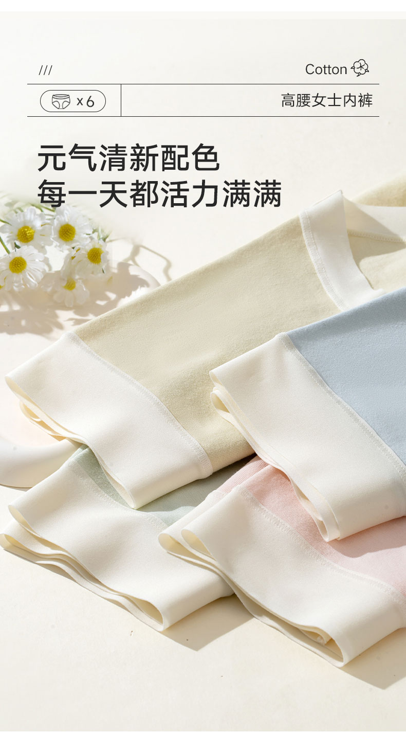 女士云感棉朵裤中高腰加长裆撞色三角内裤2942