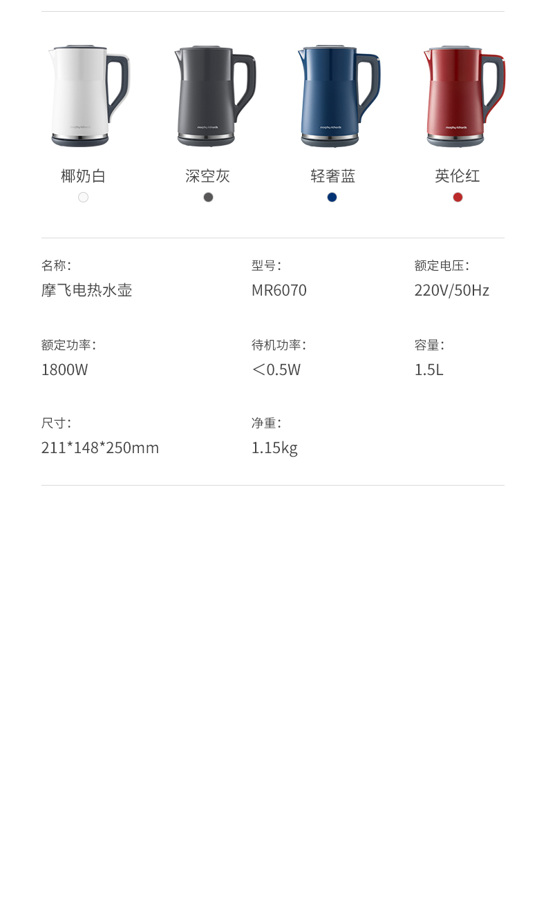 摩飞电热水壶烧水壶1.5L MR6070 YS