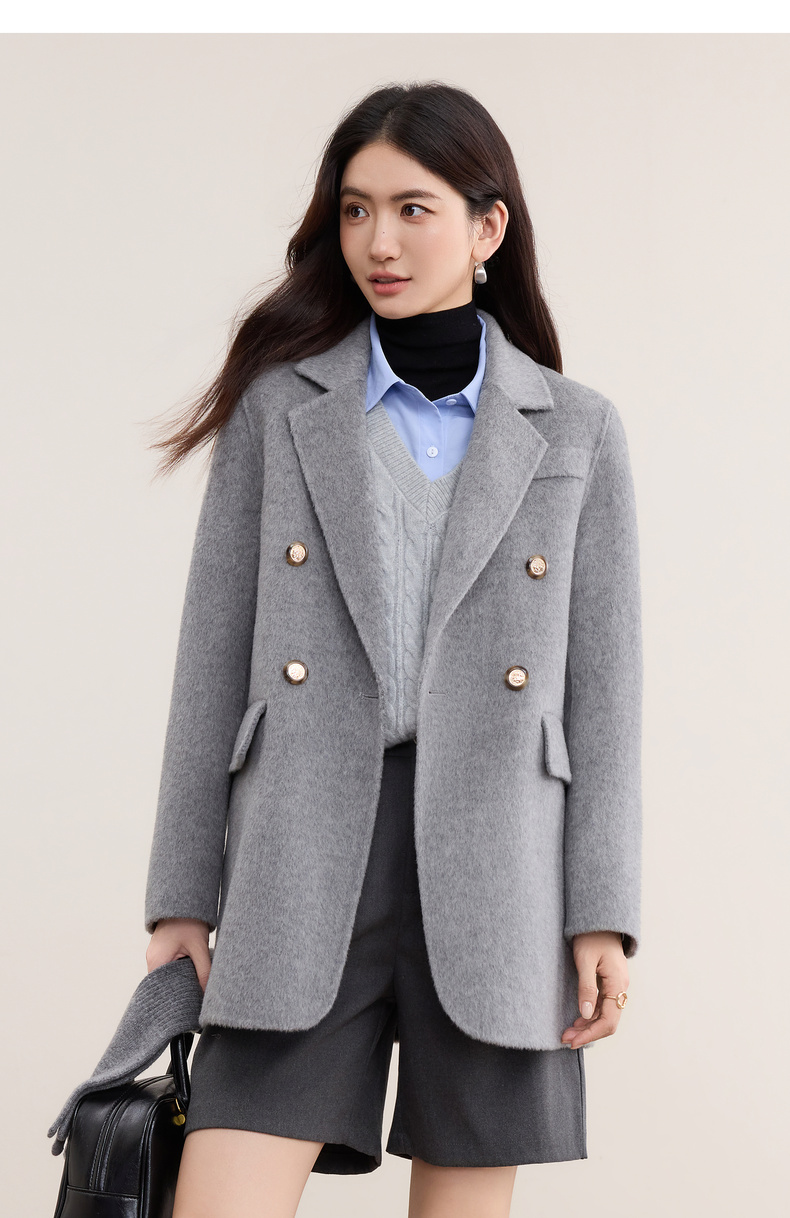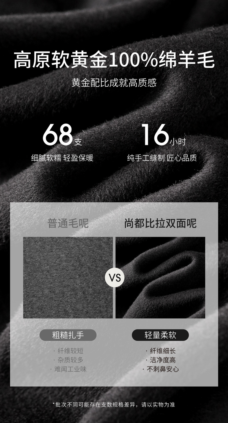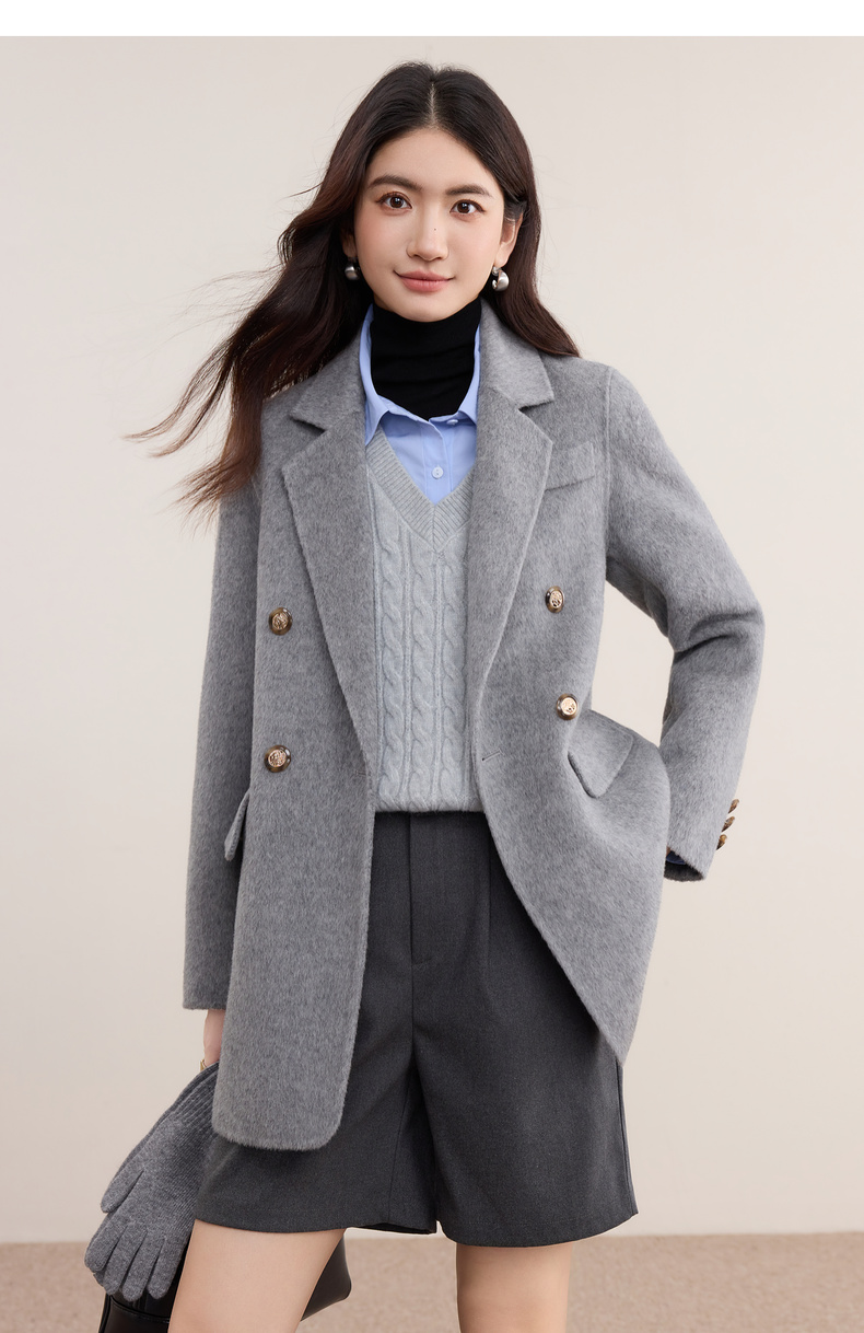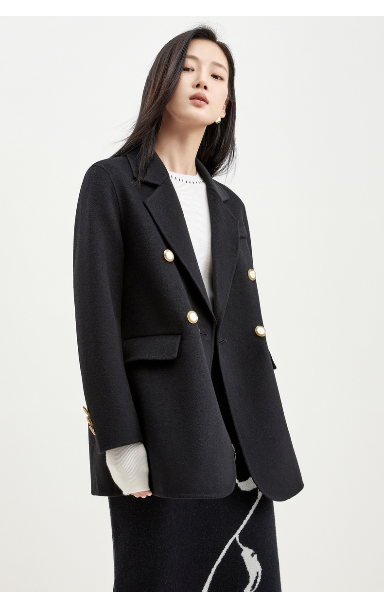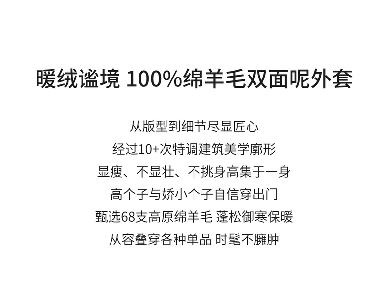 【内购】【100%绵羊毛】英伦风翻领浮雕双排扣长袖袖厚保暖双面呢外套-W54OG3694X