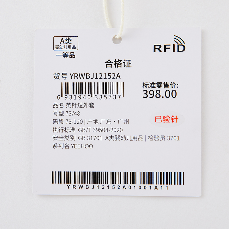 英氏男宝宝春秋单层薄外套纯棉无帽休闲拉链衫22YRWBJ12152A