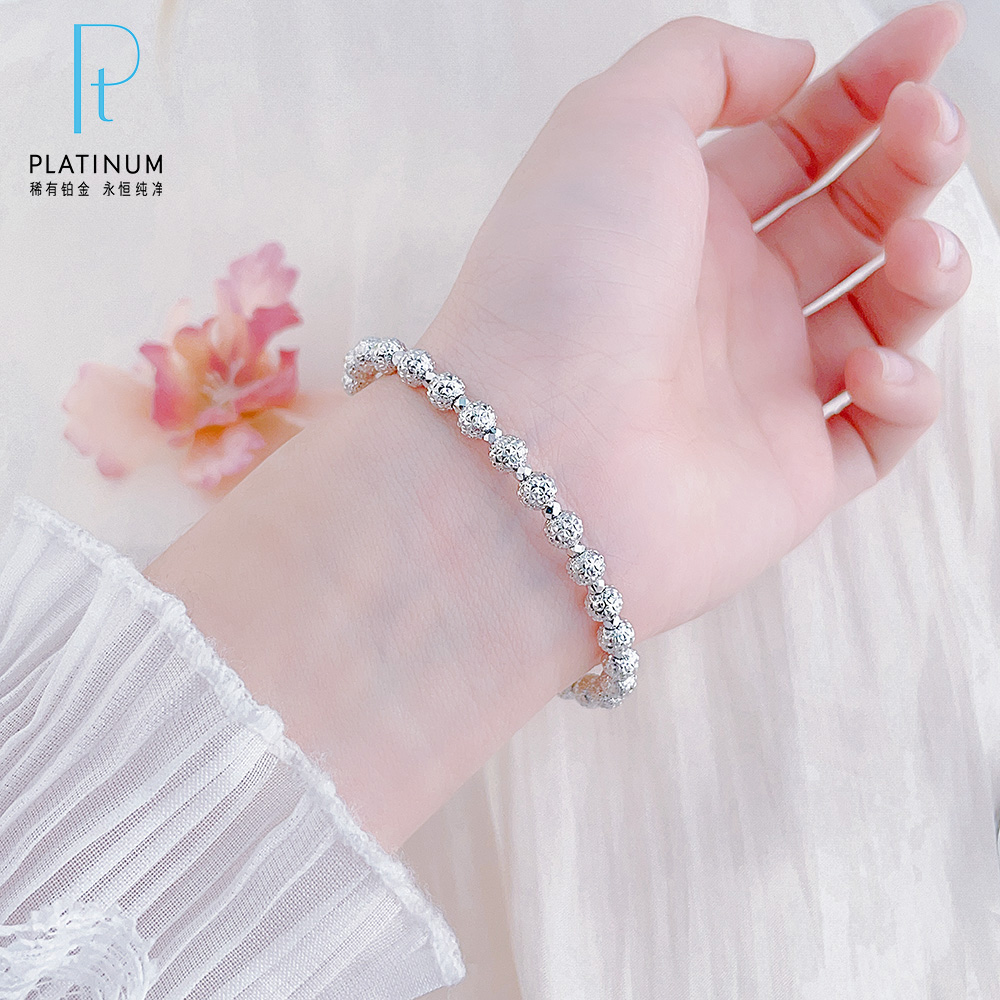 【限时8.8折】【线上铂金馆】PT950 国际铂金协会 铂金镂空开口C字镯麒麟珠调节手镯链镯(内里为铂金弹力金线,珠约4.8-5.2mm)(BSZ00178)预售产品下单后不退款不退货不换货不补差价)