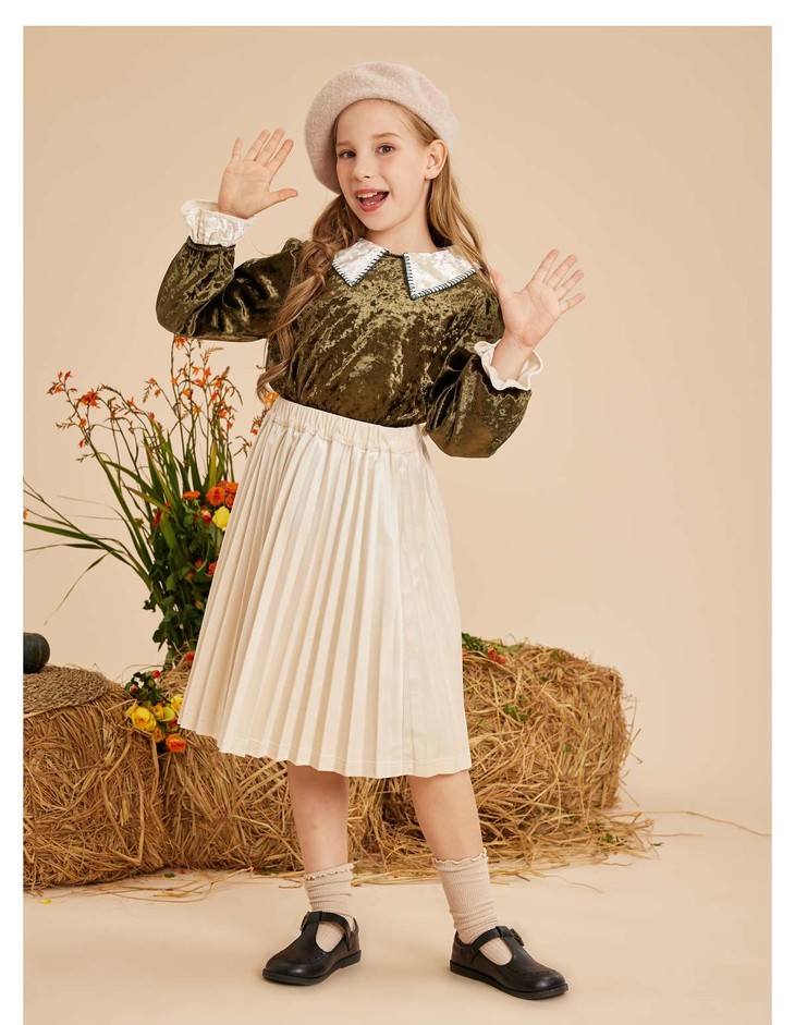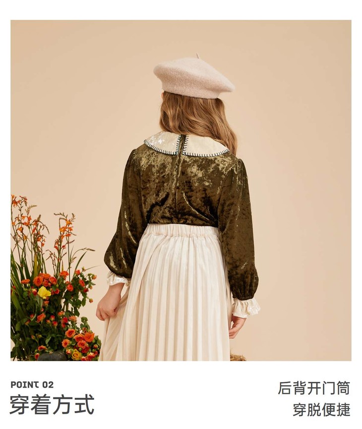 littletime女童法式翻领丝绒衬衫2022秋冬保暖加厚上衣新款儿童上衣