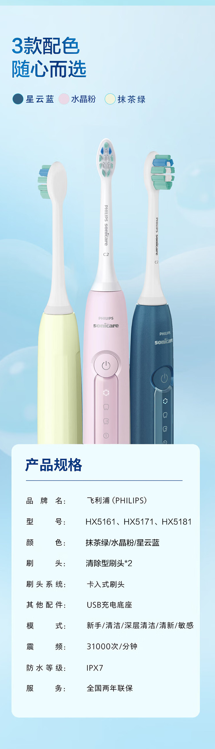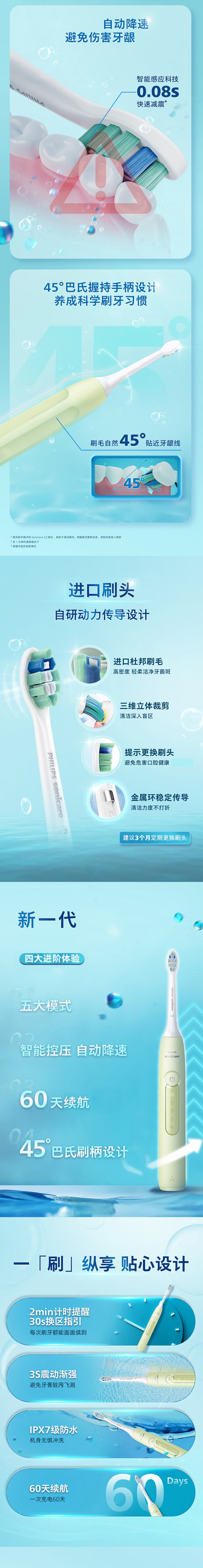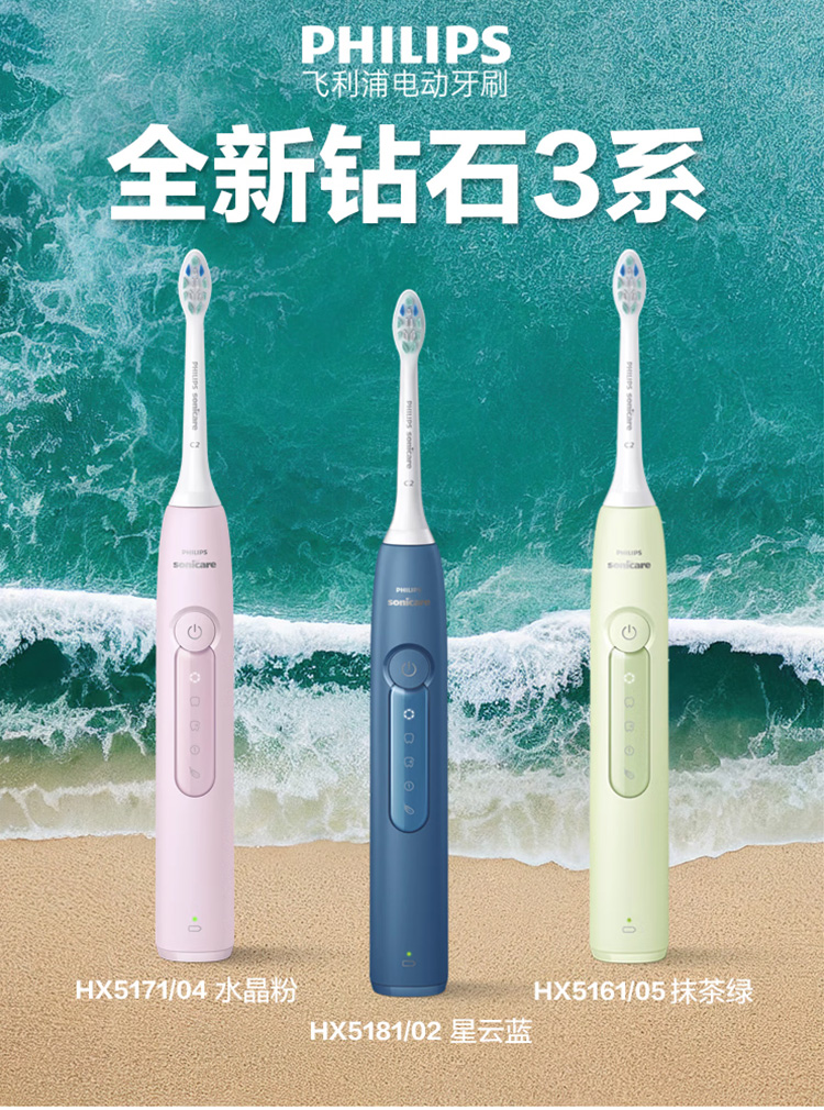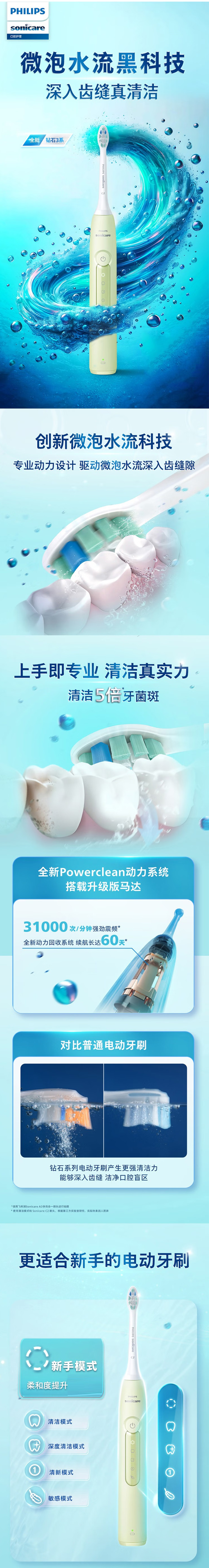 飞利浦PHILIPS电动牙刷钻石3系 6730升级款 微泡水流科技五种模式HX5161 HX5171 HX5181