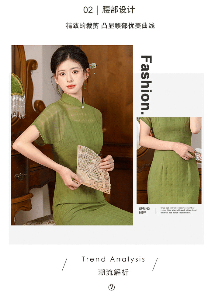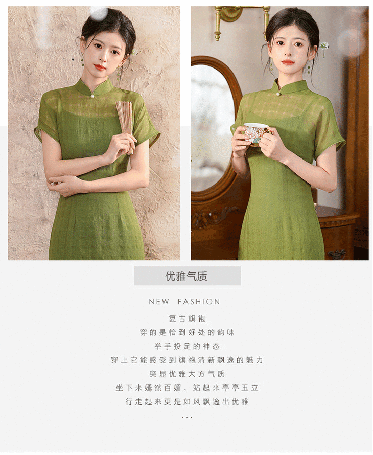 古法连肩袖香云纱绿色高贵雪纺高端2025新款修身春夏款旗袍TX8898 商品缩略图0 古法连肩袖香云纱绿色高贵雪纺高端2025新款修身春夏款旗袍TX8898 商品缩略图1 古法连肩袖香云纱绿色高贵雪纺高端2025新款修身春夏款旗袍TX8898 商品缩略图2 古法连肩袖香云纱绿色高贵雪纺高端2025新款修身春夏款旗袍TX8898 商品缩略图3 古法连肩袖香云纱绿色高贵雪纺高端2025新款修身春夏款旗袍TX8898 商品缩略图4