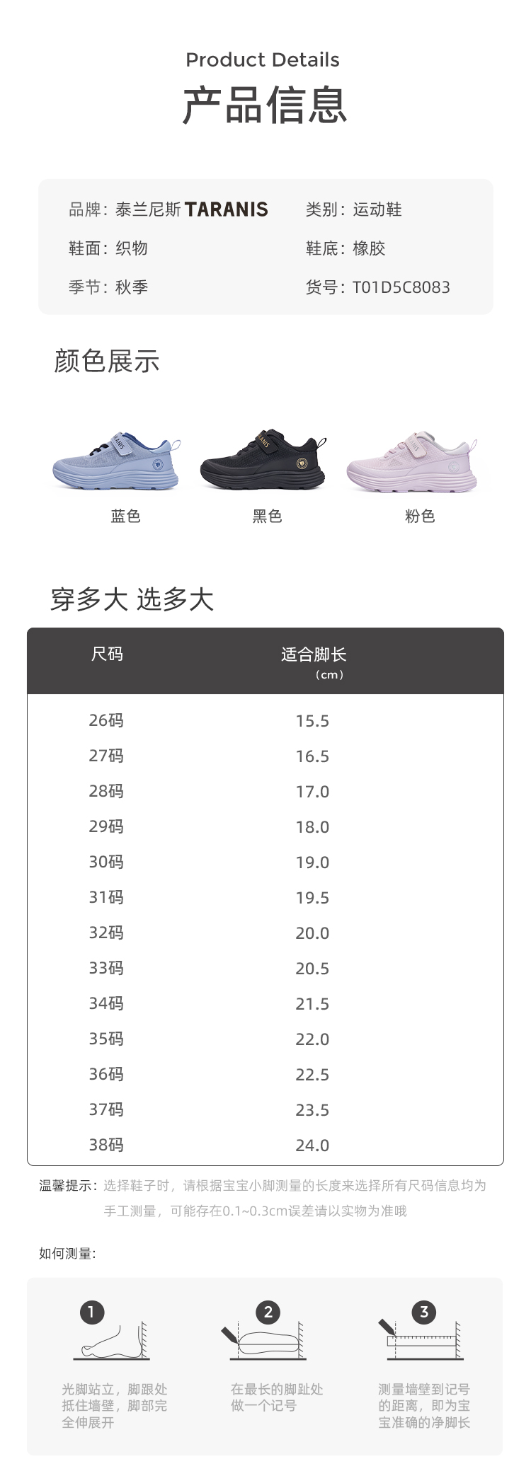 【新品】泰兰尼斯秋季中大童简约舒适运动鞋T01D5C8083
