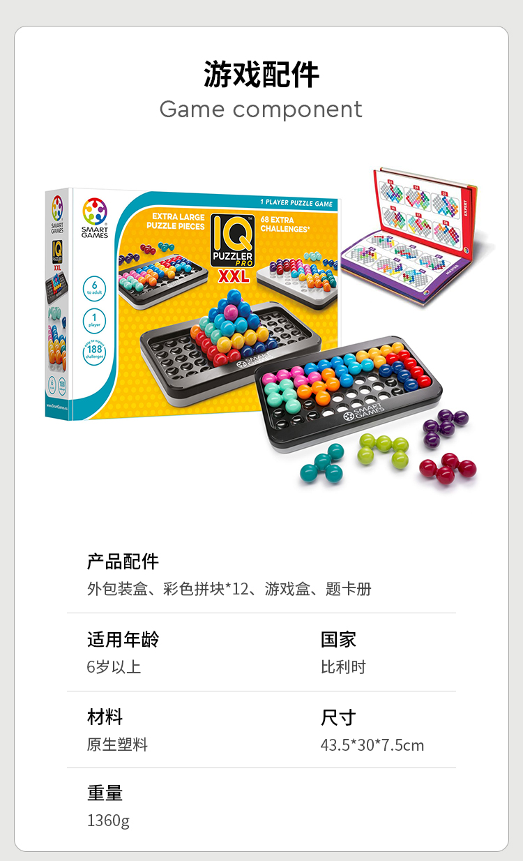 SmartGames IQPuzzlerProXXL 智慧大作战XXL 桌游 适合年龄6+ 儿童益智 比利时游戏 SG455XXL