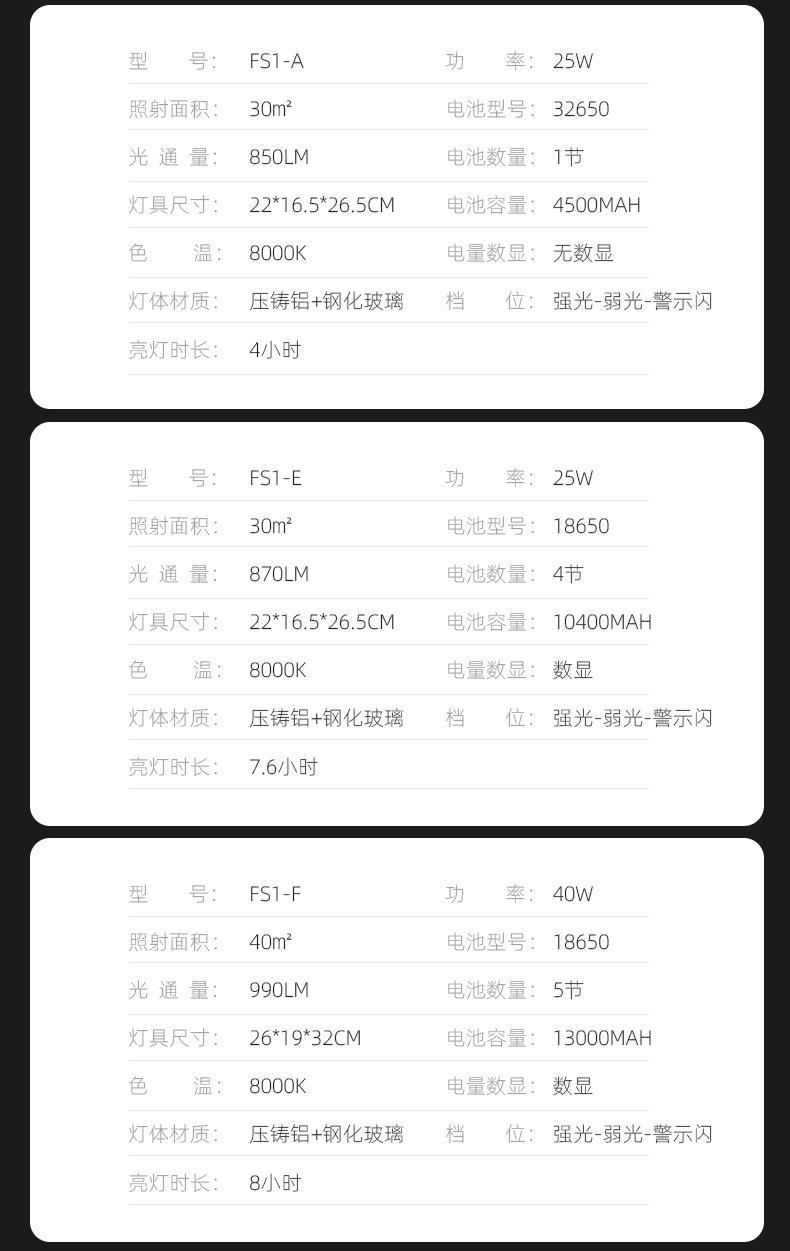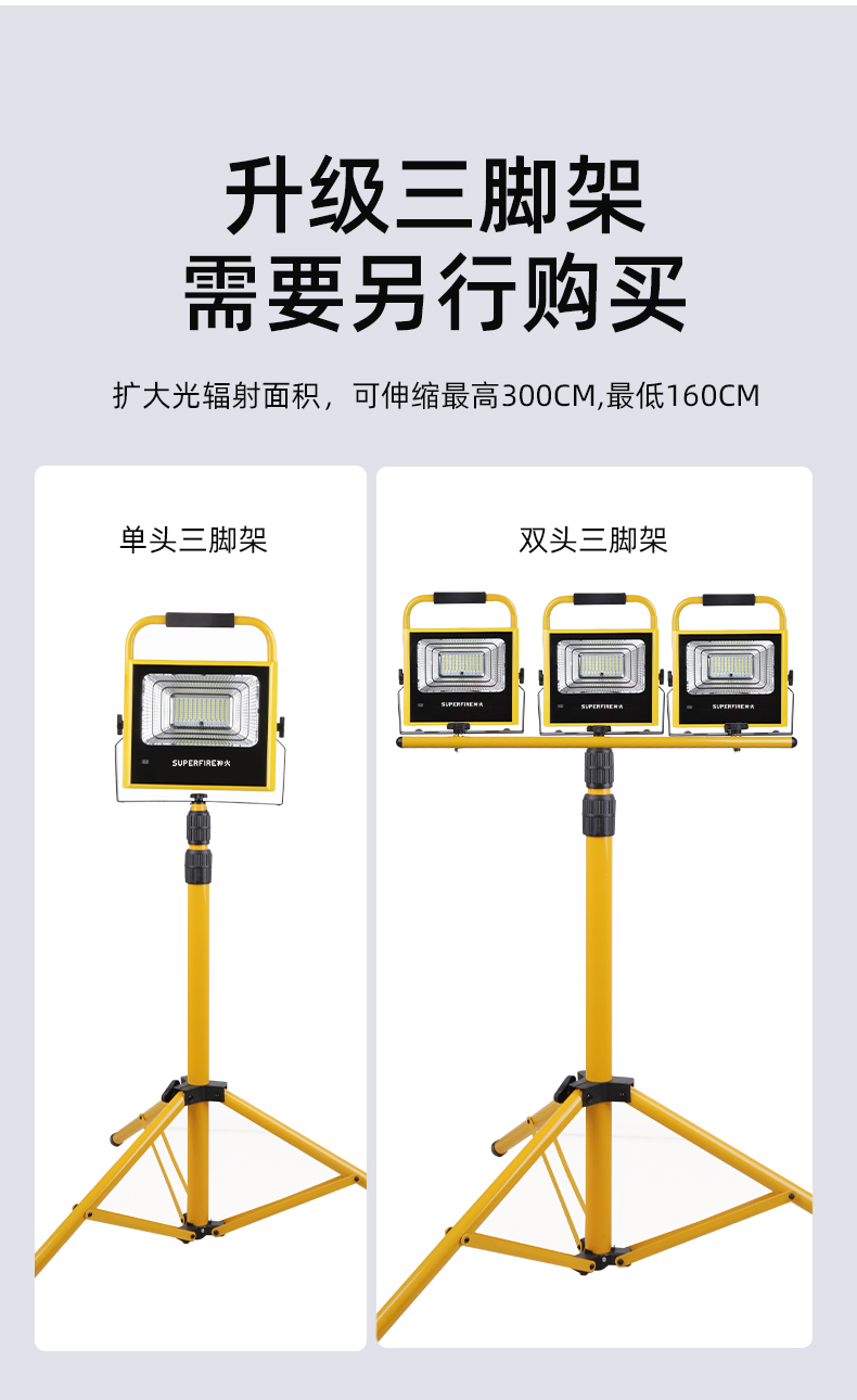 SUPERFIRE神火FS1投光灯充电照明灯强光手提工地户外野外移动露营LED应急营地灯