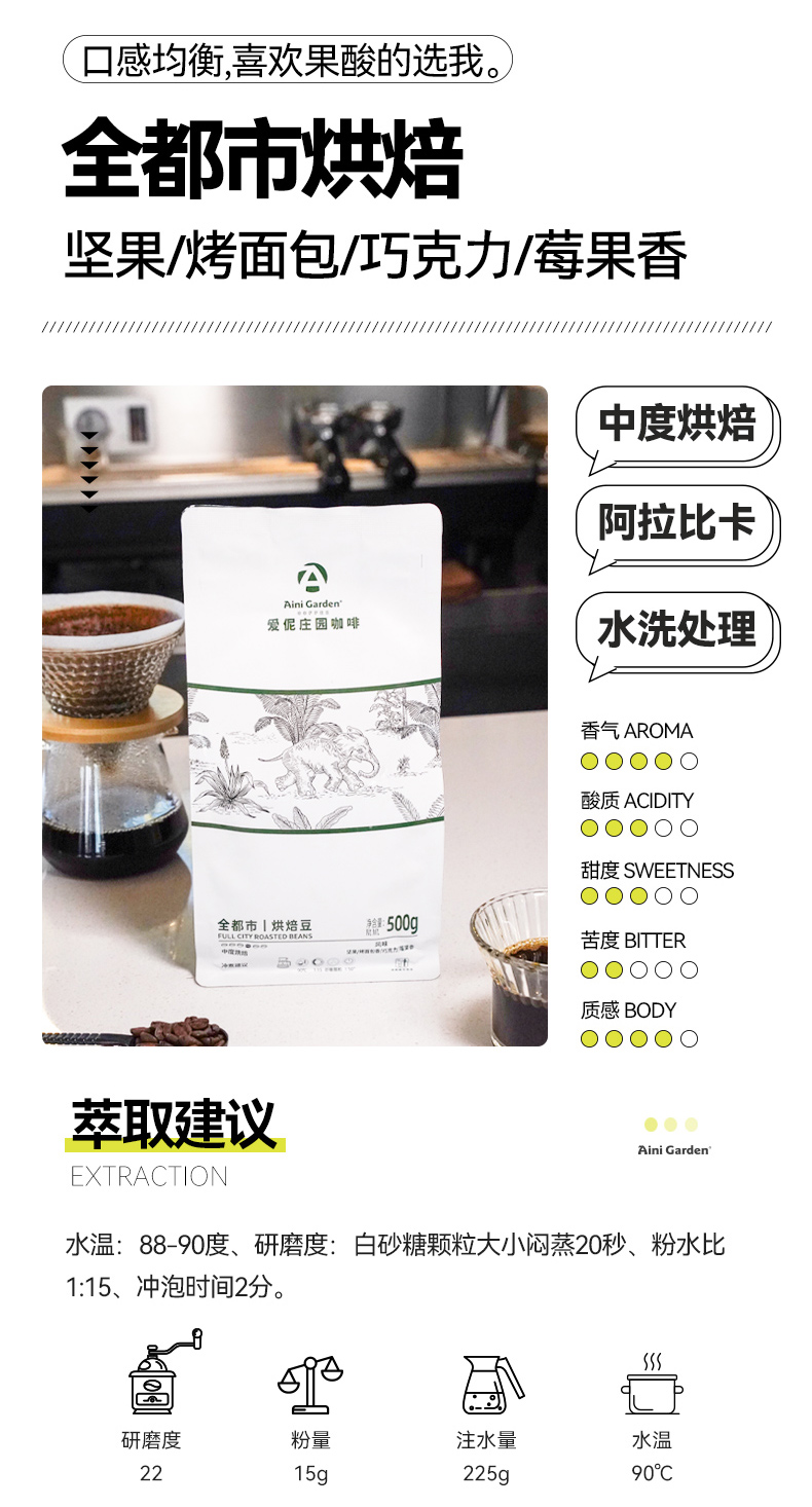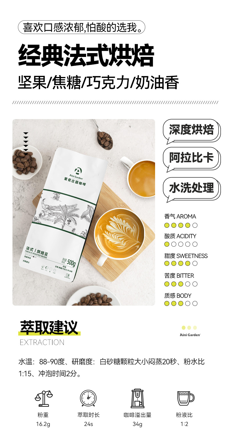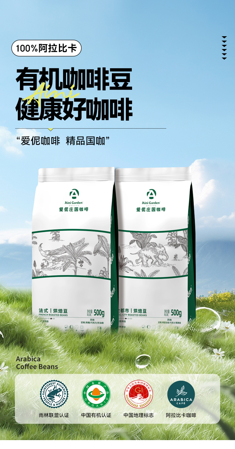 爱伲庄园 全都市/法式有机咖啡豆 中深度烘焙 水洗处理 云南阿拉比卡 500g/袋