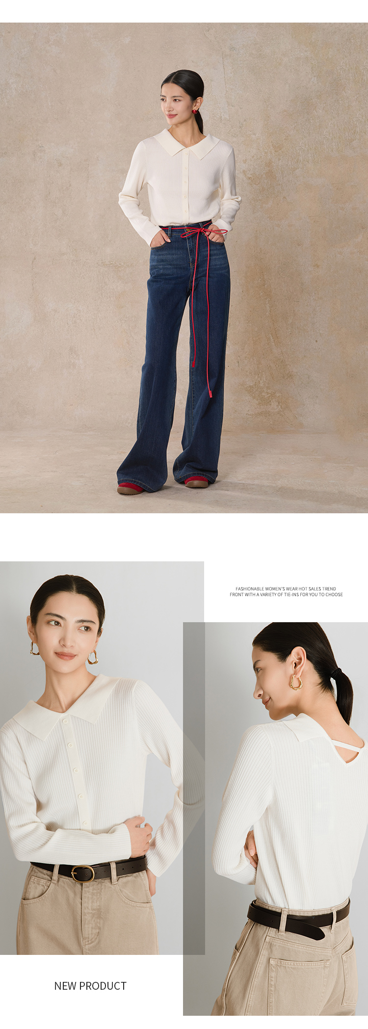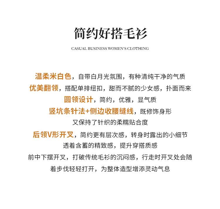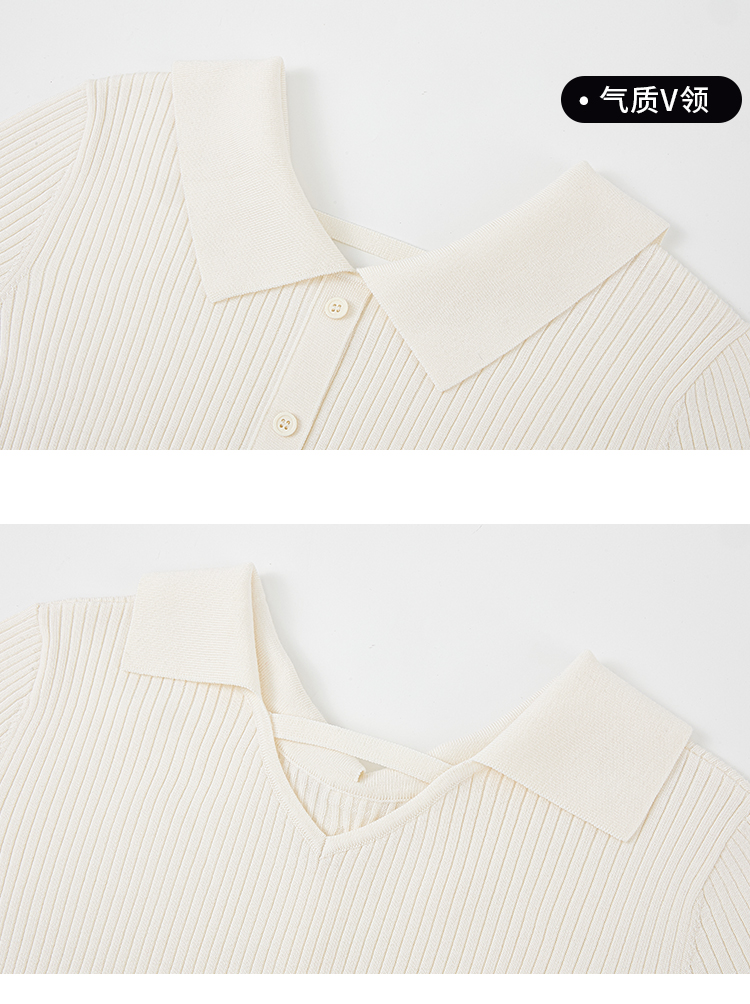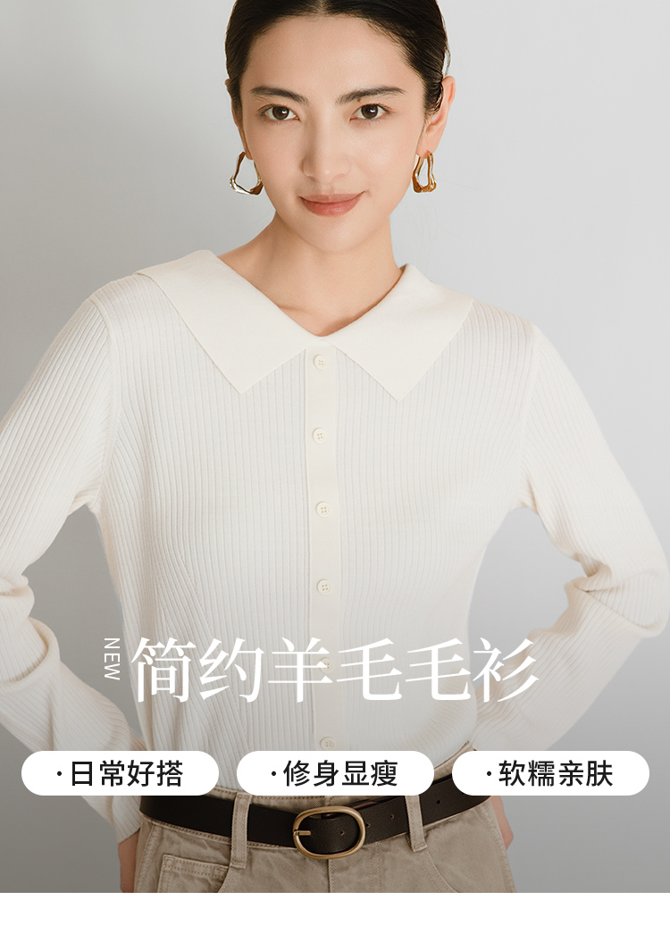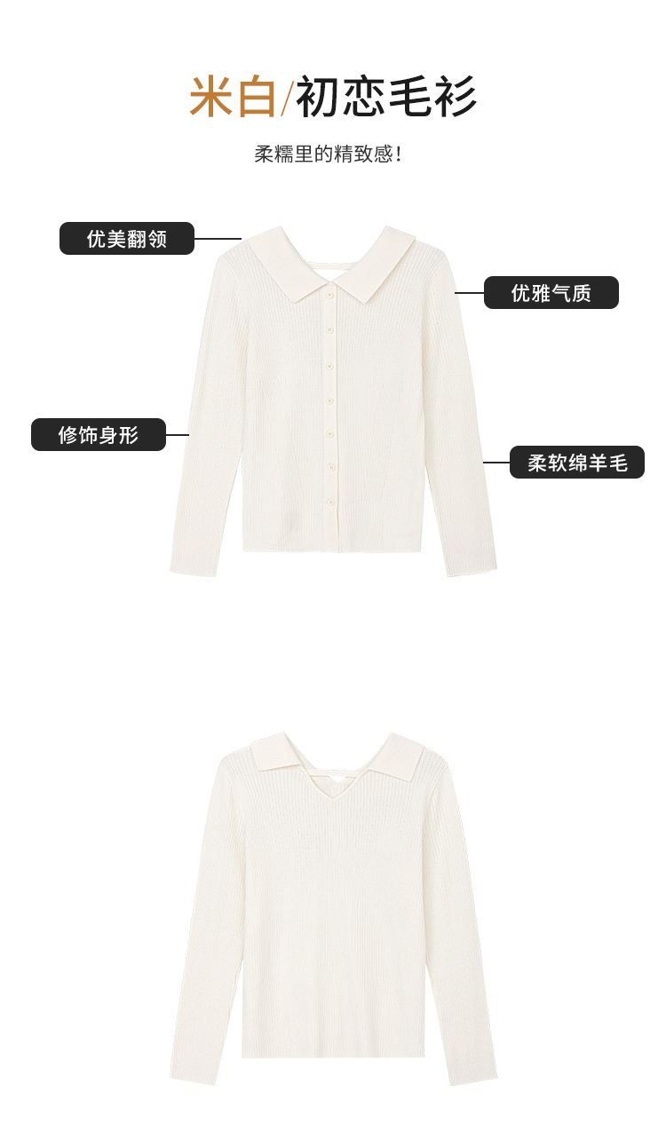 【商场同款】CNK5B76 “ 初恋毛衫 ” 纯羊毛白色小翻领小毛衫,后背精巧设计点
