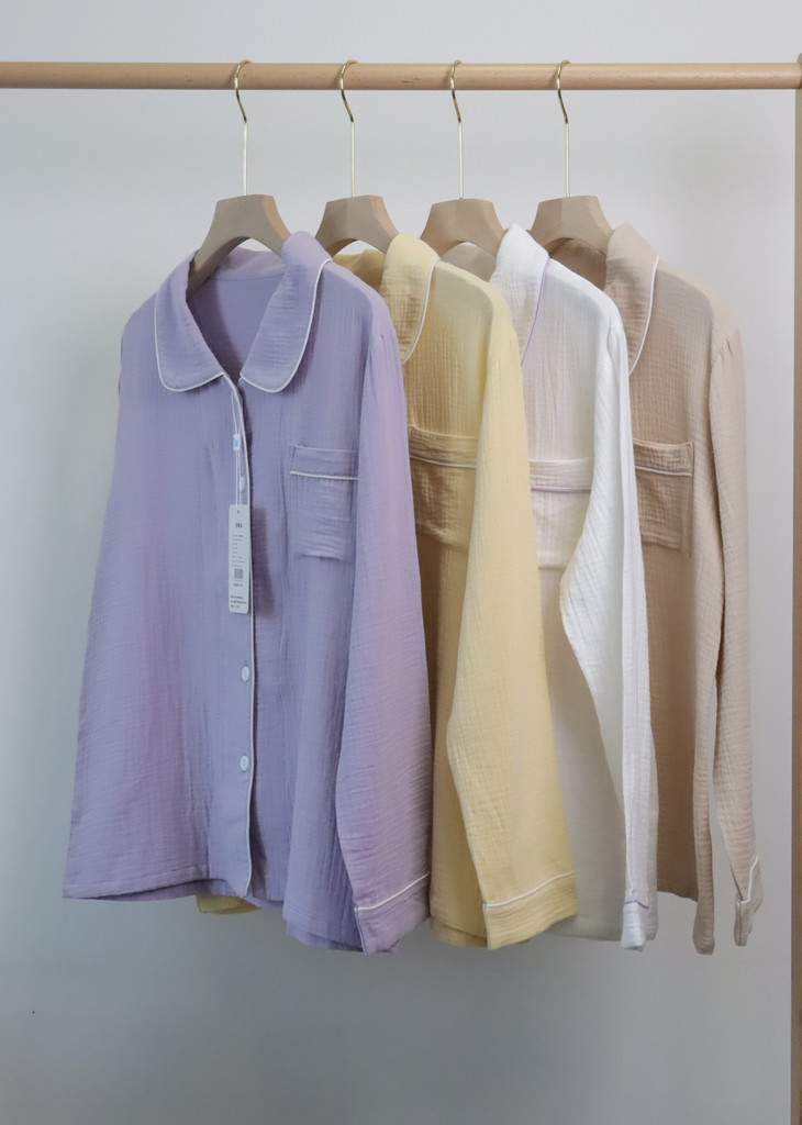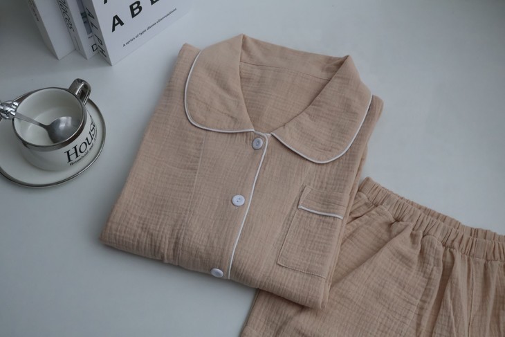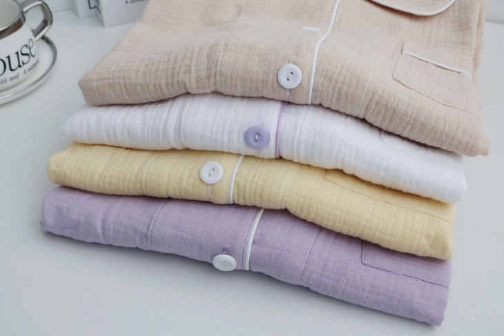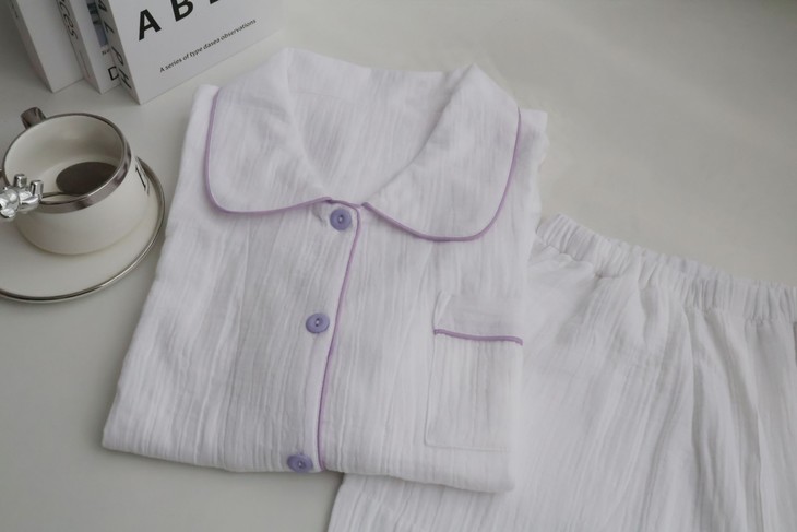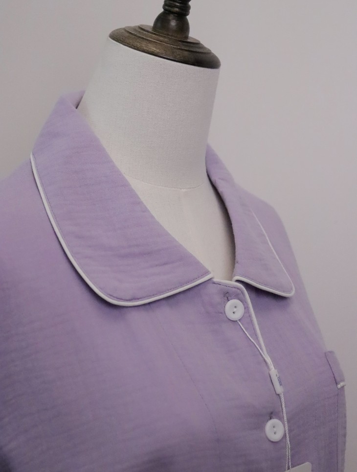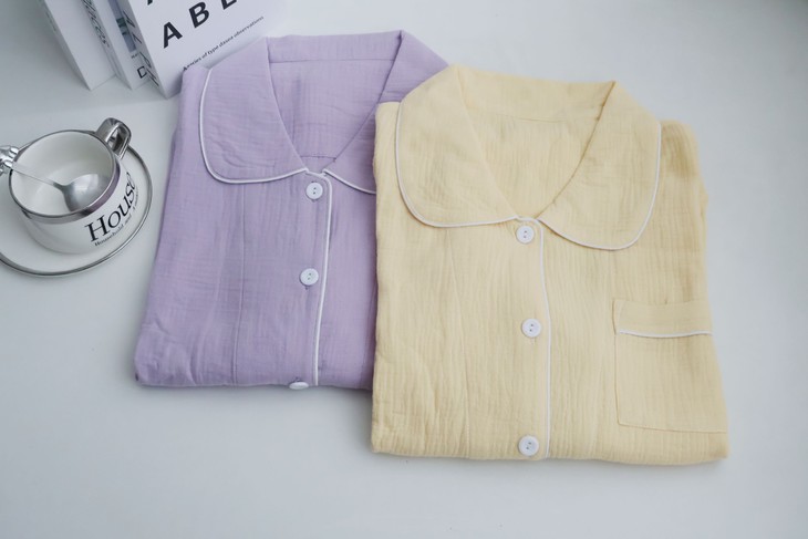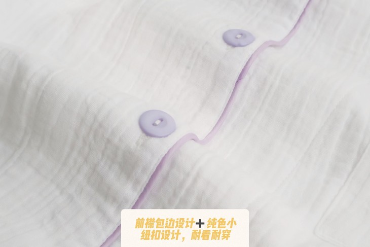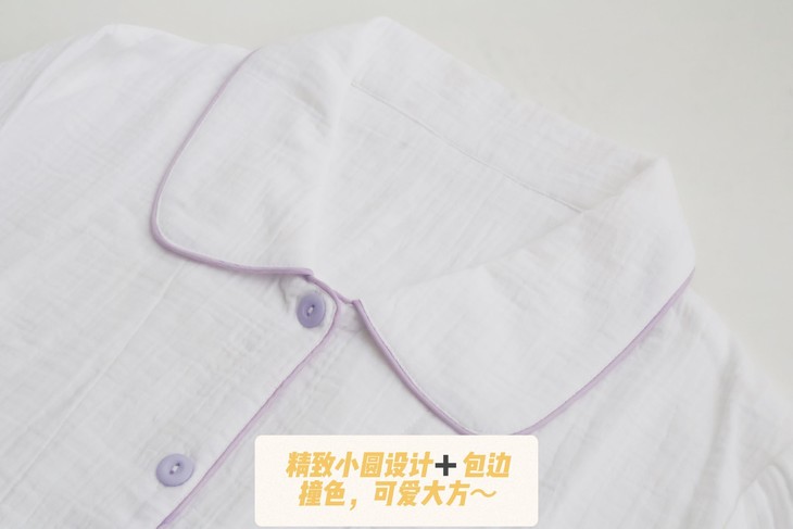 整套家居服纯色为底,做了精致撞色包边设计 上色方式采用的是新一代健康活性印染方式 是令人安心的环保染色‼ 在染色过程中,染料的活性基团与纤维分子形成结合 使得染料和纤维形成一个整体 让家居服的防尘性能、洁净度更高 并且,机洗水洗也不易褪色~ 并且,机洗水洗也不易褪色~