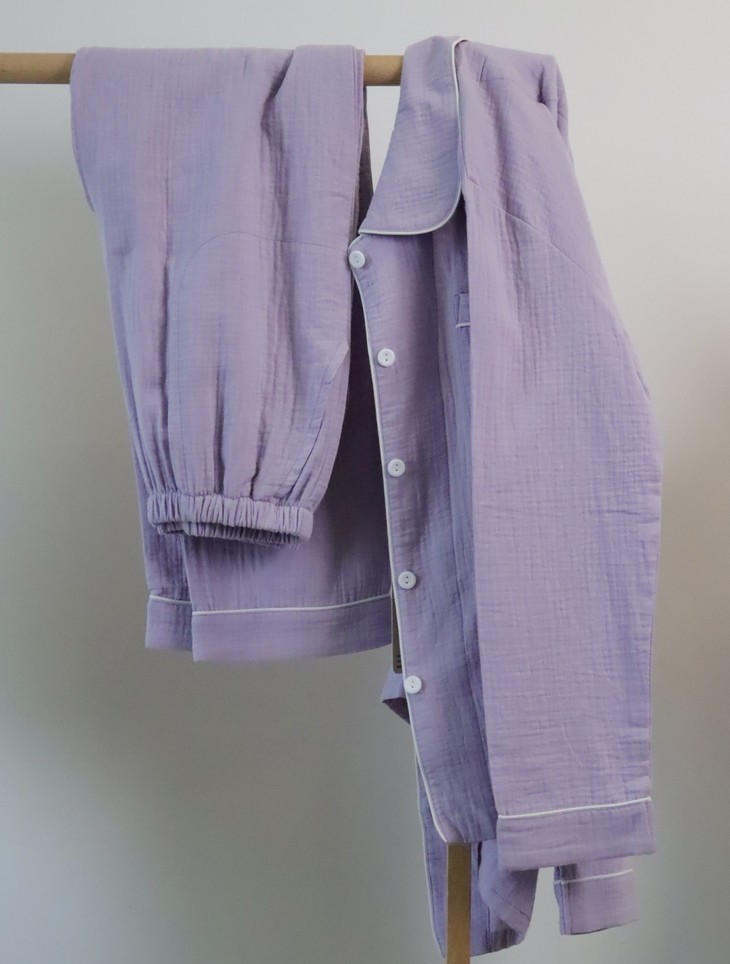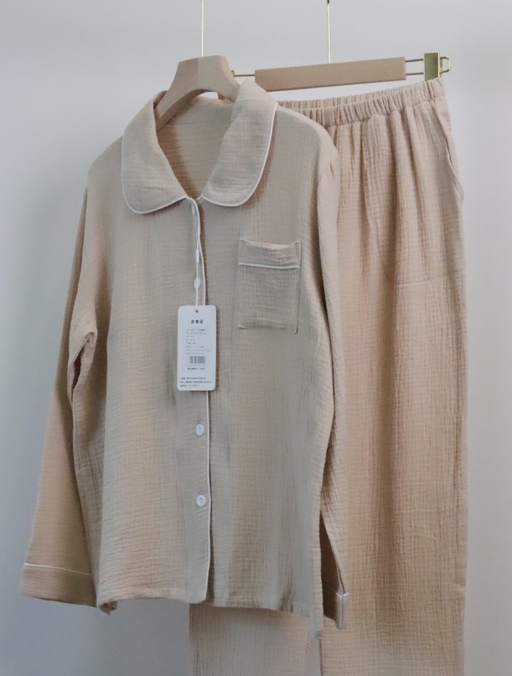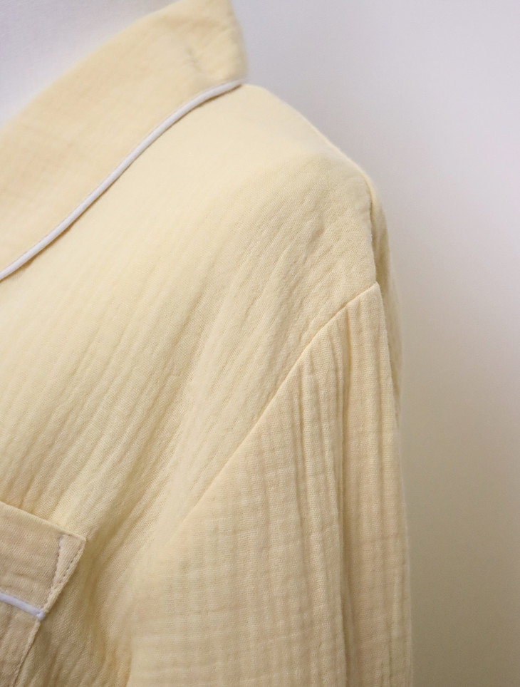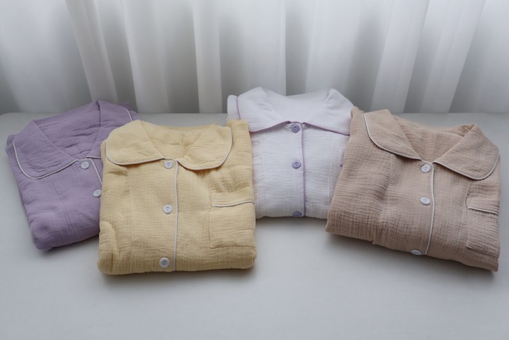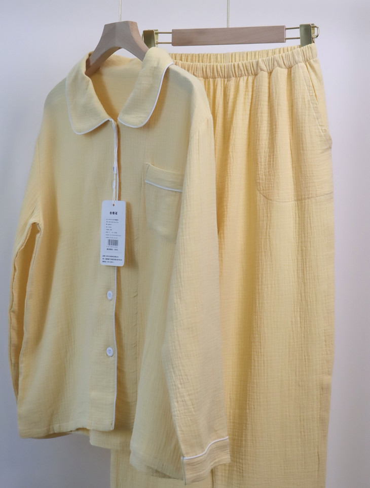 整套家居服纯色为底,做了精致撞色包边设计 上色方式采用的是新一代健康活性印染方式 是令人安心的环保染色‼ 在染色过程中,染料的活性基团与纤维分子形成结合 使得染料和纤维形成一个整体 让家居服的防尘性能、洁净度更高 并且,机洗水洗也不易褪色~ 并且,机洗水洗也不易褪色~