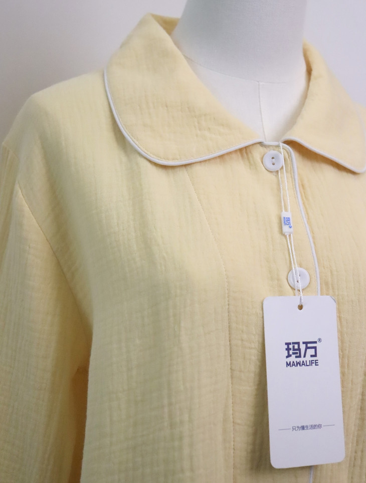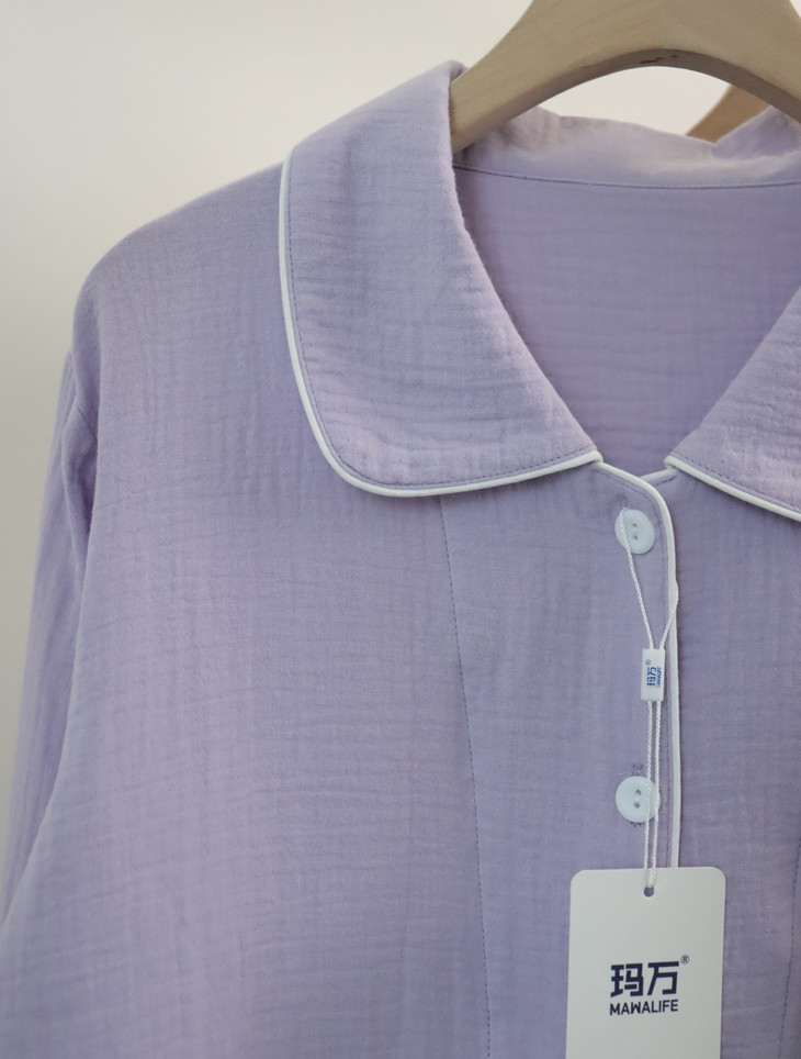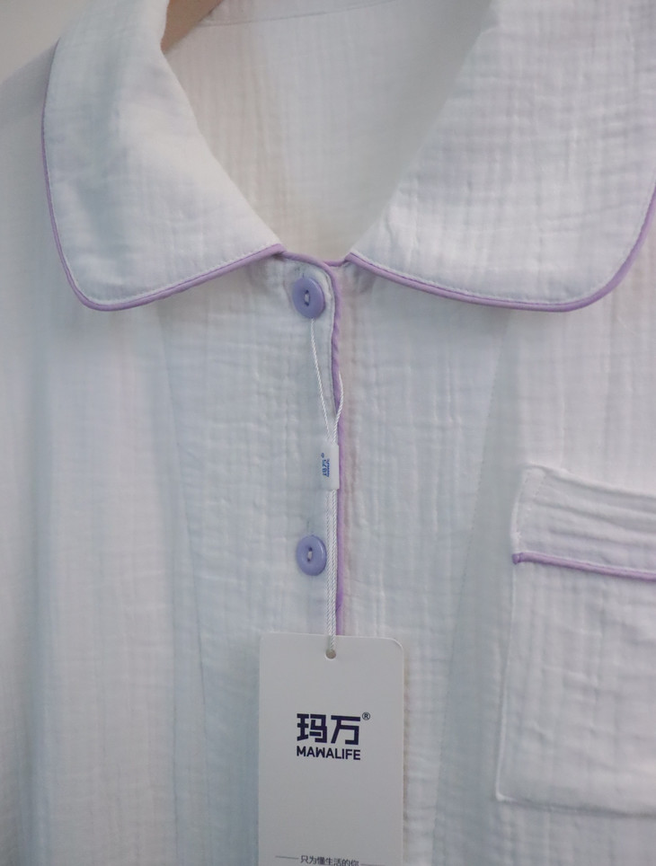 环保健康 在染色过程中不添加偶氮和甲醛 不含对人体有害的物质 所以,我们MAWALIFE简约棉糖糖家居服 在洗涤时不褪色、不缩水~使用起来很是柔软舒适!